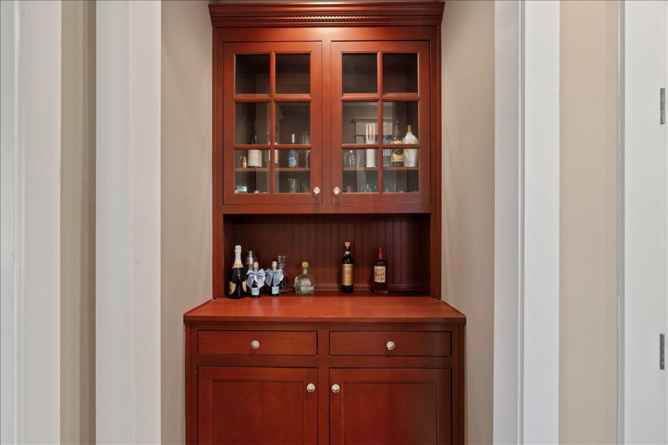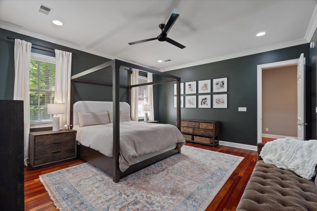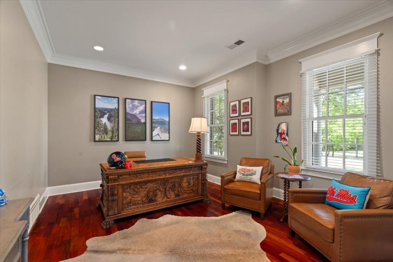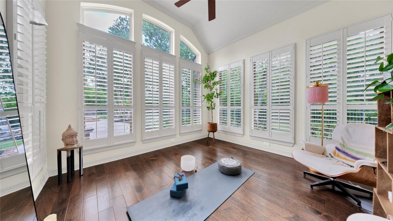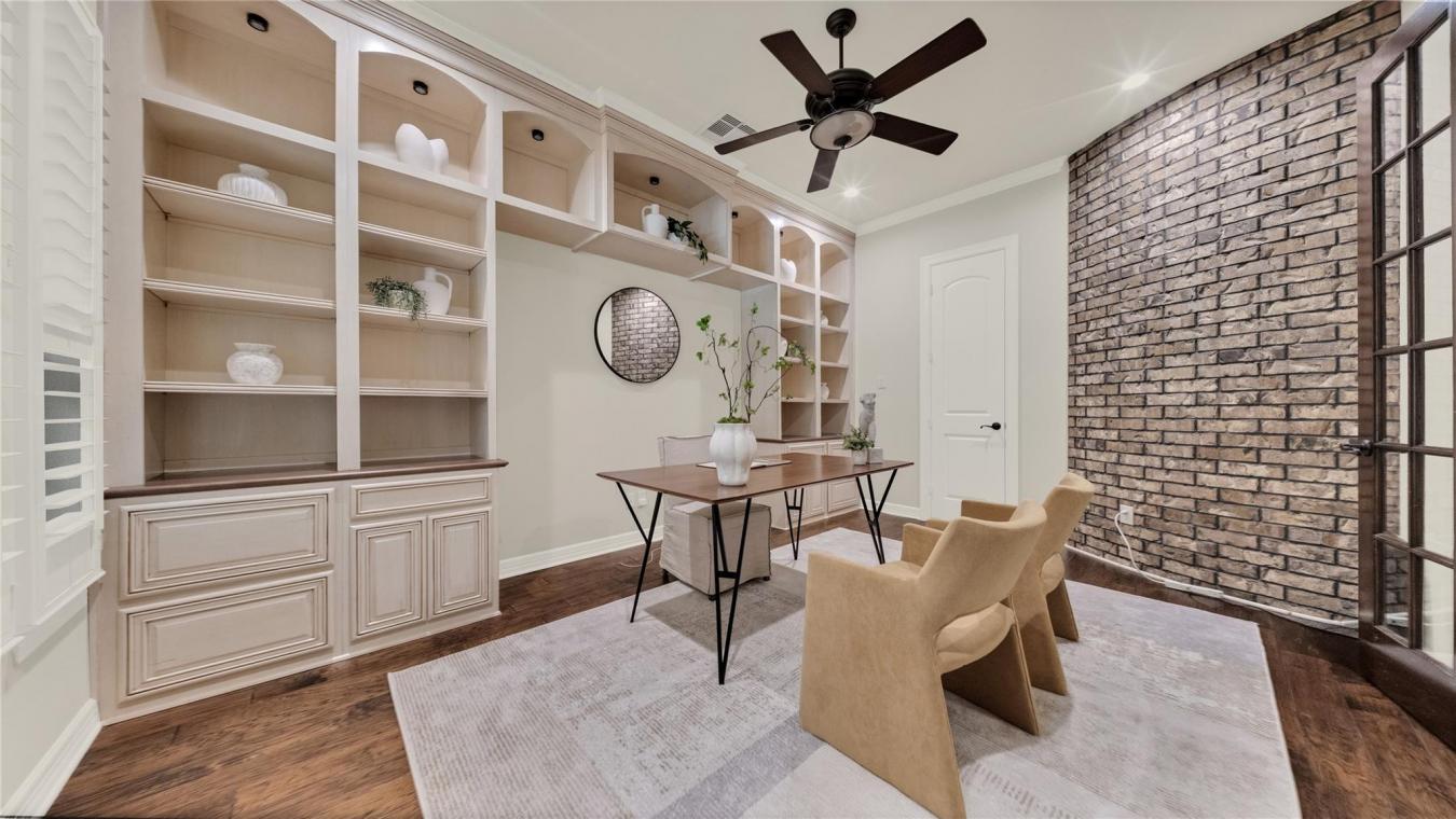 Exceptional Custom Home on 3.69 Acres of Private, Park-like Beauty! 5 bedrooms (one used as an exercise studio), 4 en-suite baths, a powder room, and a charming upstairs playroom! Rich Brazilian cherry floors span the main level with a refined study and formal living room w/soaring ceilings, natural light, built-ins, and remote-controlled blinds. Gourmet kitchen with custom cabinetry, quartz counters, 48-inch 6-burner Dacor gas cooktop, double ovens, decorative hood, 2 sinks, large island, warming drawer, coffee bar, new ice maker, and walk-in pantry. Opens to a cozy hearth room with built-ins and an exposed brick fireplace. Luxurious primary suite with dual closets, soaking tub, and double vanities. Second bedroom down. The mudroom and friendship entry lead to the gated garden courtyard. The sunroom overlooks the patio and expansive grounds. Generator, new roof, storage building, and 3-car garage with floored attic. Truly one of a kind!