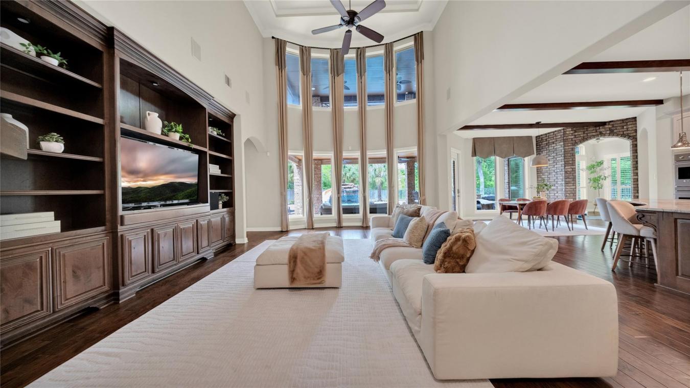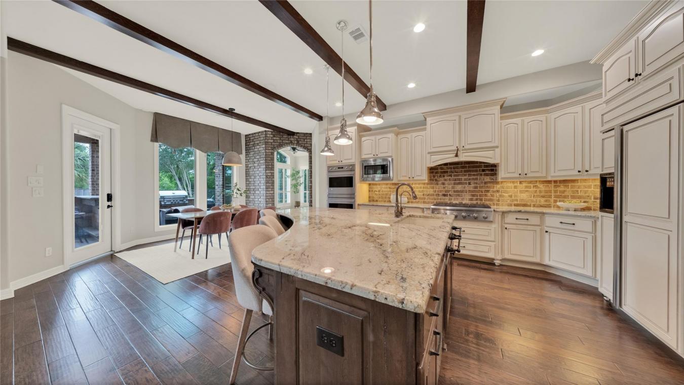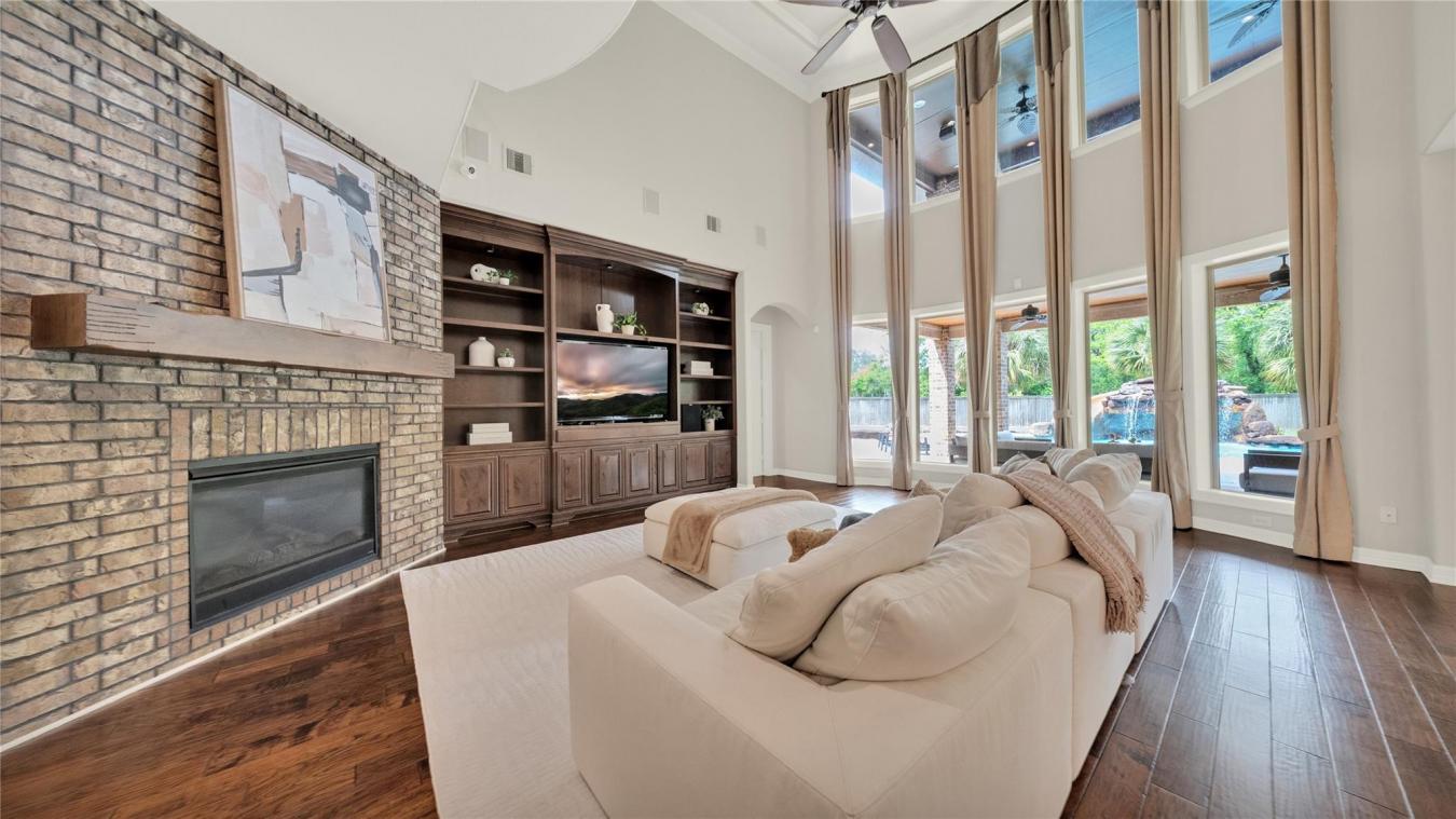 Immerse yourself in quiet luxury at 6102 Logan Creek in Riverstone, a CUSTOM home crafted for both gathering and retreat. Tucked at the end of a secluded cul-de-sac, surrounded by lush mature trees, this 20,700 sq ft homesite offers peace, privacy, and a setting beautifully grounded in nature. Spanning over 5,700 sq ft of expansive living space, this one-of-a-kind home exudes elegance with double doors that lead to a curved wood staircase, hardwood floors, brick accent walls, and thoughtfully curated finishes paired with high-end appliances. The heart of this sanctuary is the BACKYARD OASIS, the epitome of LUXURY & LEISURE with a heated pool & spa, waterslide, grotto, outdoor kitchen, wood-burning fire pit, a large green space, an outdoor shower, and a mosquito system to enjoy year-round. Oversized bedrooms, walk-in closets, plantation shutters, a yoga/flex room, a pool shower, & a 3-car side-by-side garage complete the home. Designed for togetherness, defined by tranquility. Contact Nina at 281-773-5372 for a private showing.