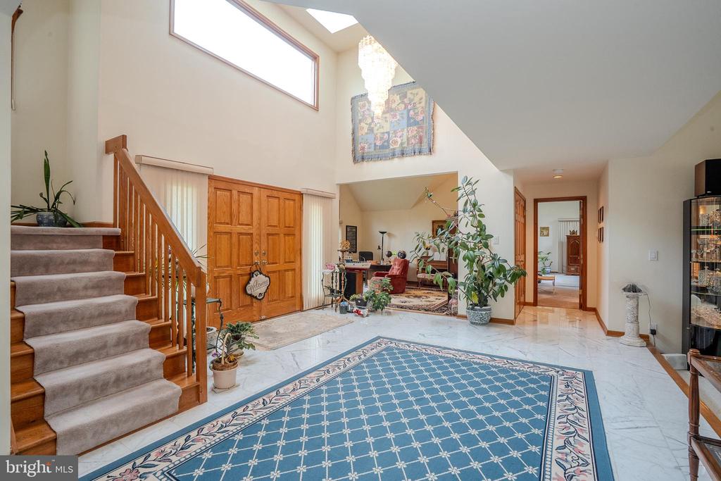 Welcome to this impressive 4-bedroom, 3.5-bath home in the highly sought-after Windsor Park Estates neighborhood of Princeton Junction, set on a private and beautifully maintained 1-acre lot. A grand two-story foyer greets you with elegant marble flooring, a stunning crystal chandelier, and abundant natural light streaming through skylights, creating a luxurious first impression.