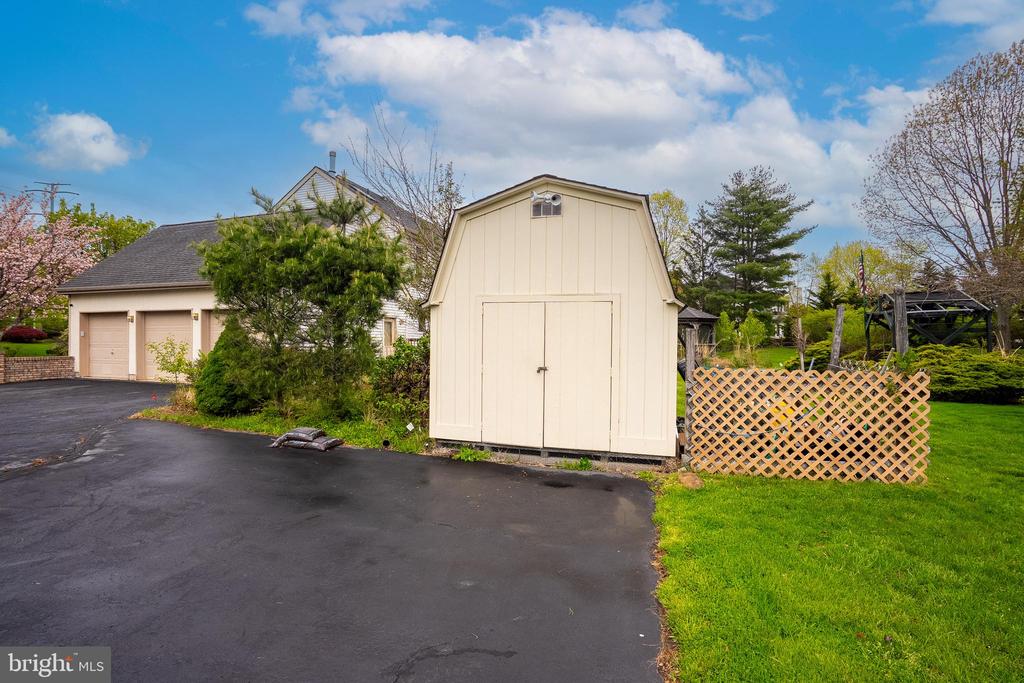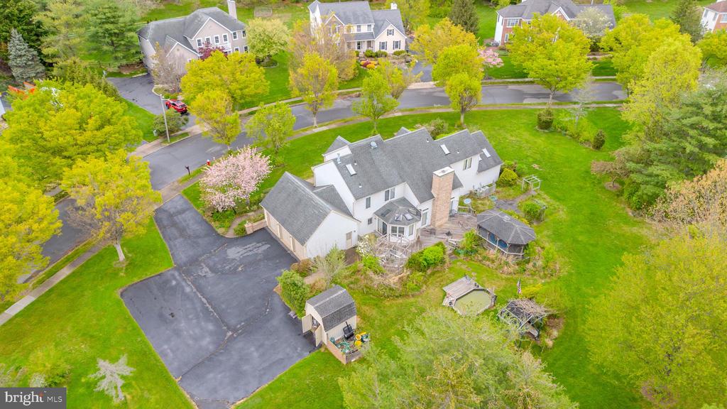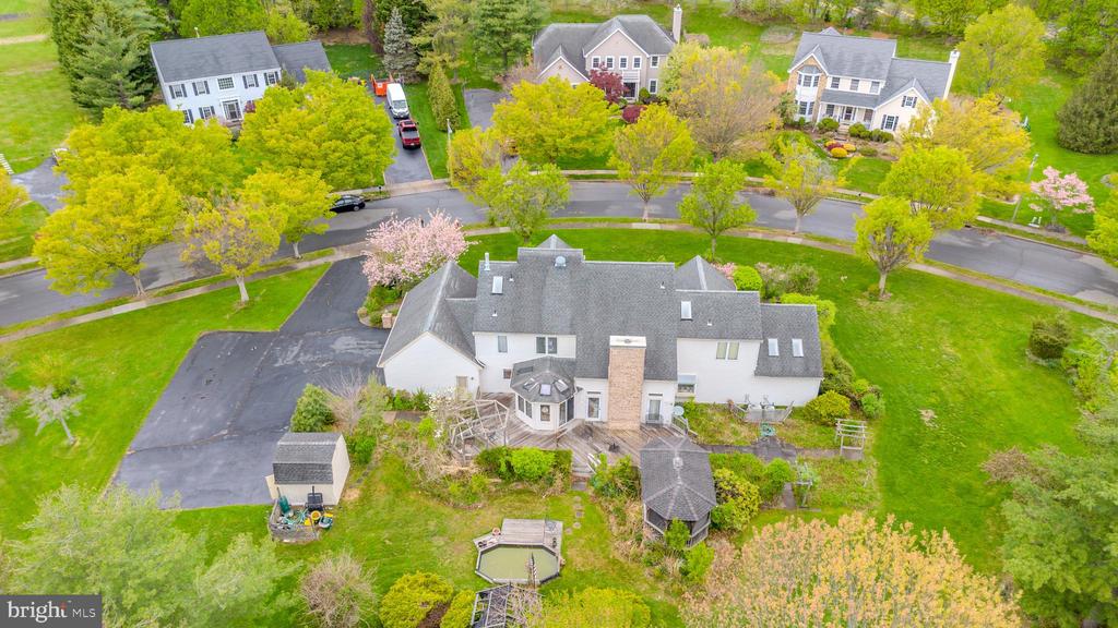 Welcome to this impressive 4-bedroom, 3.5-bath home in the highly sought-after Windsor Park Estates neighborhood of Princeton Junction, set on a private and beautifully maintained 1-acre lot. A grand two-story foyer greets you with elegant marble flooring, a stunning crystal chandelier, and abundant natural light streaming through skylights, creating a luxurious first impression. The thoughtfully designed layout features a formal dining room adorned with a crystal chandelier, custom bay window, and hardwood flooring. The spacious two-story family room offers plush carpeting and a striking marble wood-burning fireplace, perfect for gatherings. A versatile living/music room showcases hardwood floors, a vaulted ceiling, and recessed lighting. The kitchen blends functionality and elegance, featuring hardwood flooring, a pantry, side by side Sub-Zero refrigerators and freezer, a center island with grill, additional burners near the oven and microwave, garbage disposal, compactor, and a built-in desk. Vaulted ceilings, skylights, and a bright breakfast area with a crystal chandelier complete this inviting space. The first-floor primary suite provides both comfort and convenience, offering a dressing area with two double closets and a third oversize closet, four skylights, and a well-appointed en-suite bath with double sinks, a Jacuzzi tub, separate shower, private toilet, and recessed lighting. Upstairs, generously sized bedrooms include a Jack-and-Jill suite with a bay window, skylight, double sinks, and tub/shower combination, as well as an additional bedroom with two double closets and a full bath featuring a skylight, double sinks, and tub. The second floor is fully carpeted and includes attic pull-down storage with partial flooring and a roof exhaust fan. Additional highlights include a first-floor laundry room, an unfinished basement with French drains offering endless possibilities, a 3-car garage with keypad openers and extended driveway, a second refrigerator/freezer in the garage, a home security system, 2-zone HVAC with two humidifiers, and a partial-house Generac generator. Outdoor living is equally impressive with an oversized deck, gazebo, bluestone patio, private backyard setting, and a storage shed with electricity, all enhanced by custom brick front trim. This exceptional property seamlessly combines space, elegance, and functionality in one of the areas most desirable communities.