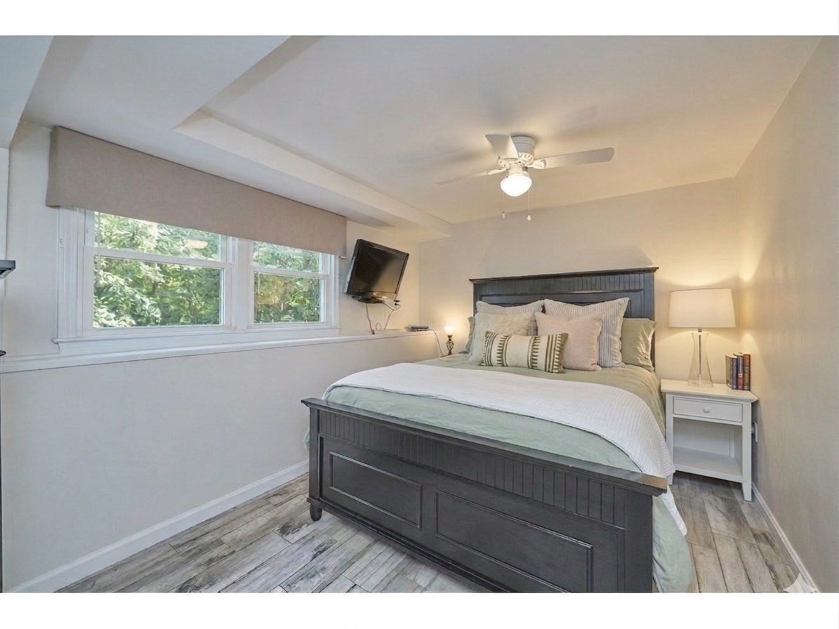 Welcome to this delightful split-level home, a true gem in Pompton Plains! Originally purchased from the builder in 1955, this residence boasts three bedrooms and 1.5 bathrooms. Situated on a beautiful 116x130 corner lot, this property features stunning curb appeal that will make you proud to call it yours. Step inside to discover a spacious main floor with cathedral ceilings in the living room and wood floors that can easily be refinished. Plenty of nature lighting from the large front window. The eat-in kitchen is equipped with an updated stainless steel refrigerator, stove and microwave, and a convenient side door to the rear yard.The lower level offers a generous size family room, maintenance free paneling and a half bathroom, an office, and a laundry room all could use some updating. Rear door to the yard too!. Central Air updated 2000, newer hot water heater, 2023. Located in a beautiful area, close to Greenview Park, local schools, the Pompton Valley Bike Trail, Chilton Medical Center, and more. If youre looking for a home with potential for your personal updates, this is the perfect opportunity!