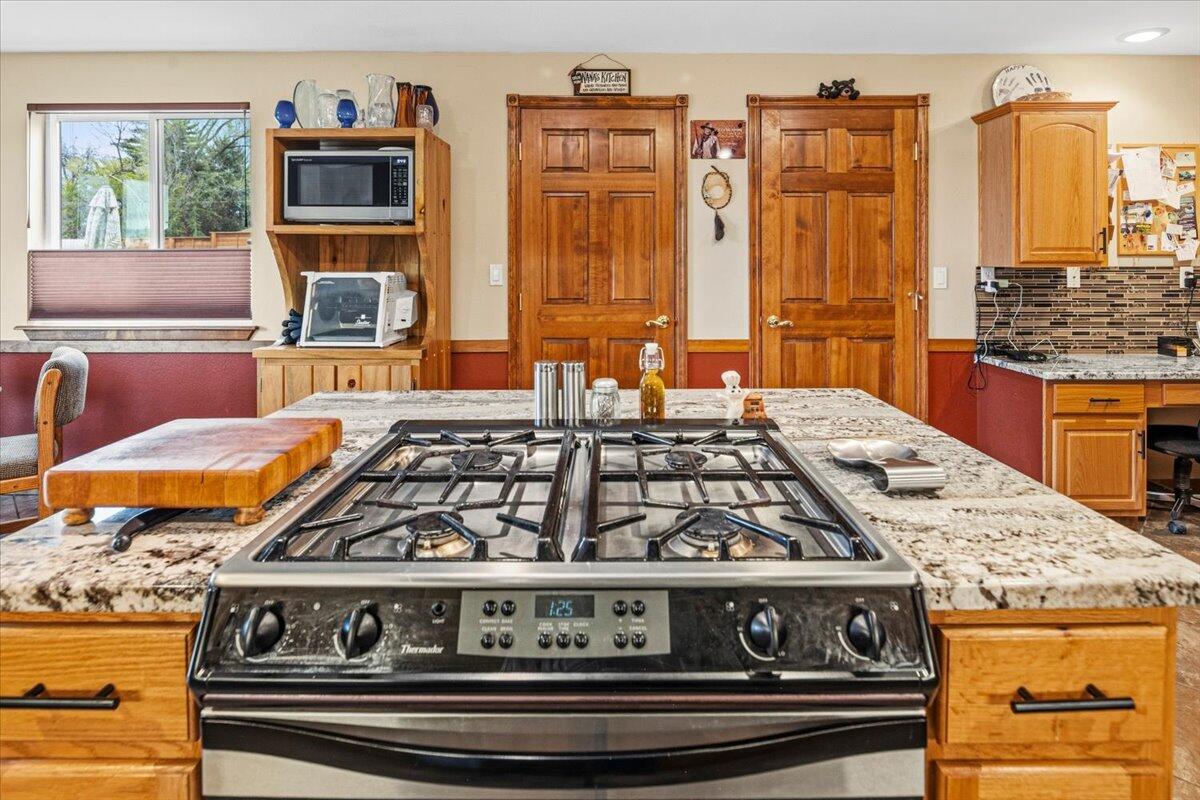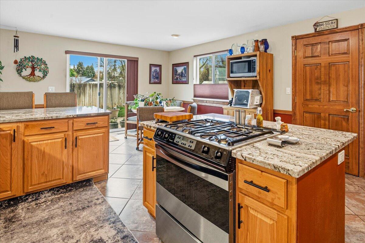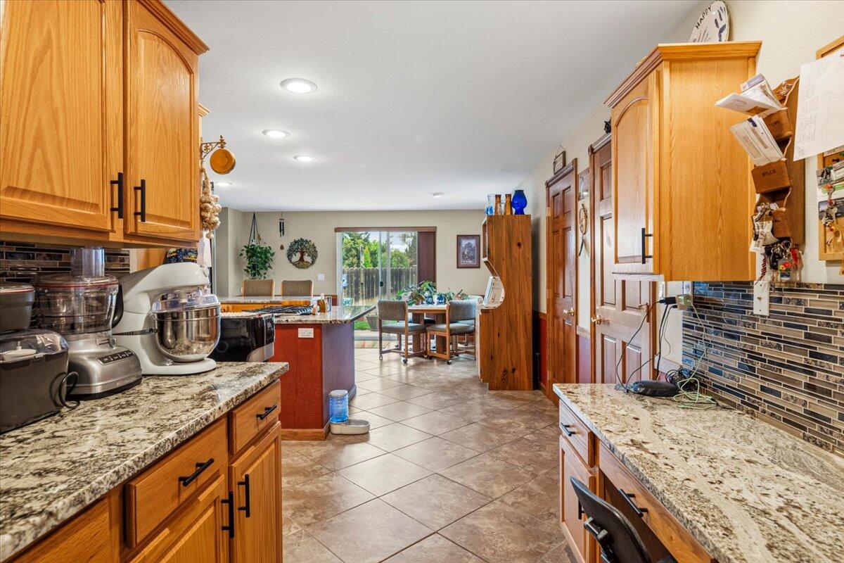 Welcome to Parkway Dr and this Lovely 2600 sqft 4 bed 2 bath home, that sits on an impressive .34 ac. lot. This house boasts a huge chefs kitchen w/ several beautiful granite counters, Island with gas stove, and tile backsplash. Youll enjoy the abundance of storage with the gorgeous custom cabinets, lrg walk-in pantry, and the oversized laundry room. Extensive Tile work in main bath, big windows in family room provide plenty of natural light. Upstairs youll find the spacious primary suite, w/ a lovely, jetted tub, and large walk-in closet. Home has solar pwr. Outside features a large concrete patio, great for entertaining and cookouts, fully landscaped fenced yard, garden area and greenhouse, covered structure with tons of shelving, dry storage, and a shop with room for a vehicle. The lrg driveway provides for ample parking and room for RV or other toys. All this with direct access to the dry canyon trails, sports courts, parks, shopping, schools, and everything Redmond has to offer