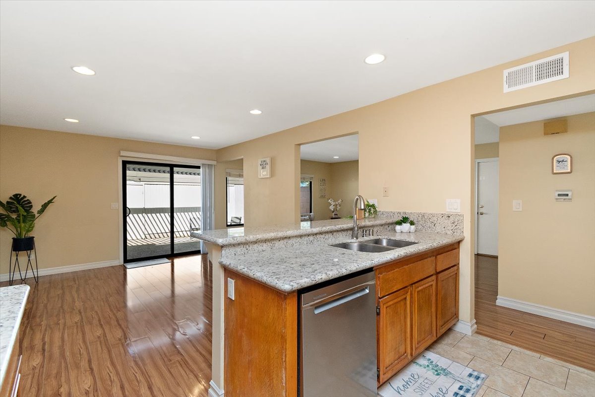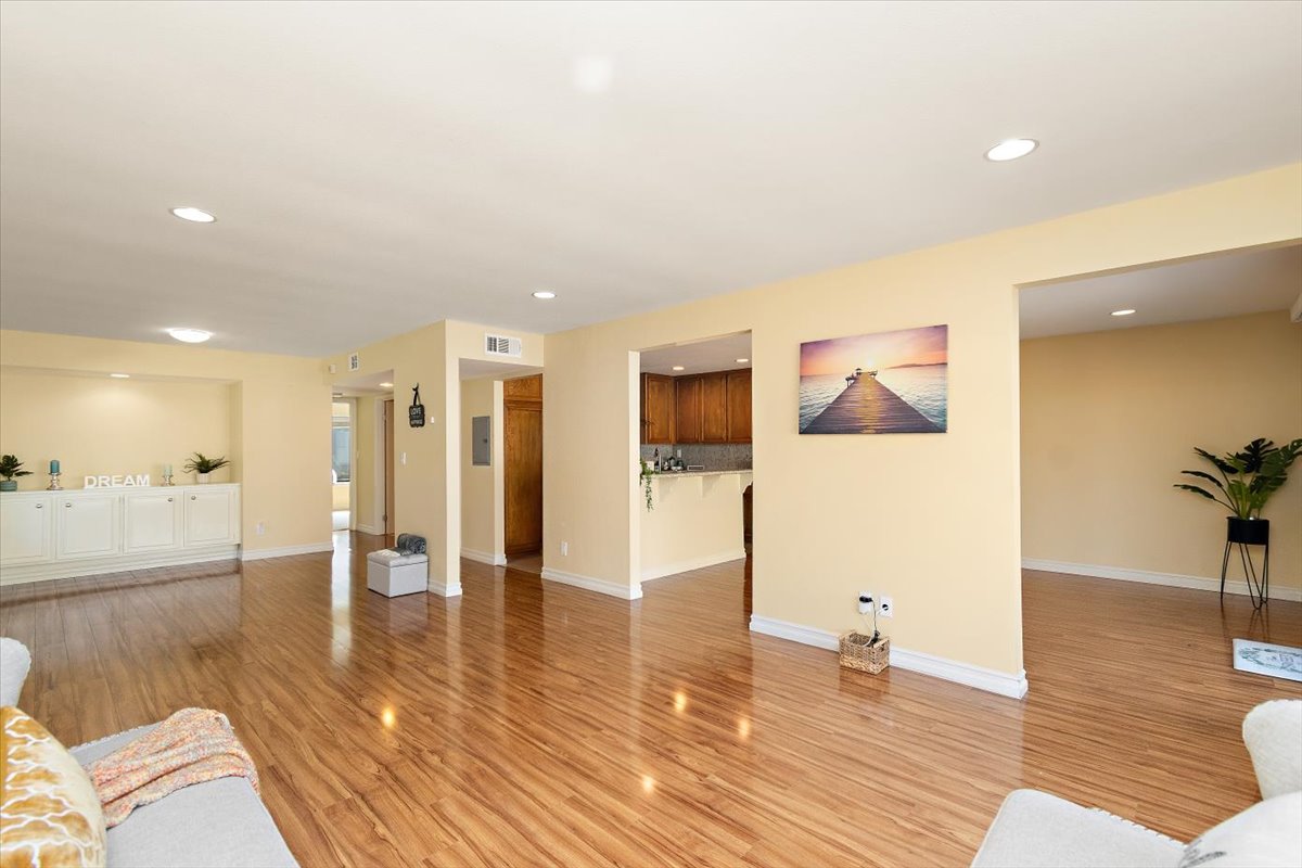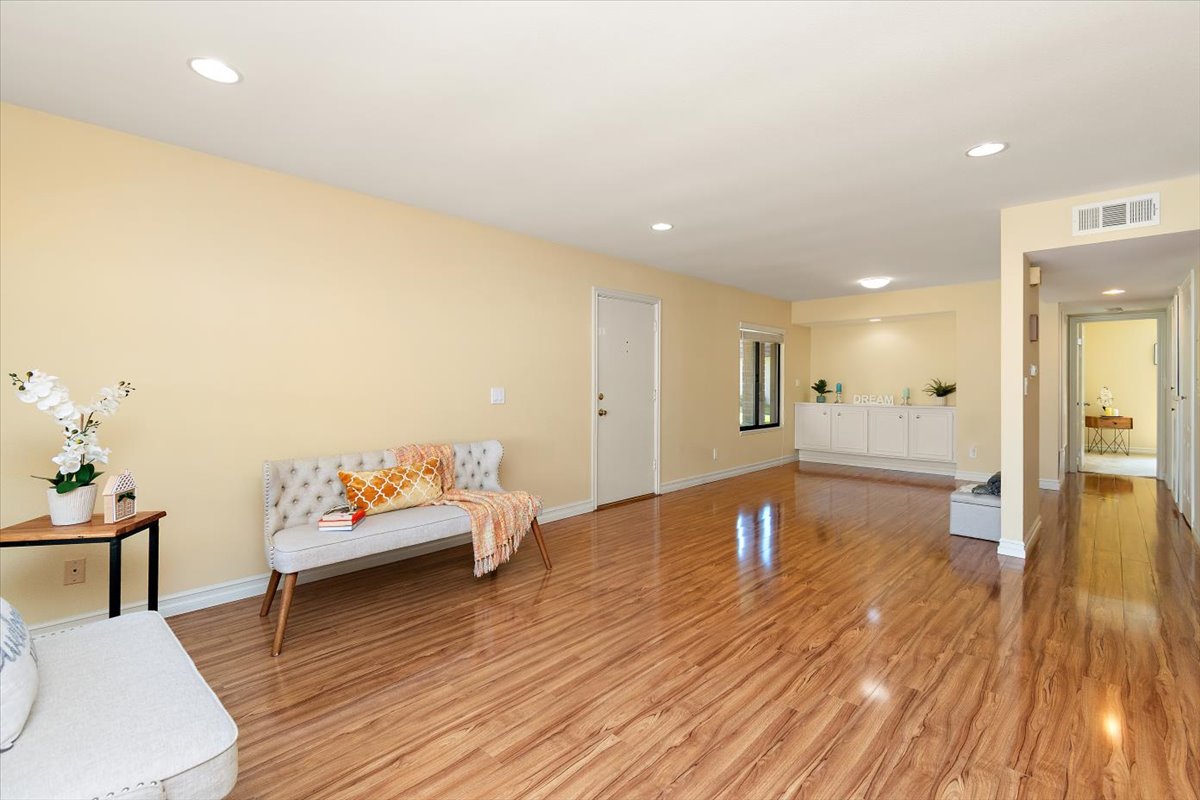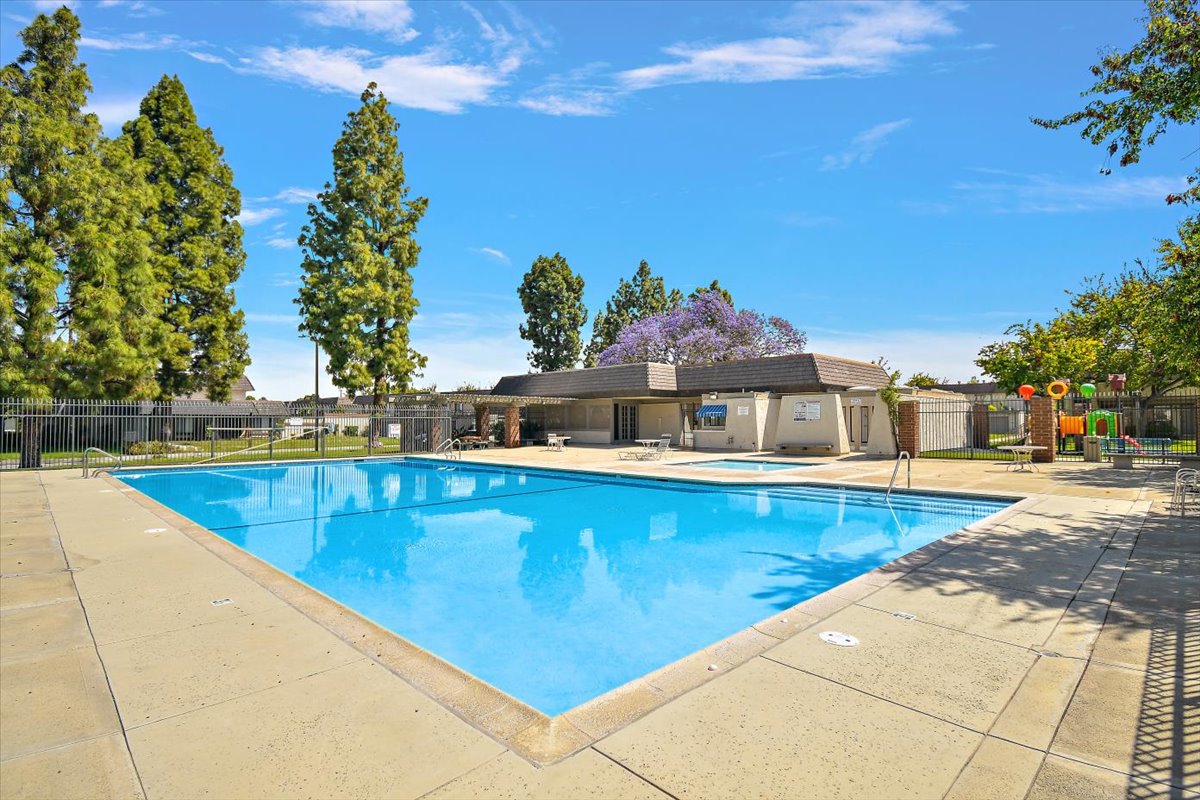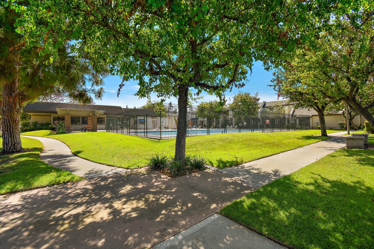 Honey…this is the one! Tucked gently within the beloved Tiburon community, this highly sought after single-level end-unit townhome feels like a quiet story waiting to be lived. Set on a premium lot with only one shared wall, it offers a sense of privacy that is both rare and comforting. Just steps from the sparkling pool and surrounded by extra reserved resident parking, convenience meets serenity at every turn. A detached two-car garage and an additional reserved space by the front door welcome you home with ease. Bathed in natural light, the home unfolds in an inviting, flowing layout where each space gently blends into the next. A thoughtfully reimagined front bedroom now lives as a graceful den—its built-in counter and cabinetry blending seamlessly into the living space, creating an airy, versatile setting-perfectly suited for a home office, reading retreat, or those quiet mornings or lively gatherings. Warm gleaming wood flooring flows effortlessly through the living and dining areas, hallway, and den, tying each space together with elegance. The refined kitchen invites connection, adorned with granite countertops, a raised breakfast bar, stainless steel appliances, and generous cabinetry. It opens naturally to a flexible dining or family area, where conversations linger and moments gather, all extending toward the private backyard beyond. Both bathrooms have been beautifully updated with granite vanities, custom cabinetry, designer mirrors, and tasteful tile finishes. Each bedroom is filled with soft natural light and tranquil views of lush greenbelts, while the primary suite offers a charming window seat—an intimate corner for reflection and rest. Beyond the walls, the backyard becomes a sanctuary. An expansive paved patio sits beneath a modern louvered pergola, its adjustable cover allowing sunlight or shade to dance as you wish—perfect for year-round enjoyment, from golden afternoons to gentle rainy evenings. Other exceptional upgrades include a new 200-amp electrical panel, dual-pane windows, recessed lighting, crown molding, baseboards, and termite clearance—details that quietly elevate everyday living. All within the award-winning ABC Unified School District and moments from shopping, dining, and freeway access, the Tiburon community offers two pools, a spa, clubhouse, playground, and peaceful greenbelt paths. With so much to give and so much to feel…this isn’t just a home—it’s where your next chapter begins. MAKE THIS AMAZING HOME YOURS TODAY!