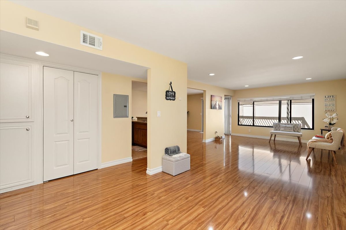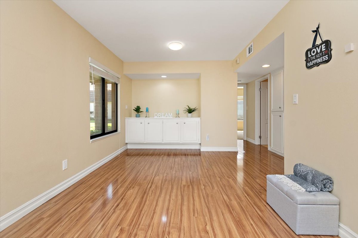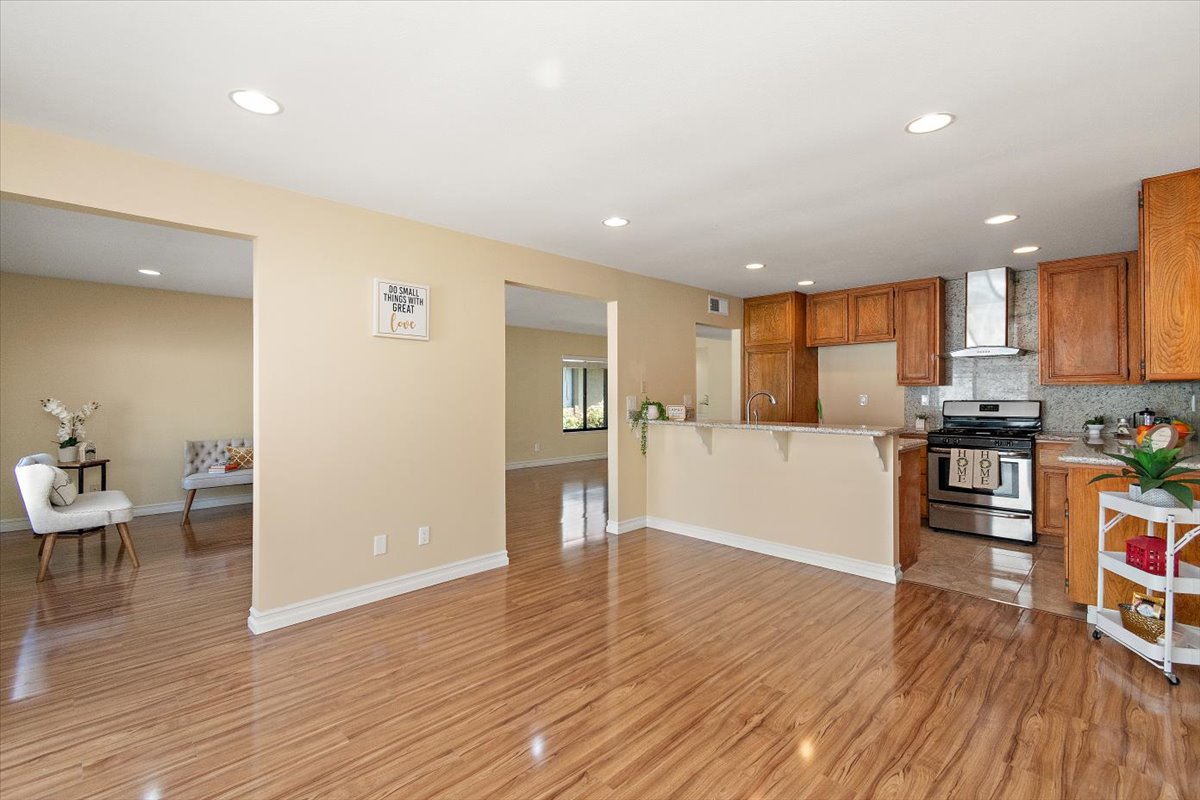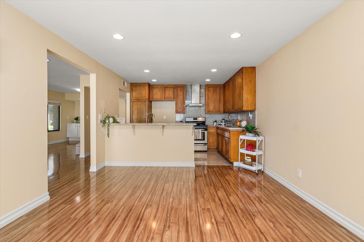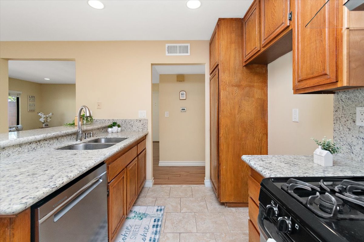 Honey…this is the one! Tucked gently within the beloved Tiburon community, this highly sought after single-level end-unit townhome feels like a quiet story waiting to be lived. Set on a premium lot with only one shared wall, it offers a sense of privacy that is both rare and comforting. Just steps from the sparkling pool and surrounded by extra reserved resident parking, convenience meets serenity at every turn. A detached two-car garage and an additional reserved space by the front door welcome you home with ease. Bathed in natural light, the home unfolds in an inviting, flowing layout where each space gently blends into the next. A thoughtfully reimagined front bedroom now lives as a graceful den—its built-in counter and cabinetry blending seamlessly into the living space, creating an airy, versatile setting-perfectly suited for a home office, reading retreat, or those quiet mornings or lively gatherings. Warm gleaming wood flooring flows effortlessly through the living and dining areas, hallway, and den, tying each space together with elegance. The refined kitchen invites connection, adorned with granite countertops, a raised breakfast bar, stainless steel appliances, and generous cabinetry. It opens naturally to a flexible dining or family area, where conversations linger and moments gather, all extending toward the private backyard beyond. Both bathrooms have been beautifully updated with granite vanities, custom cabinetry, designer mirrors, and tasteful tile finishes. Each bedroom is filled with soft natural light and tranquil views of lush greenbelts, while the primary suite offers a charming window seat—an intimate corner for reflection and rest. Beyond the walls, the backyard becomes a sanctuary. An expansive paved patio sits beneath a modern louvered pergola, its adjustable cover allowing sunlight or shade to dance as you wish—perfect for year-round enjoyment, from golden afternoons to gentle rainy evenings. Other exceptional upgrades include a new 200-amp electrical panel, dual-pane windows, recessed lighting, crown molding, baseboards, and termite clearance—details that quietly elevate everyday living. All within the award-winning ABC Unified School District and moments from shopping, dining, and freeway access, the Tiburon community offers two pools, a spa, clubhouse, playground, and peaceful greenbelt paths. With so much to give and so much to feel…this isn’t just a home—it’s where your next chapter begins. MAKE THIS AMAZING HOME YOURS TODAY!
