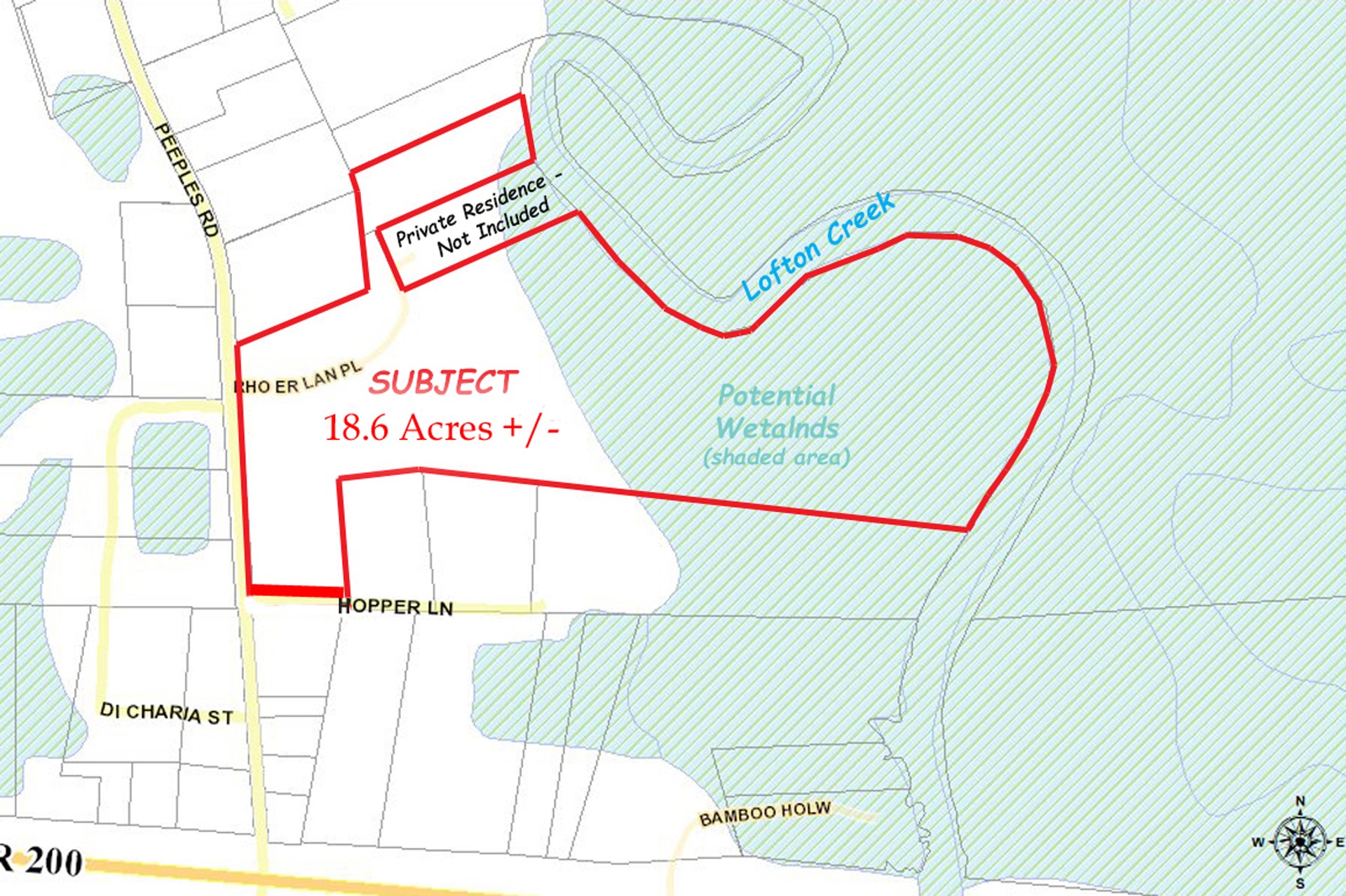 Quiet and peaceful location off Peeples Road offers approximately 18.6 acres/- with tidal creek frontage on Lofton Creek. This property is perfect for the person that desires a private estate-size location. Conveniently located to Yulees elementary, middle and high schools with shopping and medical clinics minutes away. Current zoning Open Rural (OR) allows for horses. Nassau County public boat ramp is located 5 minutes south of property. Property consists of 2 adjoining parcels: 17.3 acres/- (52-3N-27-0000-0002-0200) and 1.3 acres/- (52-3N-27-0000-0002-0620). Amelia Island with its white-sand beaches and Fernandina Beach historic downtown is approximately 15 minutes eastward. Jacksonville International Airport is approximately 30 minutes from property.