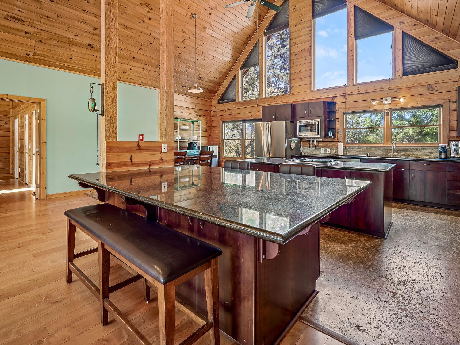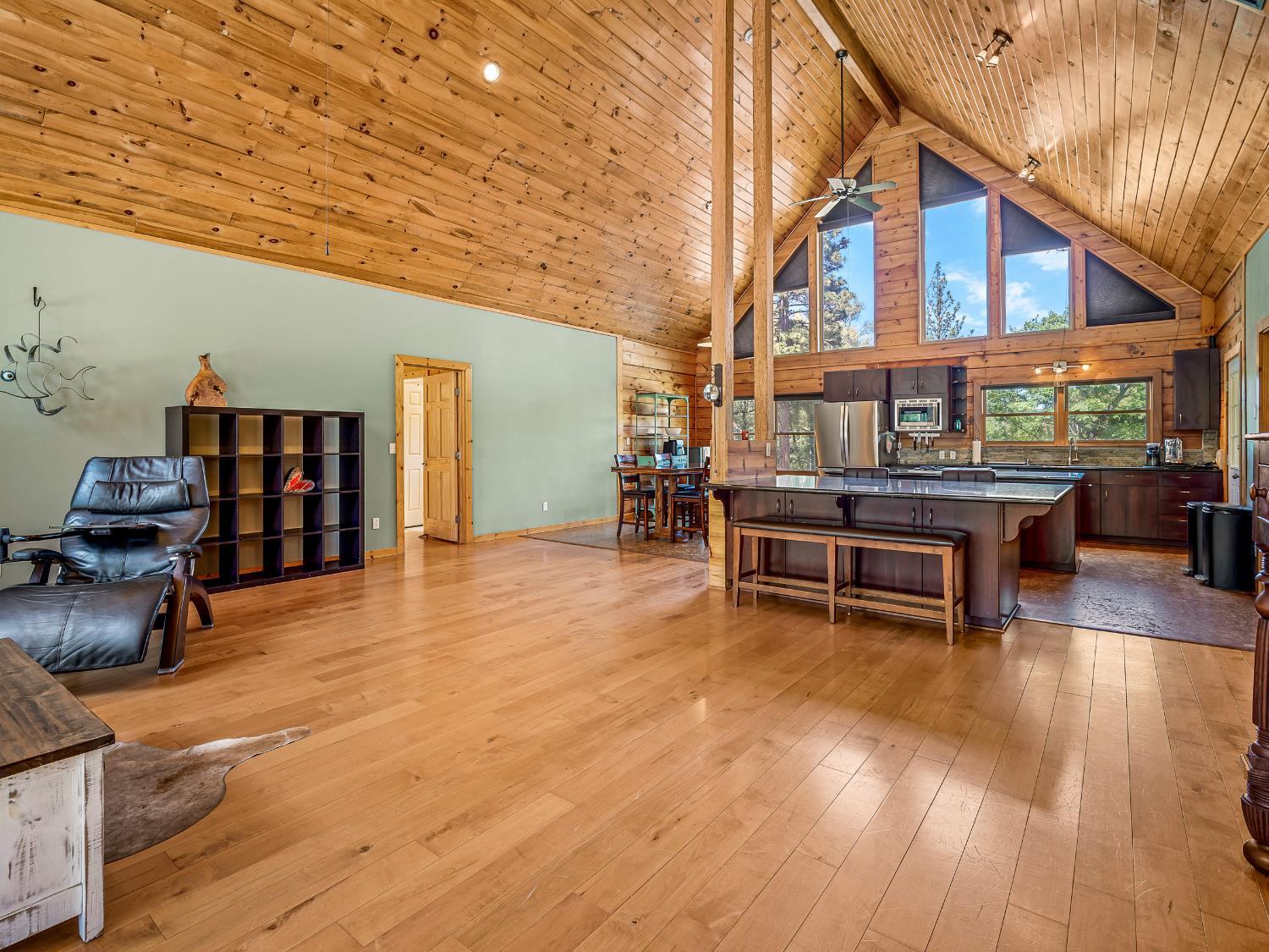 This gorgeous mountain house is nestled on 10 park like usable acres with filtered views. The interior welcomes you with glowing wood from floors to vaulted ceilings, large windows to enjoy nature from the comforts of your new home sweet home. The kitchen is an entertainers delight with space for multiple chefs, their helpers & guests. The open floor plan makes for low maintenance living.