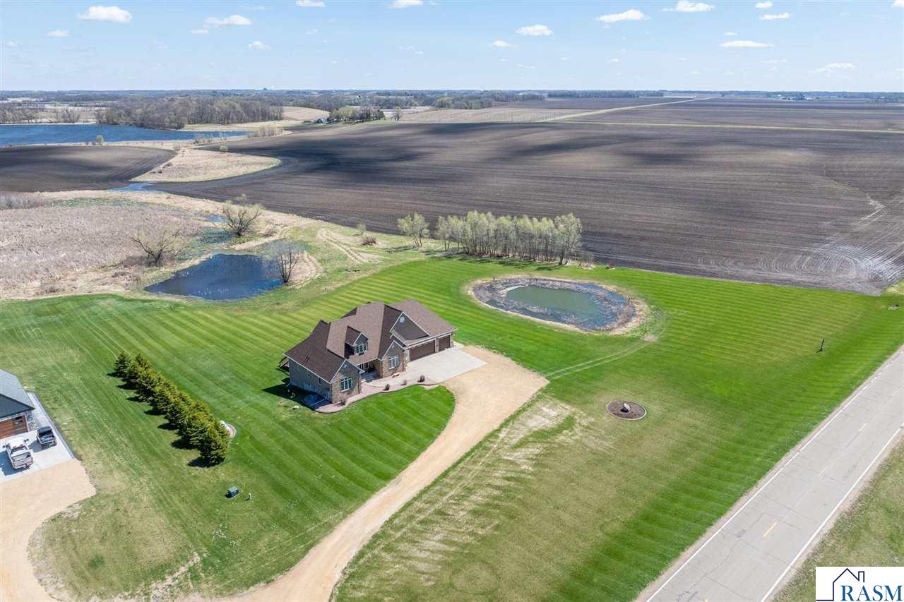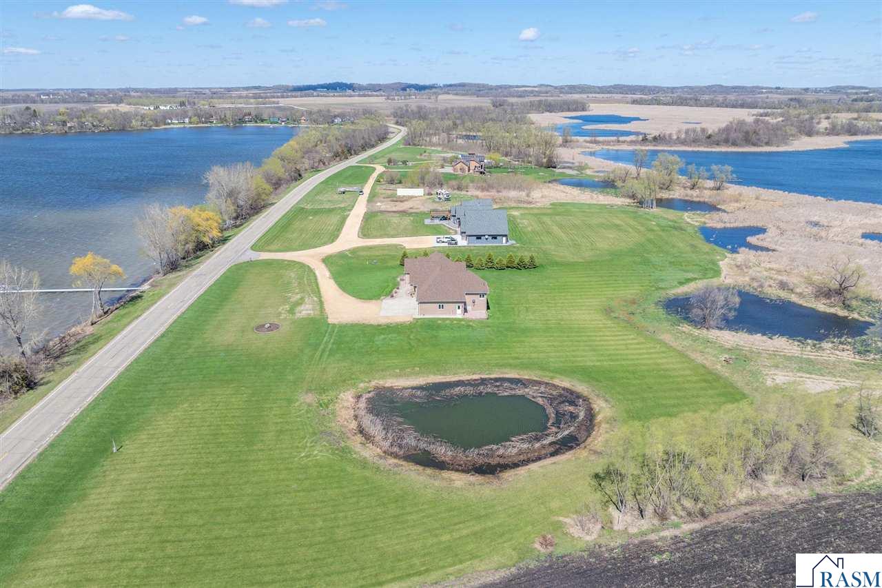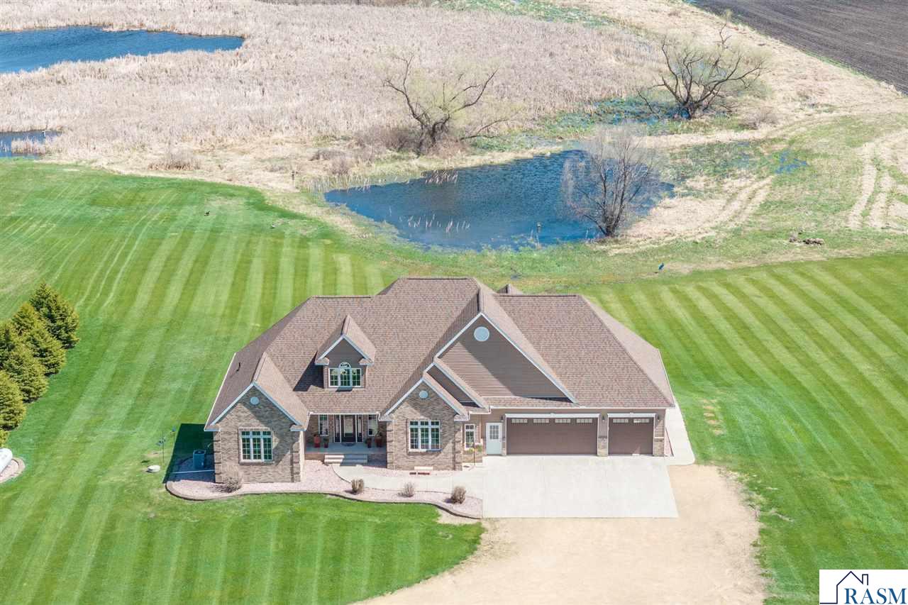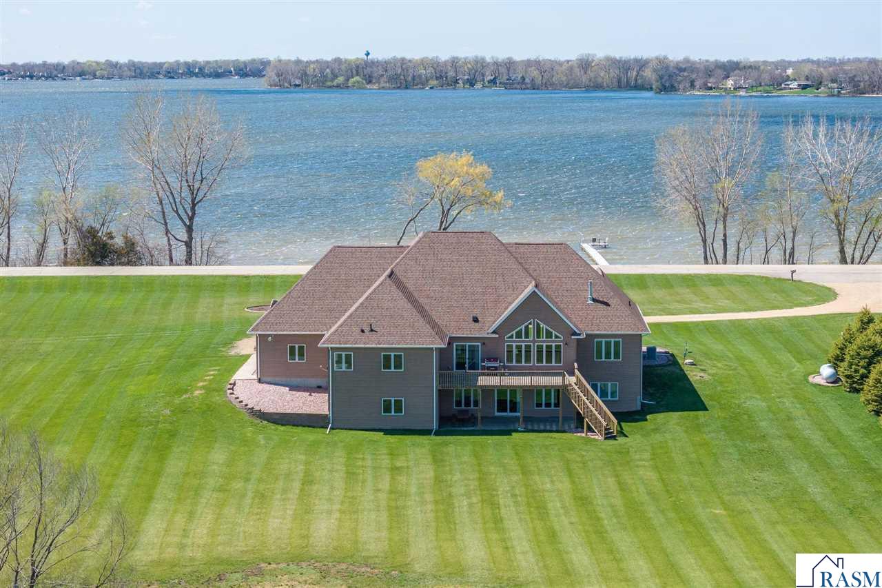Welcome to your dream lake home on beautiful Madison Lake. 5 bedrooms, 4 bathrooms perfectly positioned on 5.28 acres with 514 of shoreline. Step inside to a stunning great room with 14.5 vaulted ceilings, a cozy gas fireplace, and expansive windows that capture breathtaking sunrises and sunset views over the water. The completely remodeled custom kitchen with both an island and peninsula flow seamlessly into a formal dining room, both offering incredible views of the lake. The main level features three bedrooms, including a luxurious primary suite with heated bathroom floors, a walk-in jetted tub, tile shower, and more stunning lake views, plus convenient main floor laundry. The walkout lower level is built for entertaining and everyday living with a wet bar, two additional bedrooms (5th bedroom currently used as a workout room), two bathrooms, garage access, and impressive storage. A heated three-stall garage with epoxy flooring adds additional entertaining space. Outside, enjoy your own private pond, abundant wildlife, and direct lake access with dock and lift included, making this property feel like a year-round retreat. Major updates include all new paint and flooring throughout, multiple-zone HVAC, water softener, water heater with recirculation pump, roof, kitchen, primary bathroom, built-in living room cabinetry, and updated light fixtures - just to name a few!
