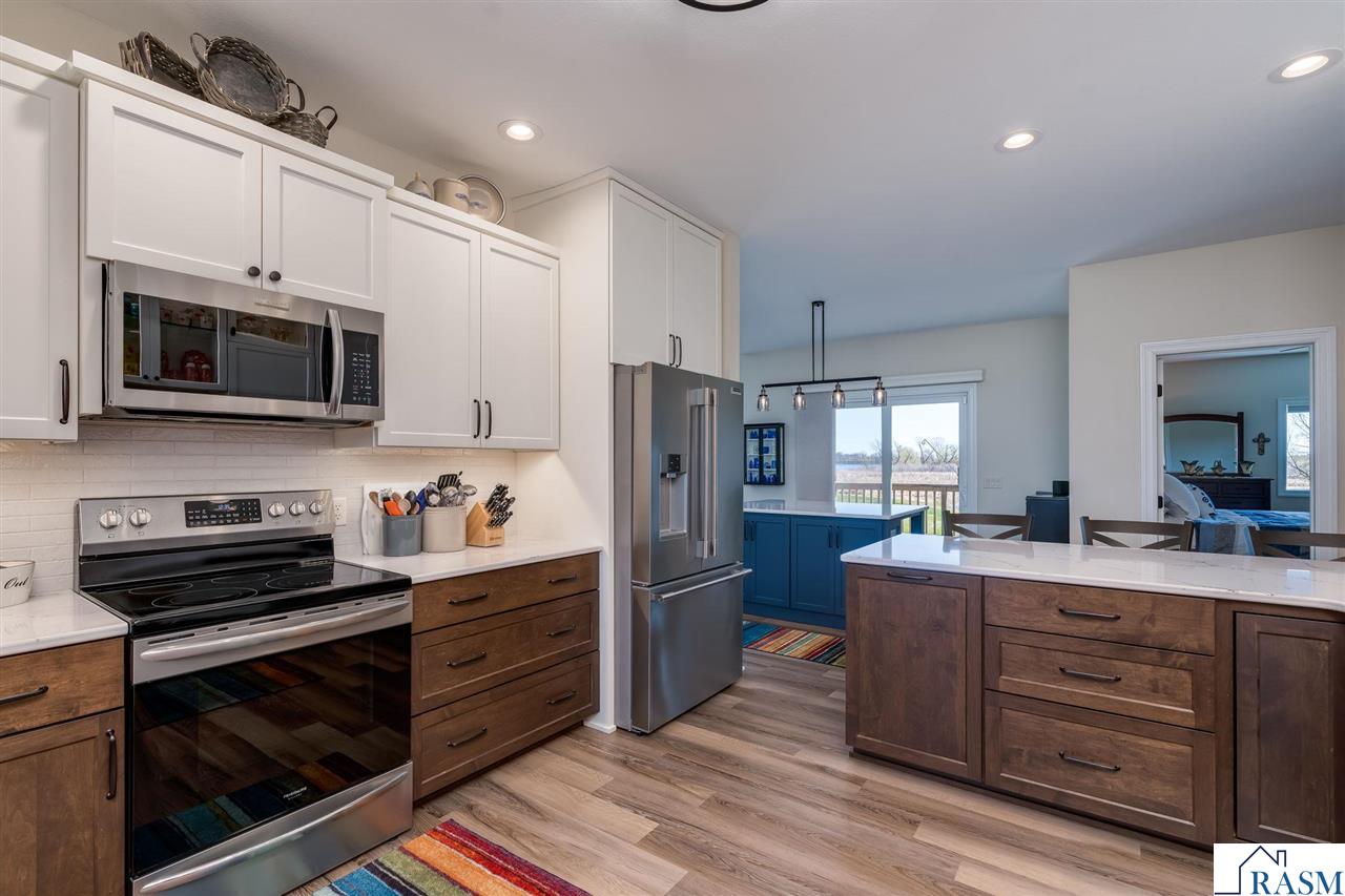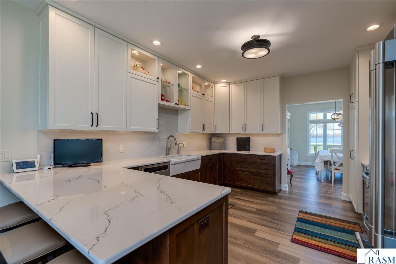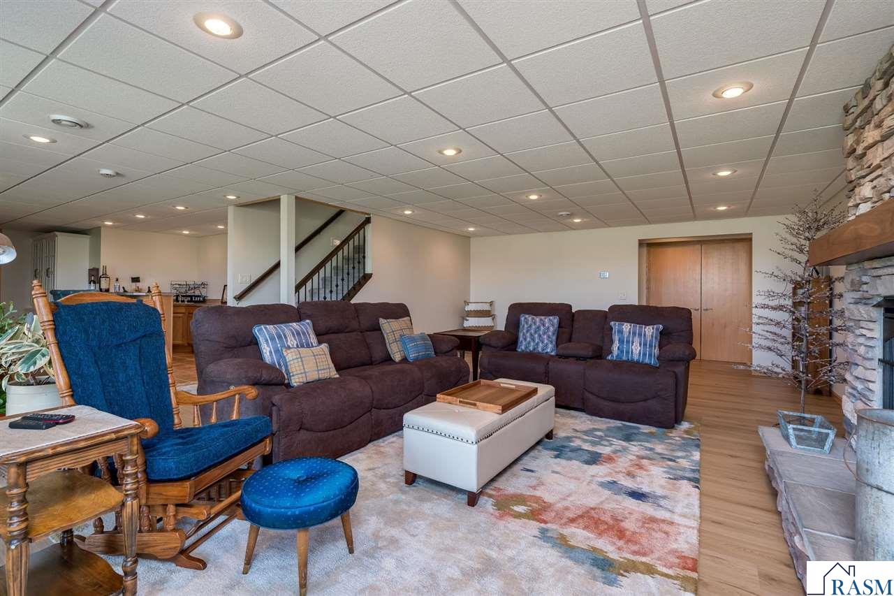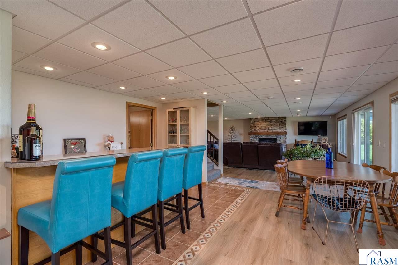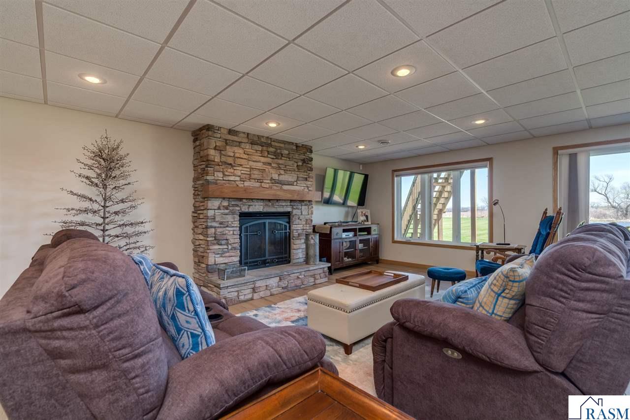 Welcome to your dream lake home on beautiful Madison Lake. 5 bedrooms, 4 bathrooms perfectly positioned on 5.28 acres with 514 of shoreline. Step inside to a stunning great room with 14.5 vaulted ceilings, a cozy gas fireplace, and expansive windows that capture breathtaking sunrises and sunset views over the water. The completely remodeled custom kitchen with both an island and peninsula flow seamlessly into a formal dining room, both offering incredible views of the lake. The main level features three bedrooms, including a luxurious primary suite with heated bathroom floors, a walk-in jetted tub, tile shower, and more stunning lake views, plus convenient main floor laundry. The walkout lower level is built for entertaining and everyday living with a wet bar, two additional bedrooms (5th bedroom currently used as a workout room), two bathrooms, garage access, and impressive storage. A heated three-stall garage with epoxy flooring adds additional entertaining space. Outside, enjoy your own private pond, abundant wildlife, and direct lake access with dock and lift included, making this property feel like a year-round retreat. Major updates include all new paint and flooring throughout, multiple-zone HVAC, water softener, water heater with recirculation pump, roof, kitchen, primary bathroom, built-in living room cabinetry, and updated light fixtures - just to name a few!