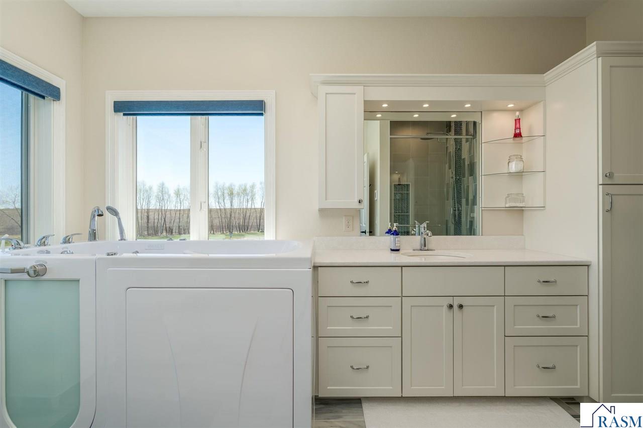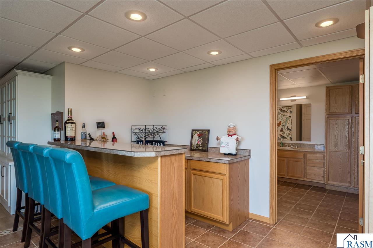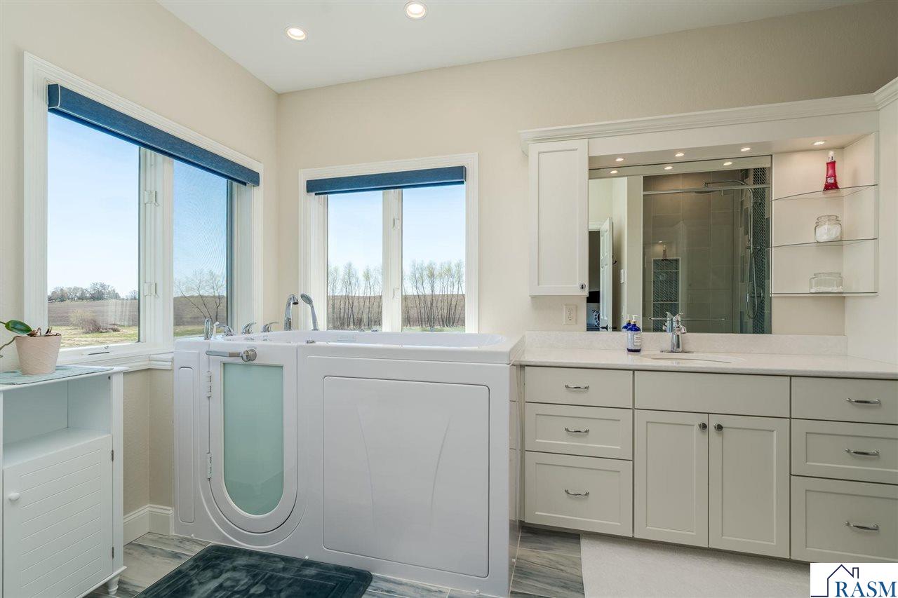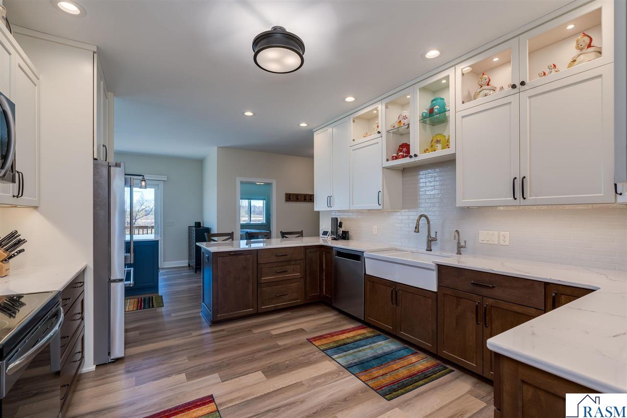 Welcome to your dream lake home on beautiful Madison Lake. 5 bedrooms, 4 bathrooms perfectly positioned on 5.28 acres with 514 of shoreline. Step inside to a stunning great room with 14.5 vaulted ceilings, a cozy gas fireplace, and expansive windows that capture breathtaking sunrises and sunset views over the water. The completely remodeled custom kitchen with both an island and peninsula flow seamlessly into a formal dining room, both offering incredible views of the lake. The main level features three bedrooms, including a luxurious primary suite with heated bathroom floors, a walk-in jetted tub, tile shower, and more stunning lake views, plus convenient main floor laundry. The walkout lower level is built for entertaining and everyday living with a wet bar, two additional bedrooms (5th bedroom currently used as a workout room), two bathrooms, garage access, and impressive storage. A heated three-stall garage with epoxy flooring adds additional entertaining space. Outside, enjoy your own private pond, abundant wildlife, and direct lake access with dock and lift included, making this property feel like a year-round retreat. Major updates include all new paint and flooring throughout, multiple-zone HVAC, water softener, water heater with recirculation pump, roof, kitchen, primary bathroom, built-in living room cabinetry, and updated light fixtures - just to name a few!