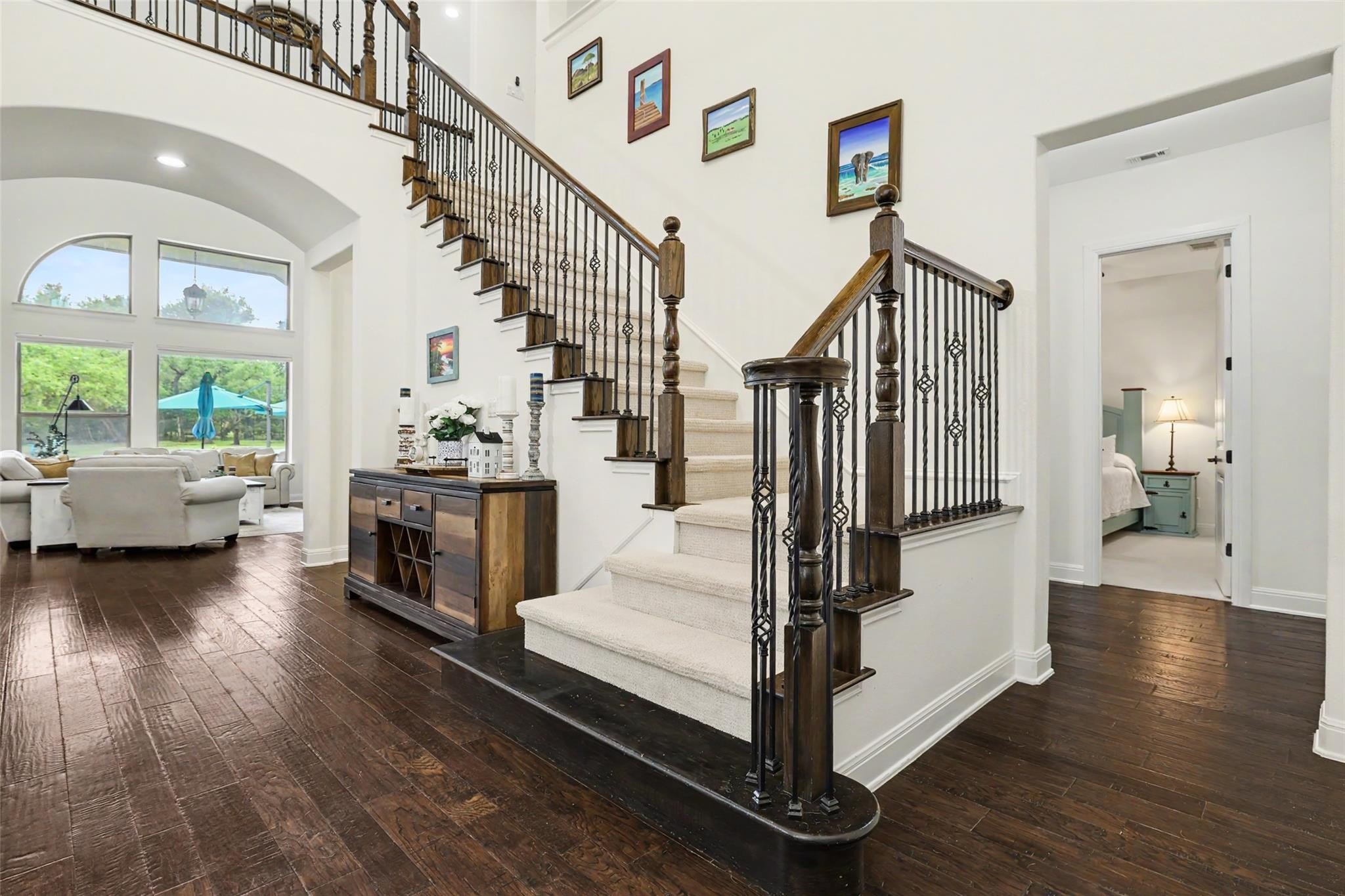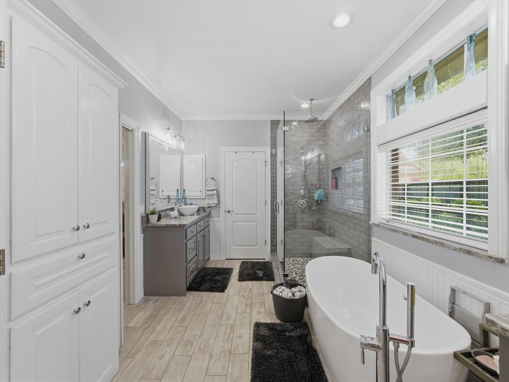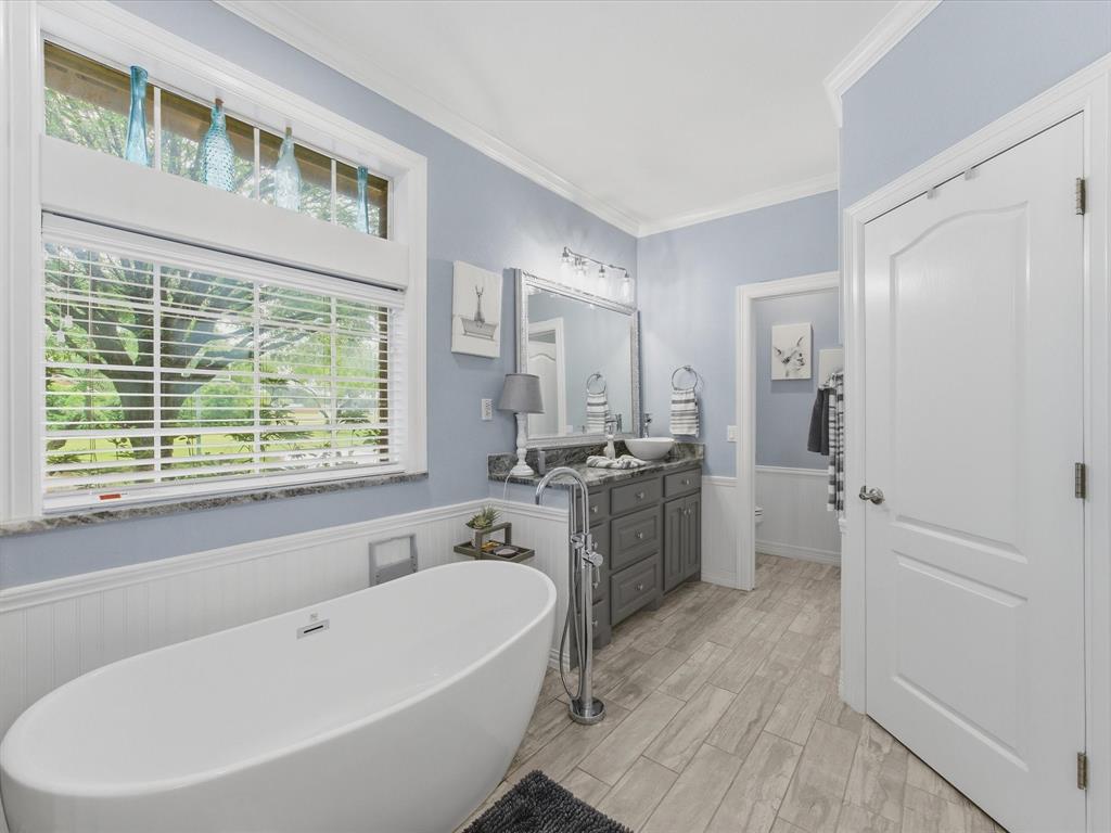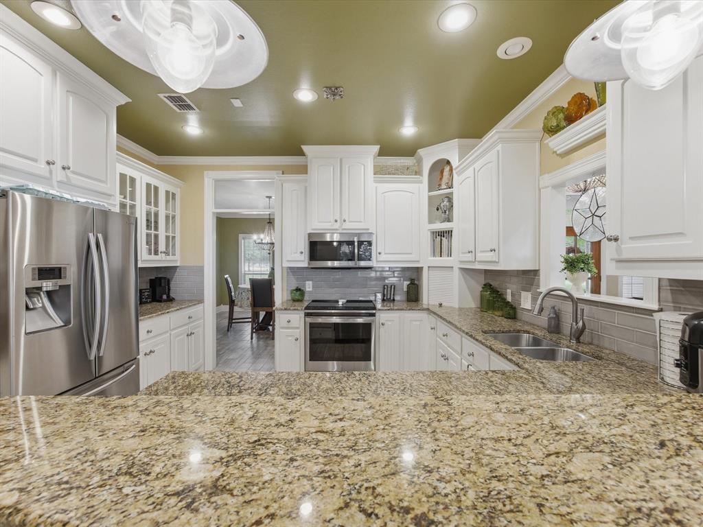Enjoy luxury living in this show stopper of a home sitting on over 3 acres of beautiful land. This open concept layout is incredibly functional and welcoming. The main living space features formal decorative ceilings, pocket office space, pet palace and much more! The gourmet kitchen boasts the most amazing view with tons of natural light, stainless steel appliances.. Step out onto your covered deck to peace, serenity and the absolute best view. Primary suite features tray ceilings with a designer showcase double tile shower. Second story houses 4 additional bedrooms. One bedroom is extremely oversized and very multi-functional to fit your needs. Enjoy the extra space that comes with having a 3rd car garage! You deserve a property like this that you can be proud of.