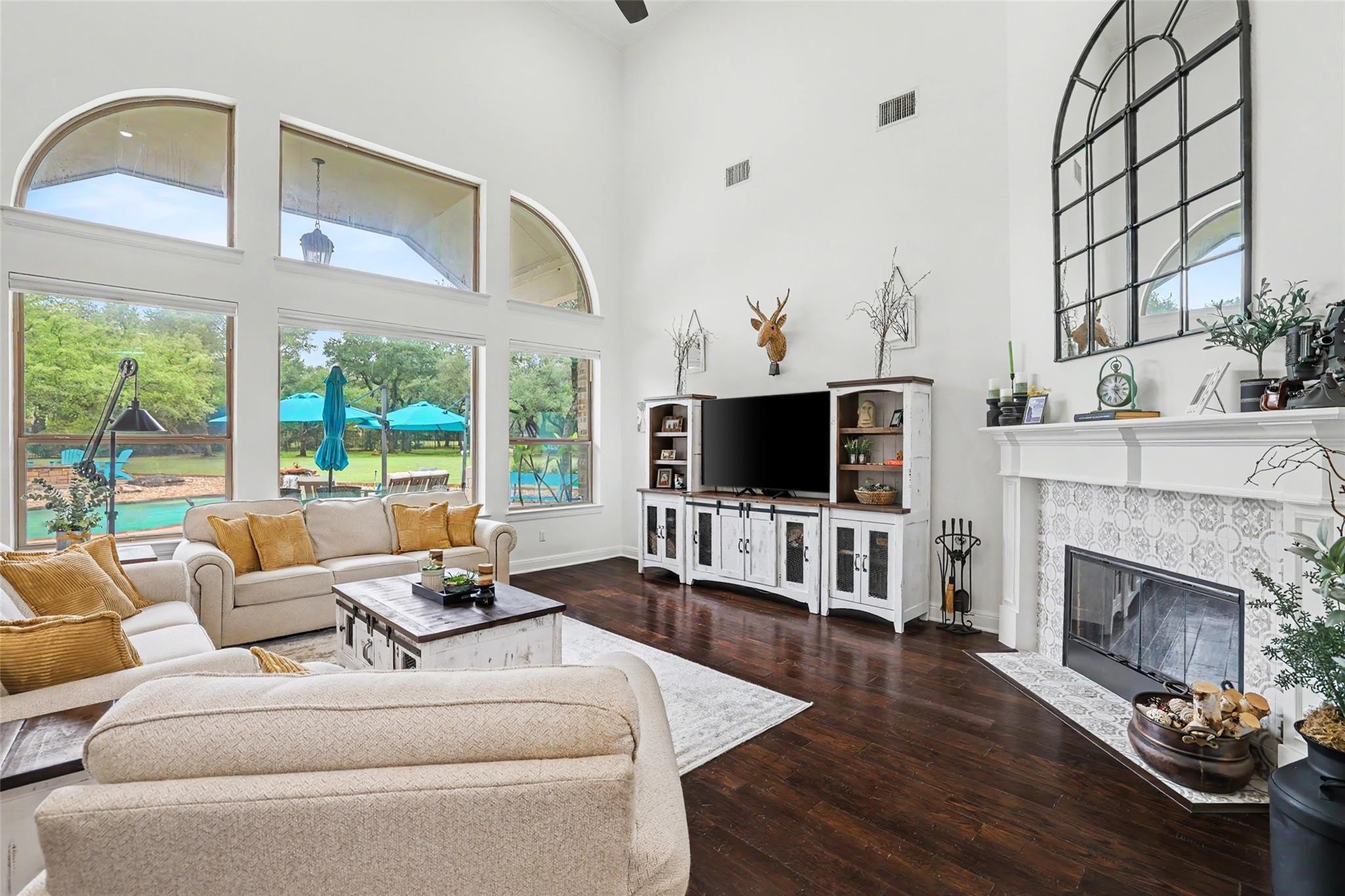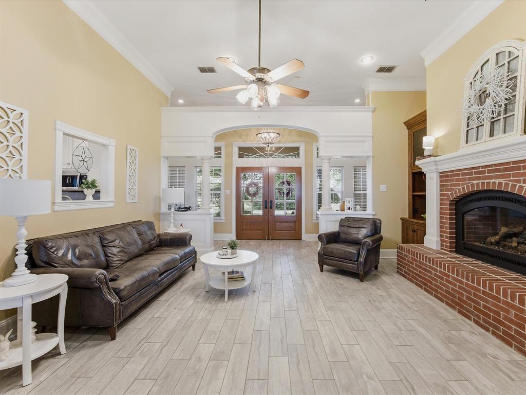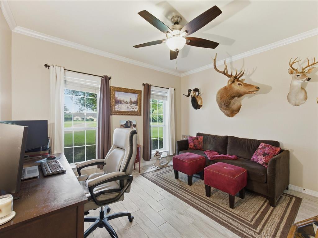 Enjoy luxury living in this show stopper of a home sitting on over 3 acres of beautiful land. This open concept layout is incredibly functional and welcoming. The main living space features formal decorative ceilings, pocket office space, pet palace and much more! The gourmet kitchen boasts the most amazing view with tons of natural light, stainless steel appliances..