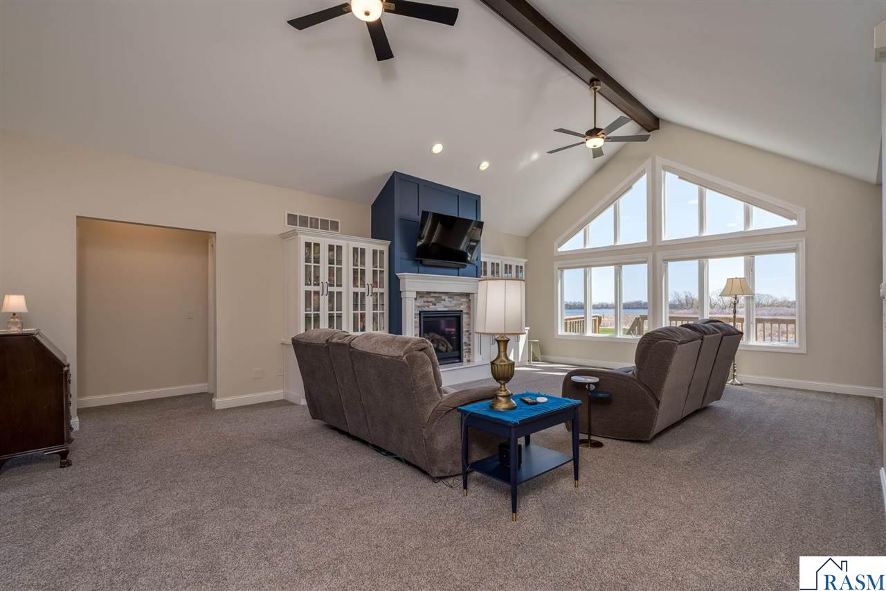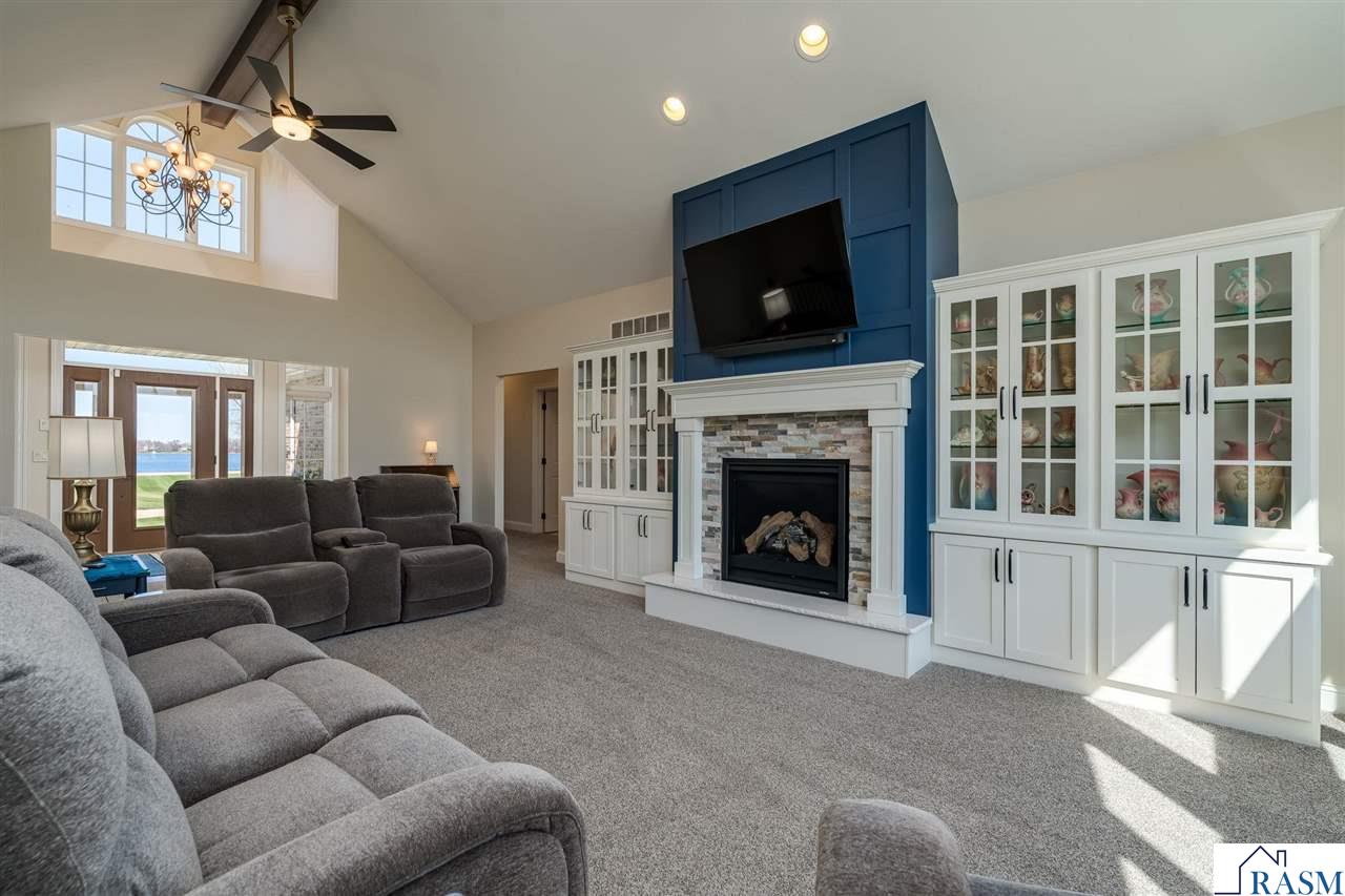 Welcome to your dream lake home on beautiful Madison Lake. 5 bedrooms, 4 bathrooms perfectly positioned on 5.28 acres with 514 of shoreline. Step inside to a stunning great room with 14.5 vaulted ceilings, a cozy gas fireplace, and expansive windows that capture breathtaking sunrises and sunset views over the water.