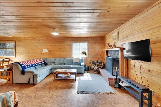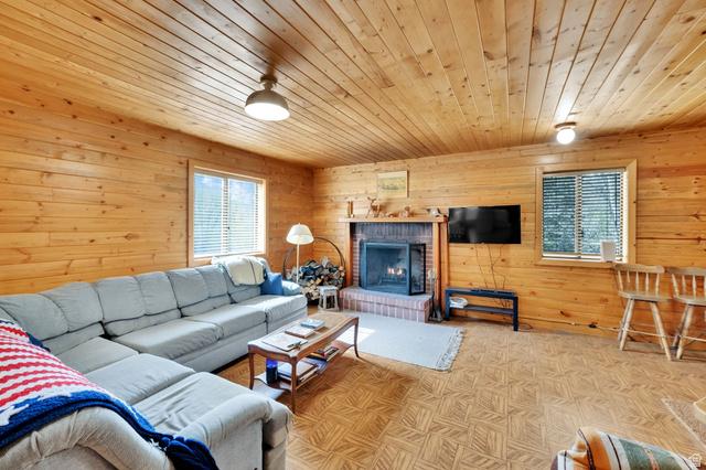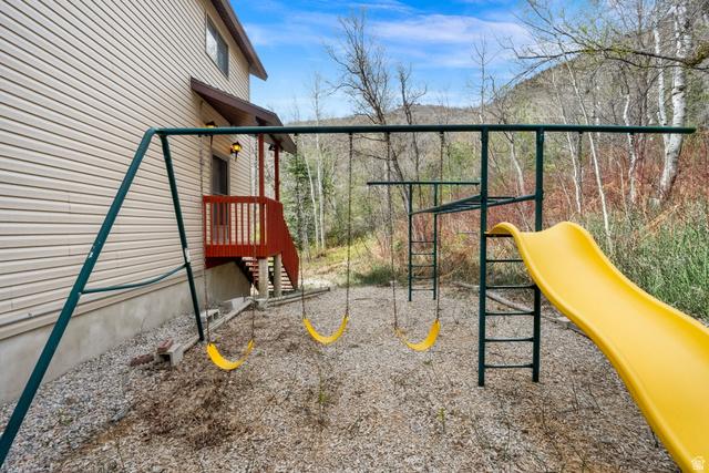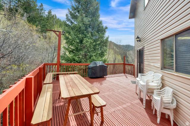 Stunning Mount Aire Retreat! This is an exquisite cabin, a true gem tucked away amidst the tranquil trees. Well cared for as a cherished family gathering spot. The spacious kitchen seamlessly flows into the inviting family room, featuring a cozy fireplace. 3 bedrooms upstairs, Huge family room downstairs with additional fireplace. Step onto the expansive deck offering breathtaking views. The ample flat yard with a stream running through, a swingset, and a gathering spot perfect for outdoor enjoyment. Discover a private sanctuary within this exclusive gated community, while still being only minutes away from the vibrant Salt Lake City. NO HOA. Come see this private sanctuary in this secluded gated community only minutes from Salt Lake City