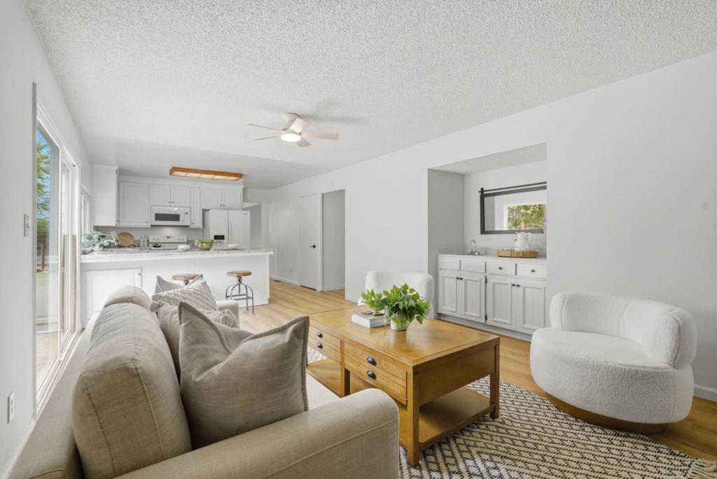 Welcome to this spacious 4-bedroom, 3-bath home offering 2,177 square feet of living space. Inviting entry with high vaulted ceilings and plenty of natural light. The residence features a wood-burning fireplace, brand new laminate flooring and new paint throughout. The layout includes a kitchen and family room combo as well as a separate living room.