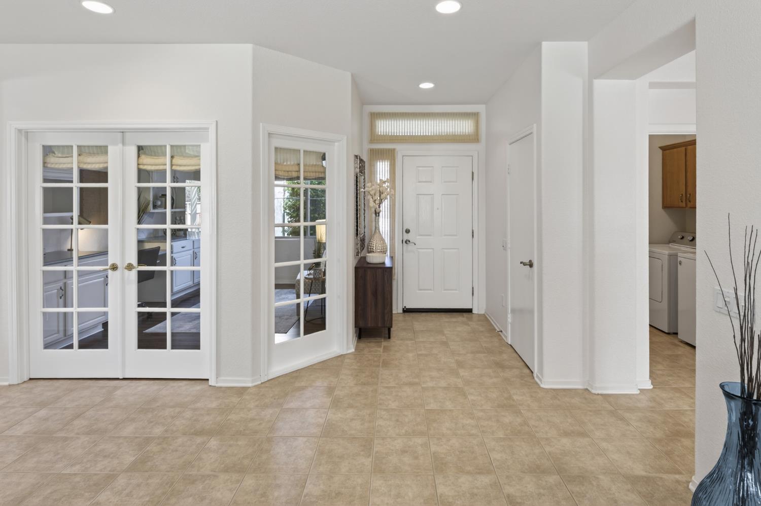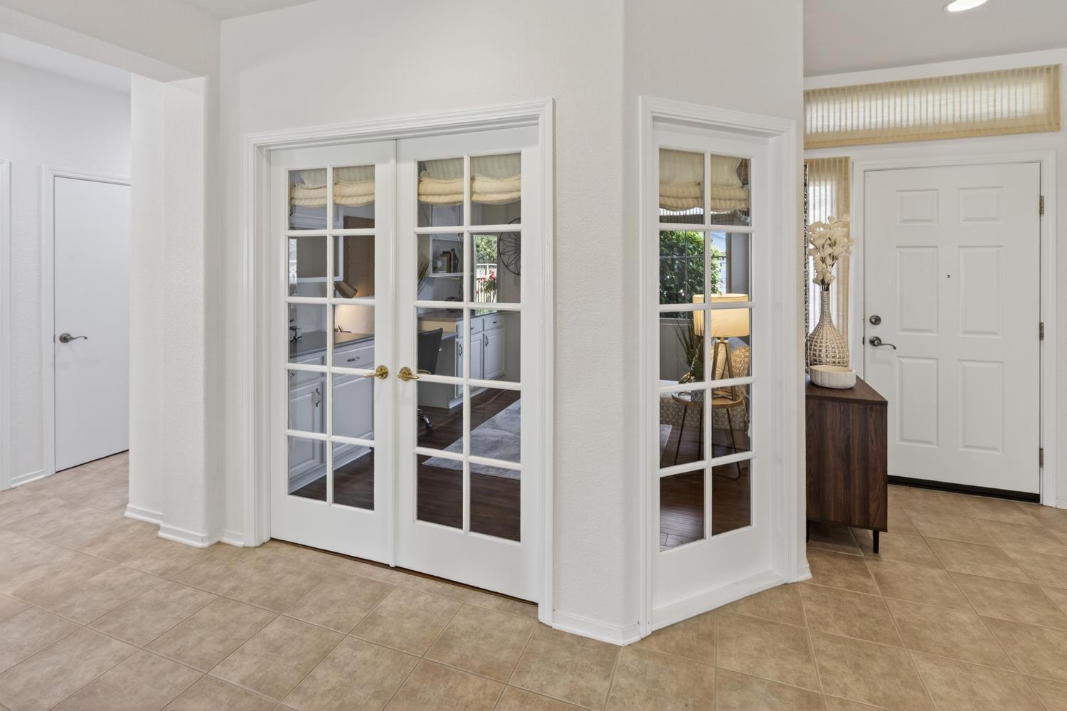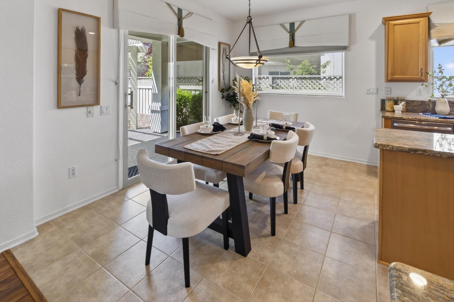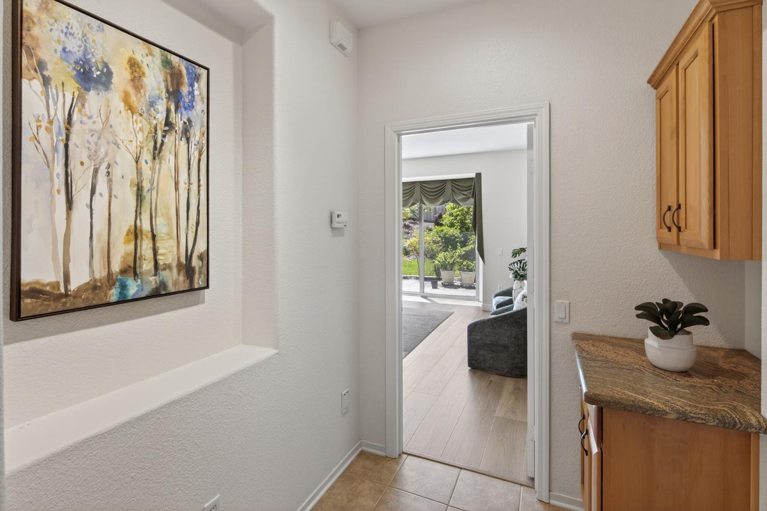 This beautifully maintained home offers a spacious open floor plan designed for comfortable living and effortless entertaining. The inviting living area features custom built-in shelving surrounding the fireplace, creating a warm and functional focal point. The kitchen is equipped with sleek black stainless steel appliances and flows seamlessly into the main living spaces, making it ideal for gatherings. A versatile den includes built-in cabinets and desk--perfect for a home office, study, or hobby space. Step outside to a large patio complete with shade structure providing the perfect setting for outdoor dining and entertaining. The side yard showcases charming gravevines while the backyard boasts mature lemon, lime, and mandarin trees--your own private orchard. Back inside the primary suite features a raised dual vanity adding both style and convenience. Additional highlights include owned solar for energy efficiency and long-term savings. A perfect bland of comfort, functionality and outdoor enjoyment--this home is ready to impress.