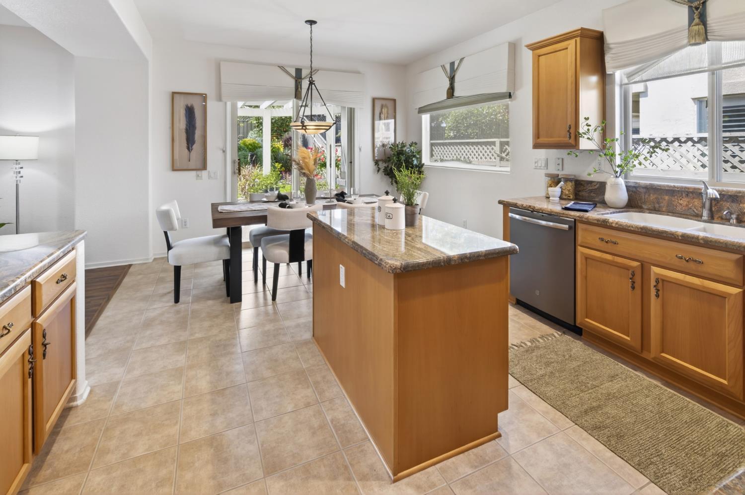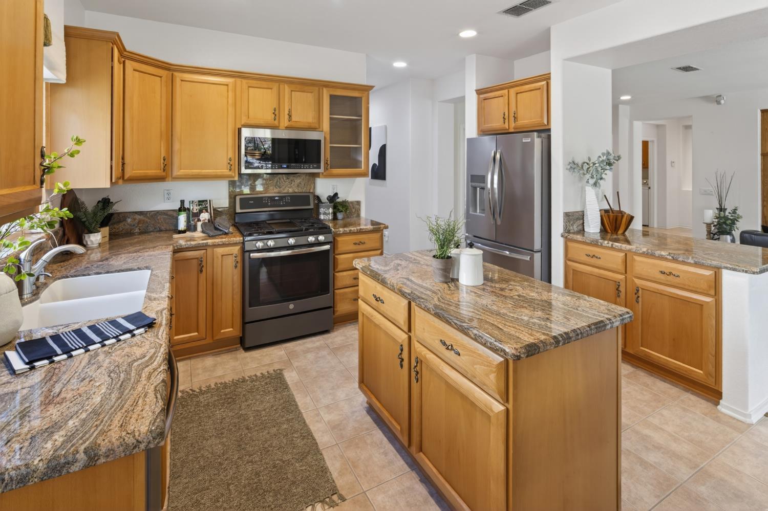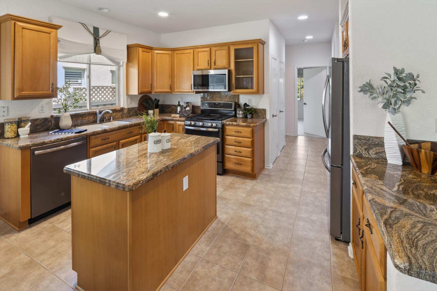 Turnkey home with sparkling rockscape pool and waterfall feature will be perfect for this summer and all your summers! This beauty offers a spacious floorplan for living for multi-family living combined with single story simplicity. The great room is one of the interior main features. Lots of natural sunlight graces this home and its high vaulted ceilings make it feel wide open.