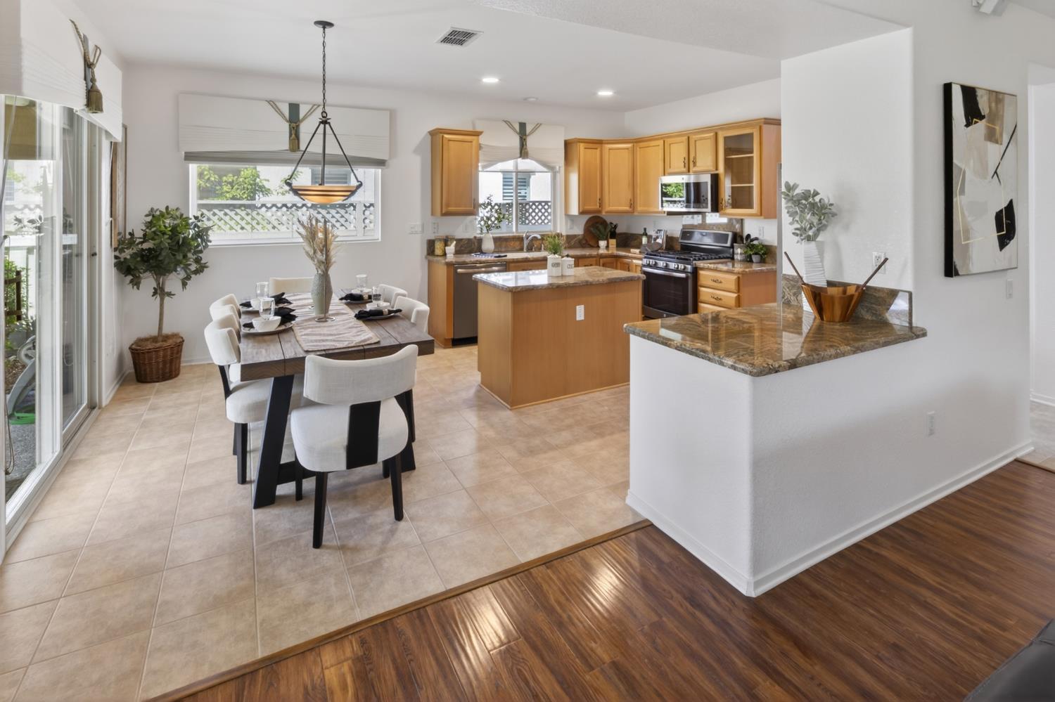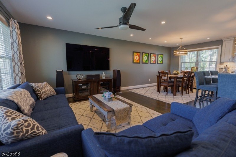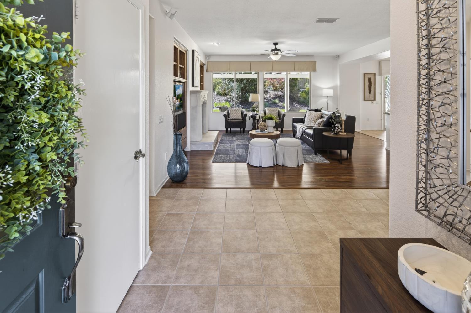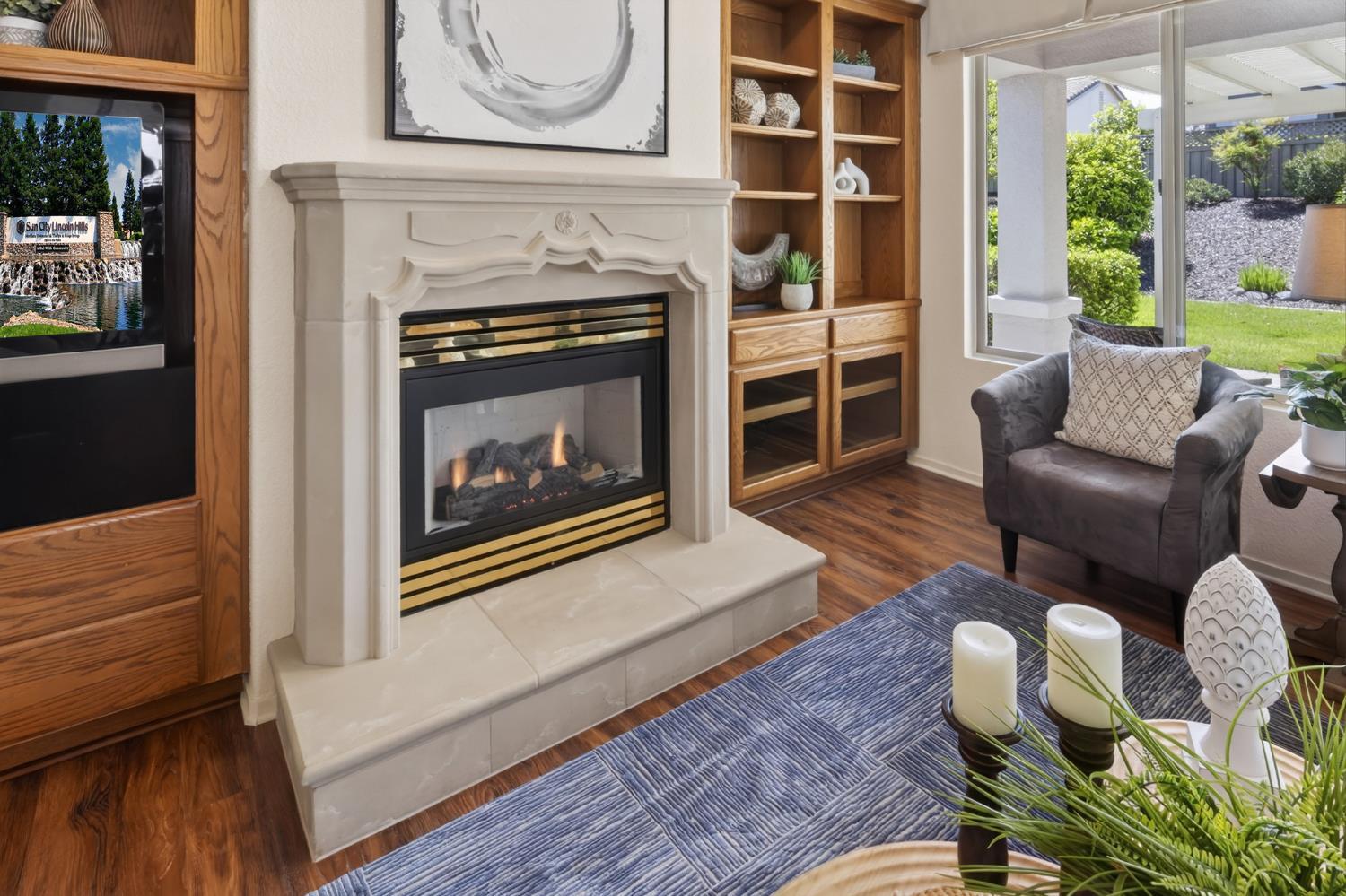 This beautifully maintained home offers a spacious open floor plan designed for comfortable living and effortless entertaining. The inviting living area features custom built-in shelving surrounding the fireplace, creating a warm and functional focal point.