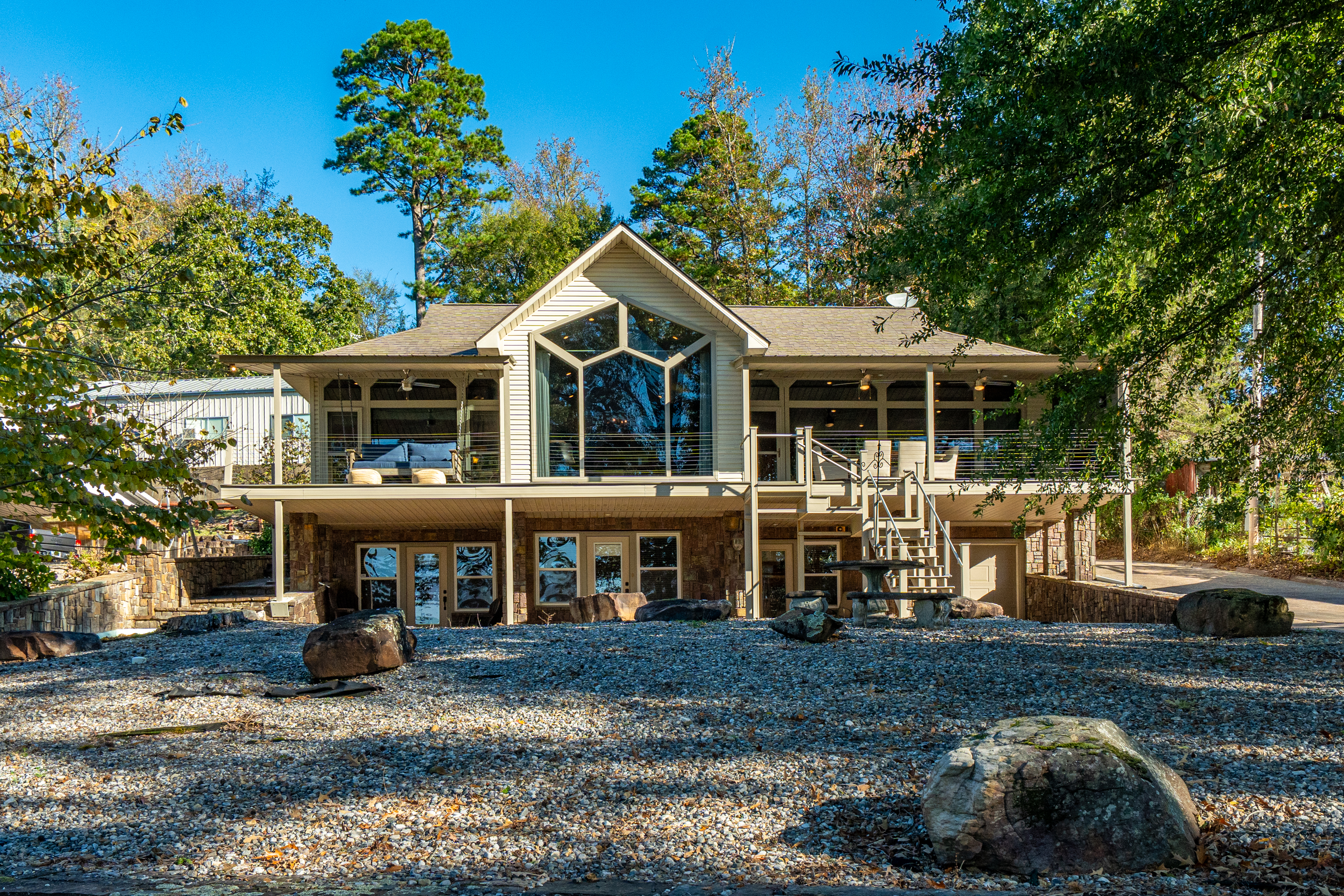 Sweeping Lake Greeson views from this custom-built retreat on a quiet Kirby street! This 2,468 SF home sits on .38 acres with stunning vistas across Corps-protected land. Entertain on the expansive composite deck with an electric fireplace, or relax on the additional covered patio.