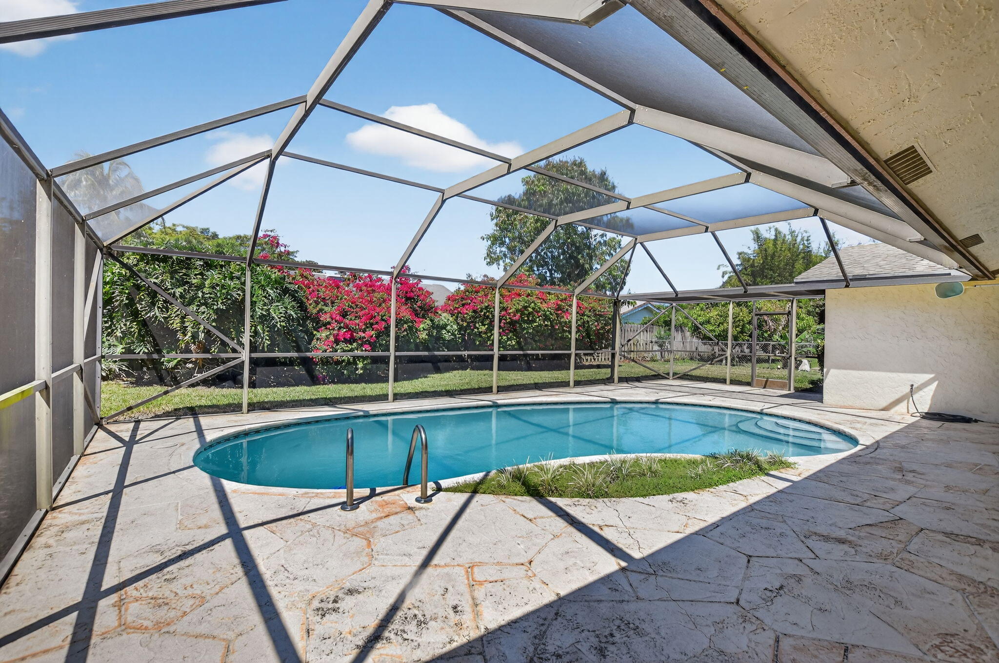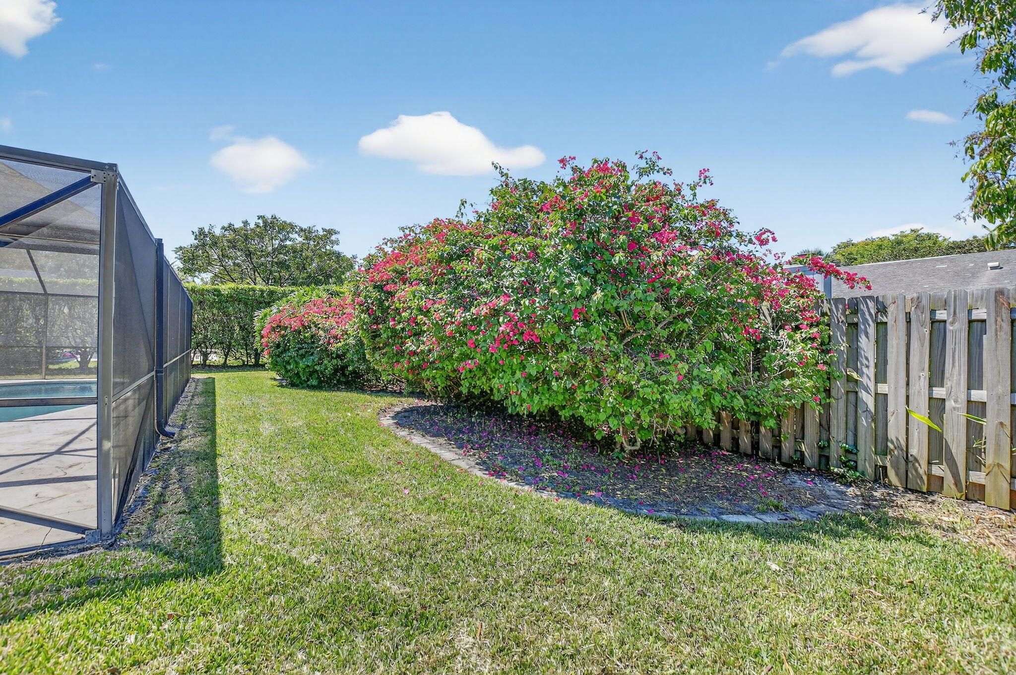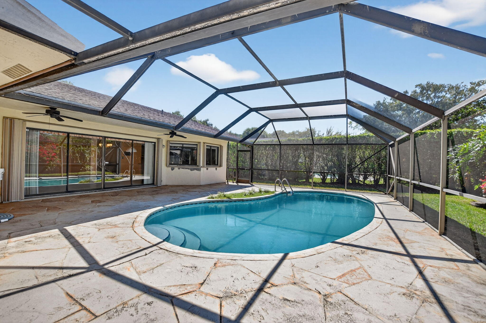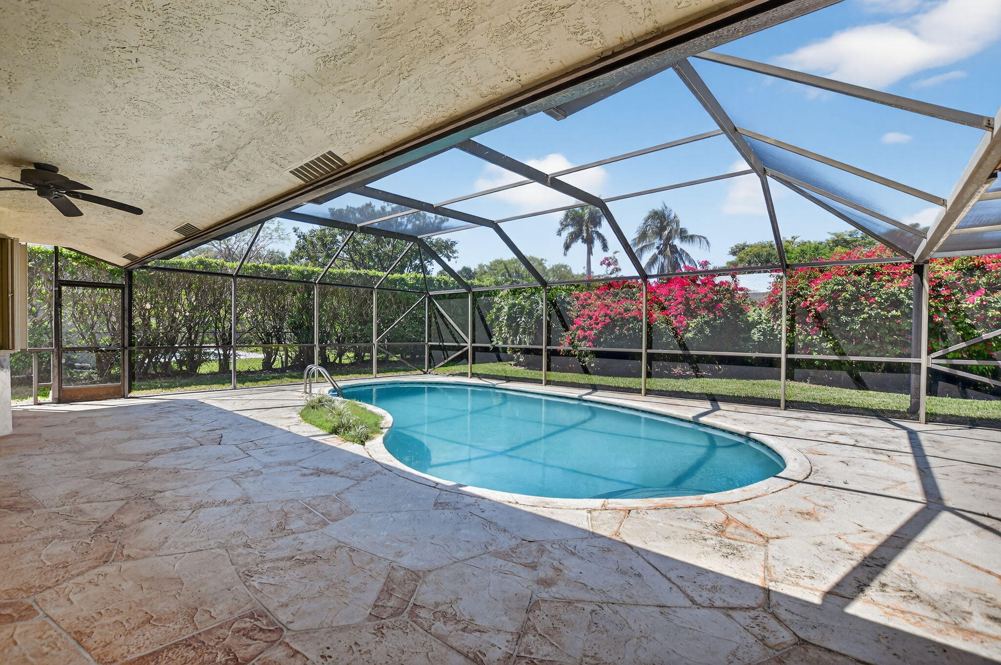 This 1 story, 4 bedroom, 2 bathroom home features high ceilings providing lots of natural light, a private screened in pool with extra yard space, 2 car garage, and separate family room and living room spaces. Both the primary bedroom and bathroom have direct pool access. The home is conveniently located in Central Boca Raton in the low HOA Strathmore neighborhood.