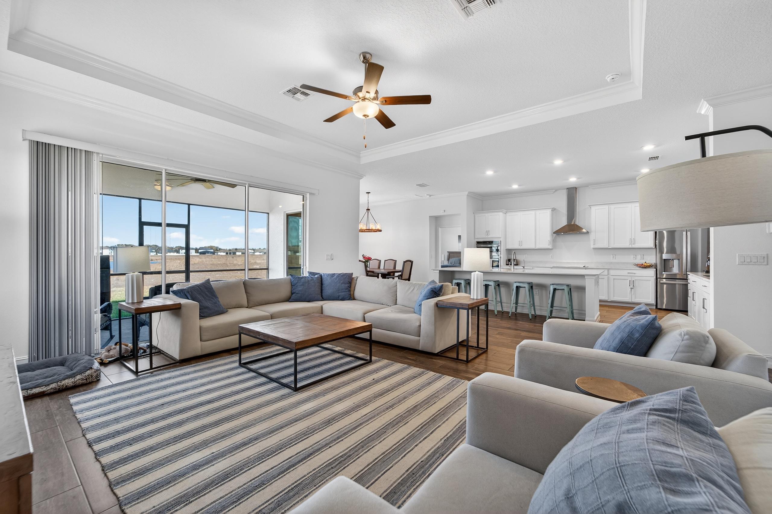 Welcome to this Whitney floor plan, the largest in its collection, offering 5 bedrooms, 4 full bathrooms, and a 3-CAR GARAGE with epoxy flooring in the highly sought-after Triple Creek community in Riverview. Step inside to soaring ceilings, 8-foot doors, and a bright open-concept layout designed for both everyday living and entertaining.