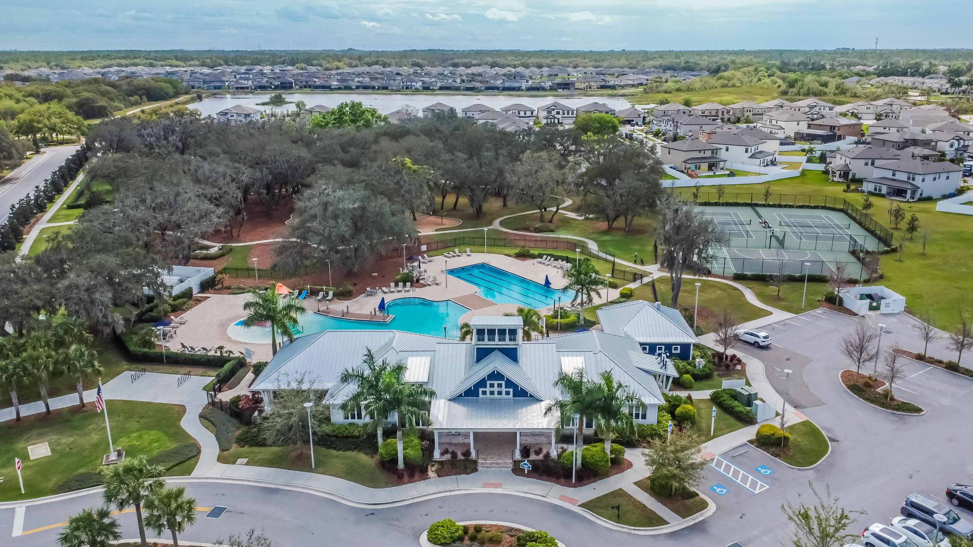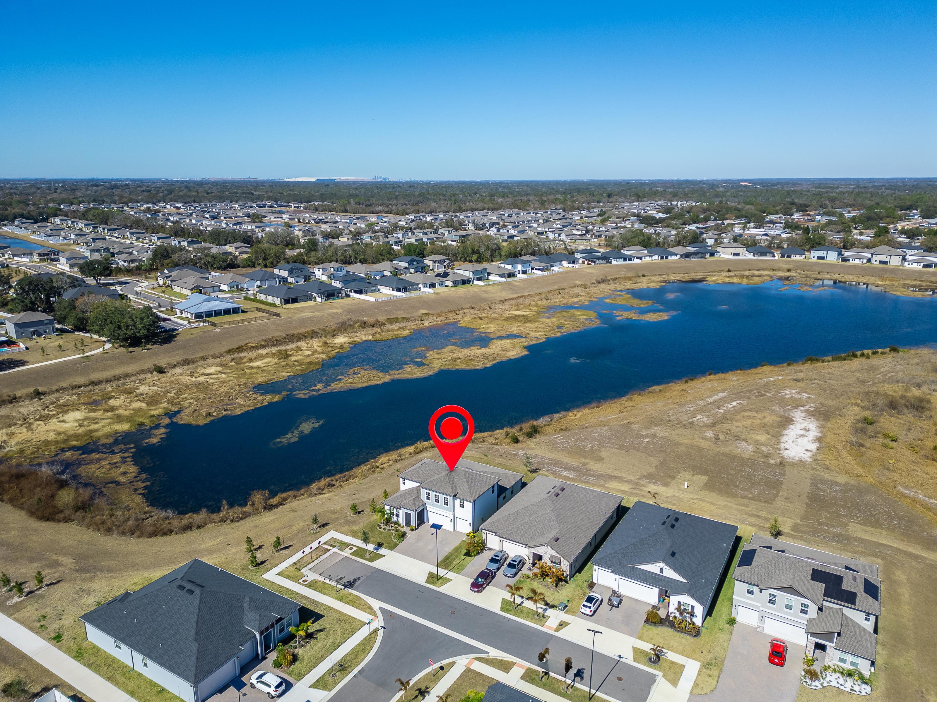 PRICE IMPROVEMENT Look no further!! Your executive dream home awaits and nestled on a premium lot in the exquisite gated community of Waterleaf. This 4200 sqft plus home features 5 bedrooms, 4.5 bathrooms, 3 car garage. This Madeira model presented by Homes by West Bay offers luxury and elegance with many ugrades to enhance any lifestyle. As you enter the home and step into the soaring foyer you will notice a private home office, formal dining room, and expansive gathering area where comprised of the great room, gourmet kitchen and casual dining. The kitchen is a chefs dream with ample storage, and a center island perfect for meal preparation and hosting. This amazing entertainment hub provides views of the pond and expansive backyard from many vantage points. Tucked in the back on the main floor is a private bedroom to use as a guest room, in-law suite or home gym; the possibilities are endless. The backyard has a beautiful view of the pond and offers a peaceful ambiance, perfect for relaxing and taking in all that nature has to offer; watching the sunrise and sunsets. The second floor features a large bonus room splitting the primary bedroom from the the additional bedrooms which are generously sized and provide plenty of space for family members or guests. Also found upstairs for convenience, is the oversized laundry room and extended balcony to enjoy the beautiful water views. Upon entering the owners retreat, you will enjoy a luxurious ensuite, with dual split vanities, separate shower and tub as well as expansive walk in closets. Additionally, take in the great views from your private balcony overlooking the pond. This home has it all; luxury, energy efficiency, style and space. The homeowner association fee covers Spectrum UltraFi WiFi (500 mb) as well as extended basic cable, including Showtime. This residence is conveniently located only 30 minutes from Downtown Tampa, MacDill, Sarasota, award winning beaches, top rated schools, shopping, dining, medical facilities, and major highways. The Waterleaf community offers a resort-style pool, a clubhouse, bike and walking trails, dog park and a sports court, enhancing the overall living experience. Dont delay on scheduling your private tour today and say yes to the address!