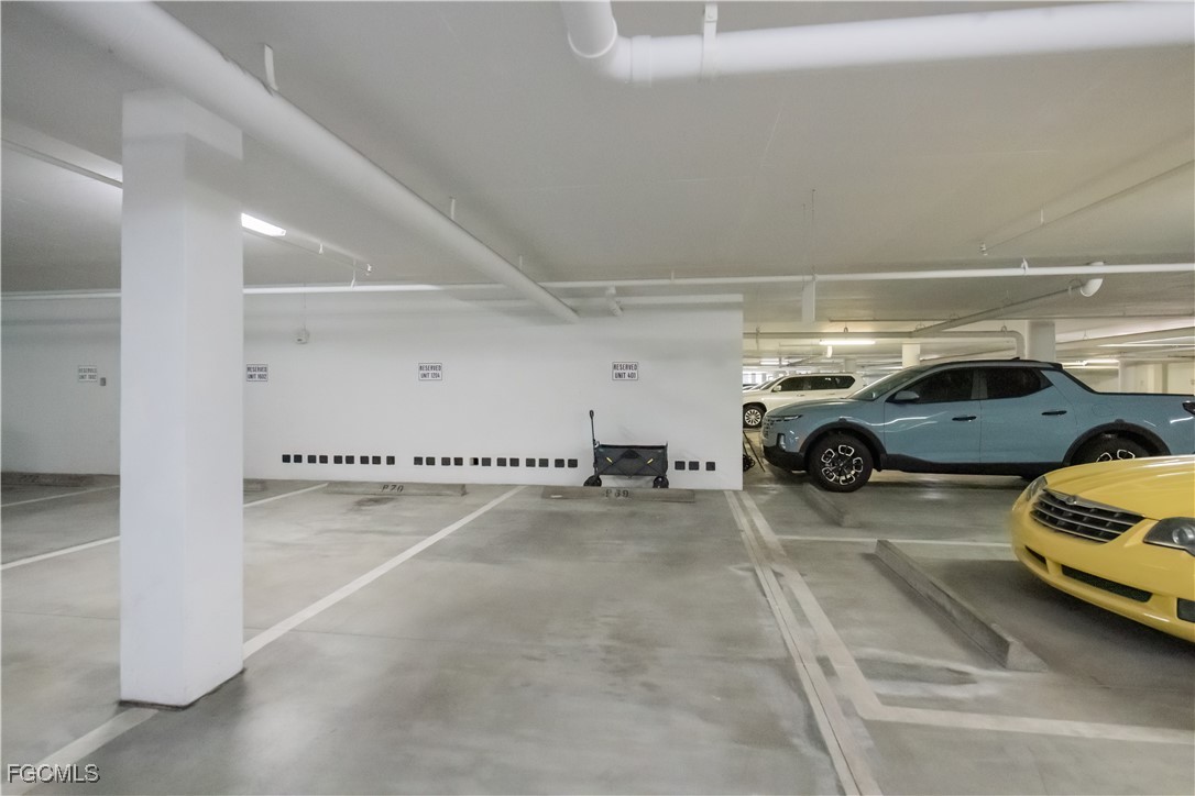 ALL systems are ‘GO’! This 12th floor condo is ready for you to directly move in. Over the past few years, a/c has been replaced, tankless water heater installed. Kitchen appliances are newer as well. Storm Smart shades add protection in addition to the impact glass. This condo-home is turn-key furnished, with a few personal art exceptions, You can move right in & start living the resort life-style you have desired. A typical day will include a secured elevator taking you up & opening into your private foyer. Double doors lead you into a spacious, open great room with floor to ceiling sliders. The view beyond is a showcase of nature at its best-a 25-acre crystal clear lake, 700 acres of preservation land that is not only beautiful but offers protection, the bay & Gulf. You can see from the north end of FMB to the east end of Sanibel. Night or day, you can witness the historic lighthouse rising above the horizon. Watch the Key West Express, pirate ship and fishing boats leave the bay for the open waters of the Gulf. Sunrises & sunsets will be painted in the sky. Native birds roost in the trees of the preserve. You will actually see & hear fish jump in the lake. All of these scenes can be enjoyed from your lanai, great room, kitchen & primary bedroom. The lanai is screened & can be used for al fresco entertaining or day-to-day living. The kitchen is centralized so the family chef can interact with guests while creating a delicious meal served with a water view. White cabinets, granite counters & SS appliances create an enjoyable & functional space for meal prep. A walk-in pantry adds to the already generous cabinet storage. The primary in-suite is private, located opposite the guest bedrooms. The owners retreat has access to the lanai, a large window framing the same sparkling water views & 2 walk-in closets. The in-suite bathroom has a large walk-in shower, separate soaking tub, 2 individual sinks & commode closet. Your overnight guests will enjoy the privacy of 2 guest bedrooms & bathroom. 2 end parking spaces on the second garage level & de-humidified storage space convey. You may never want to leave! But, if you do, there is plenty to do & enjoy. A 6000’ completely renovated clubhouse encompasses a fitness center, yoga studio, billiard/poker room, gathering room, dining area, kitchen, media/meeting room, screened lanai as well as covered open outdoor dining space. The resort style, salt-water pool & spa sit on the lake’s edge. A 1-mile walking /running shell path surrounds the lake. Canoes, kayaks & paddle boat are available for use on the lake. Bocchi ball, soon to be refurbished tennis & Pickleball courts are available for your use. A special park has been established for your furry family members. Owners may have 2 pets of any size. Outside the gates you can easily walk to a beach, restaurants, shopping, grocery or bike to FMB & Sanibel. BONUS - An a/c storage unit can be purchased for an additional cost.