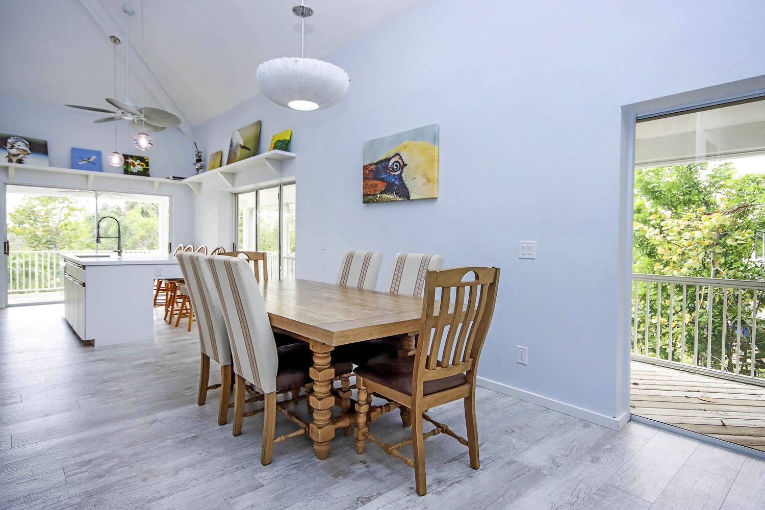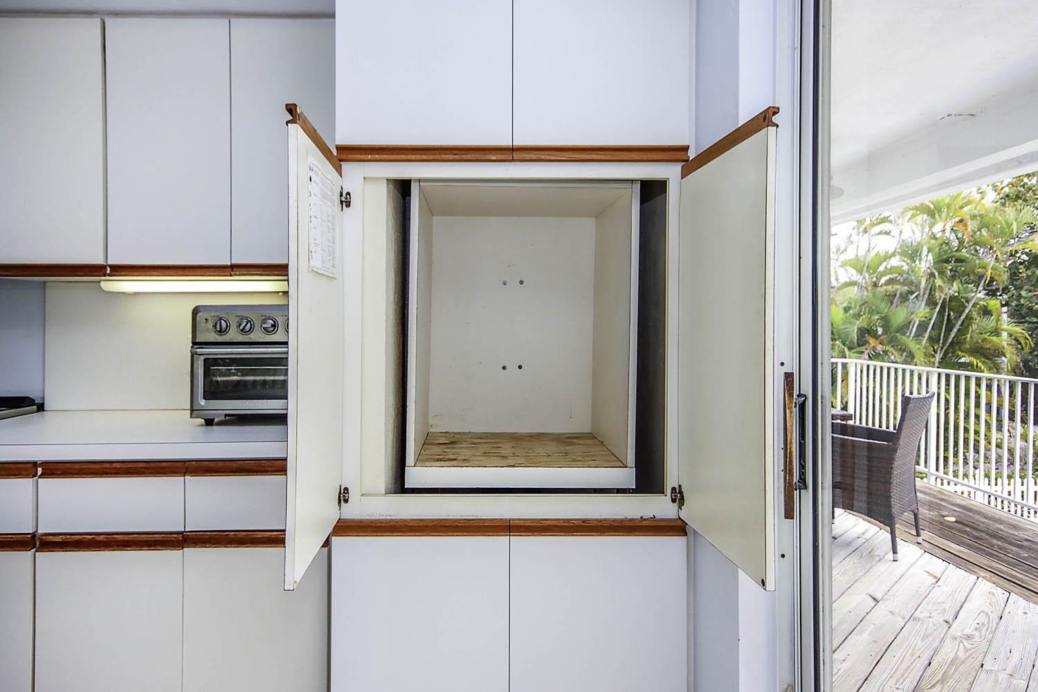 Imagine living in a tropical forest tree house! This elevated beach home boasts decking from every room. Open the pocket sliders, breathe in the warm, balmy breezes and feel yourself relax. Every room is filled with light! The living area features a vaulted ceiling and the efficient kitchen has newer stainless-steel appliances, a dumb waiter, and an island/breakfast bar.
