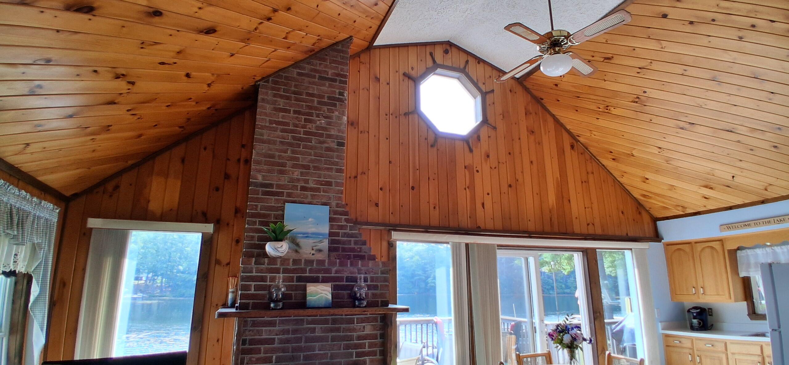 Year-Round home on Lower MOUSAM LAKE with rare sought- after boat house. Incredible lake views in a no-wake zone with aluminum dock. Lovingly maintained by the same family for over 40 years. Your new adventure and memories await in this bright and happy year-round home. Cozy wood burning floor to ceiling fireplace. A loft area with master bedroom, includes a sweet reading nook with water views.