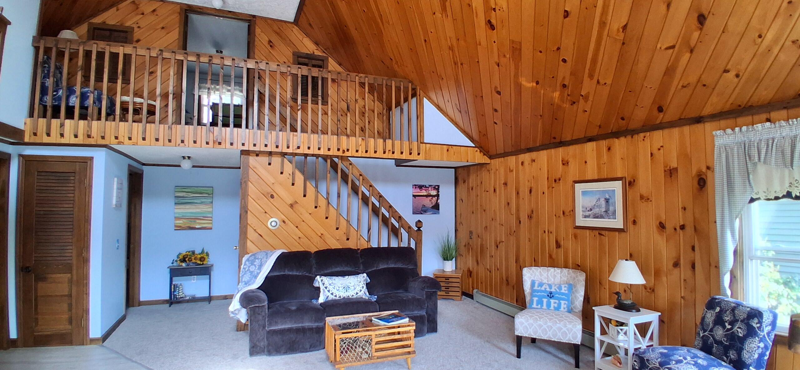 Year-Round home on Lower MOUSAM LAKE with rare sought- after boat house. Incredible lake views in a no-wake zone with aluminum dock. Lovingly maintained by the same family for over 40 years. Your new adventure and memories await in this bright and happy year-round home. Cozy wood burning floor to ceiling fireplace. A loft area with master bedroom, includes a sweet reading nook with water views. Vaulted ceiling with ceiling fans and a wall of windows. Wrap around large deck with second massive deck over boathouse. Lower-level patio with plenty of room for guest. 3 spacious bedrooms, with full finished and heated walkout basement along with a utility room and a generator hook up. Plenty of storage in the large shed, and ample parking at driveway and more at the top of the driveway. Newer oil furnace (2020) with 2 oil tanks, replacement windows (, (2019) and vinyl flooring in kitchen and bath and new carpet in living room. (2025) Home is being sold fully furnished, along with 3 kayaks and lake floats. (except for a few personal items Boat house and shed being sold as is. Come take a look at this amazing property and be in for the summer season! Square footage is approximate. Open House Saturday and Sunday April 25th and 26th 11:00-1:00