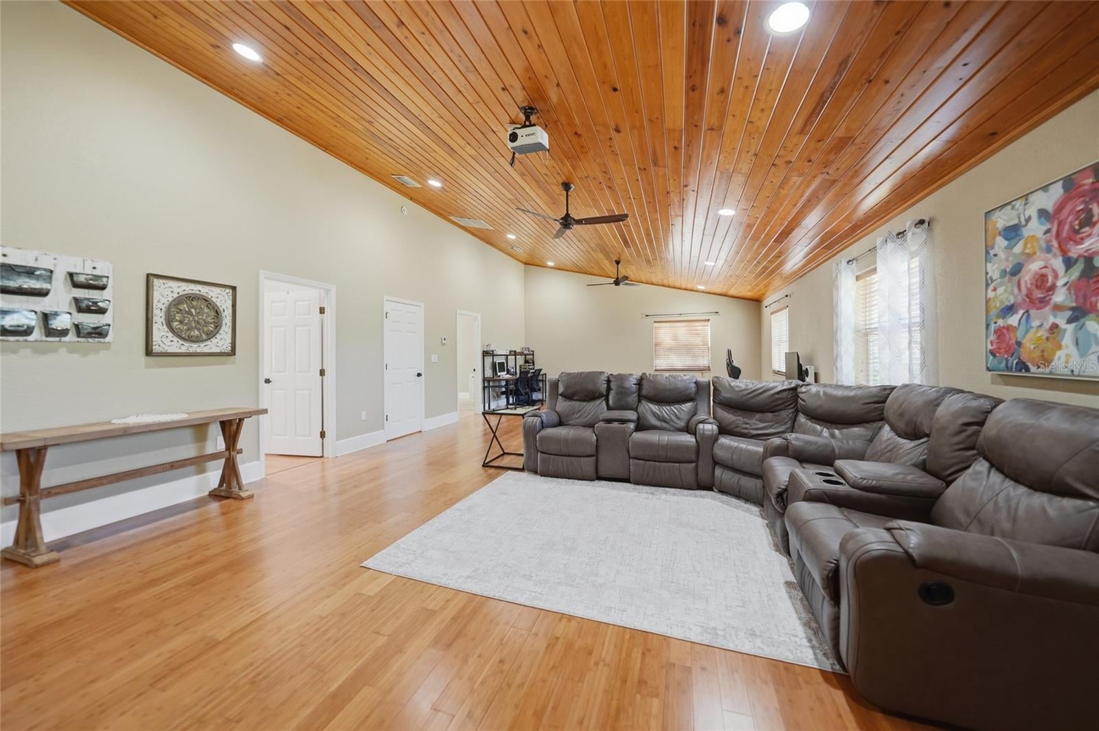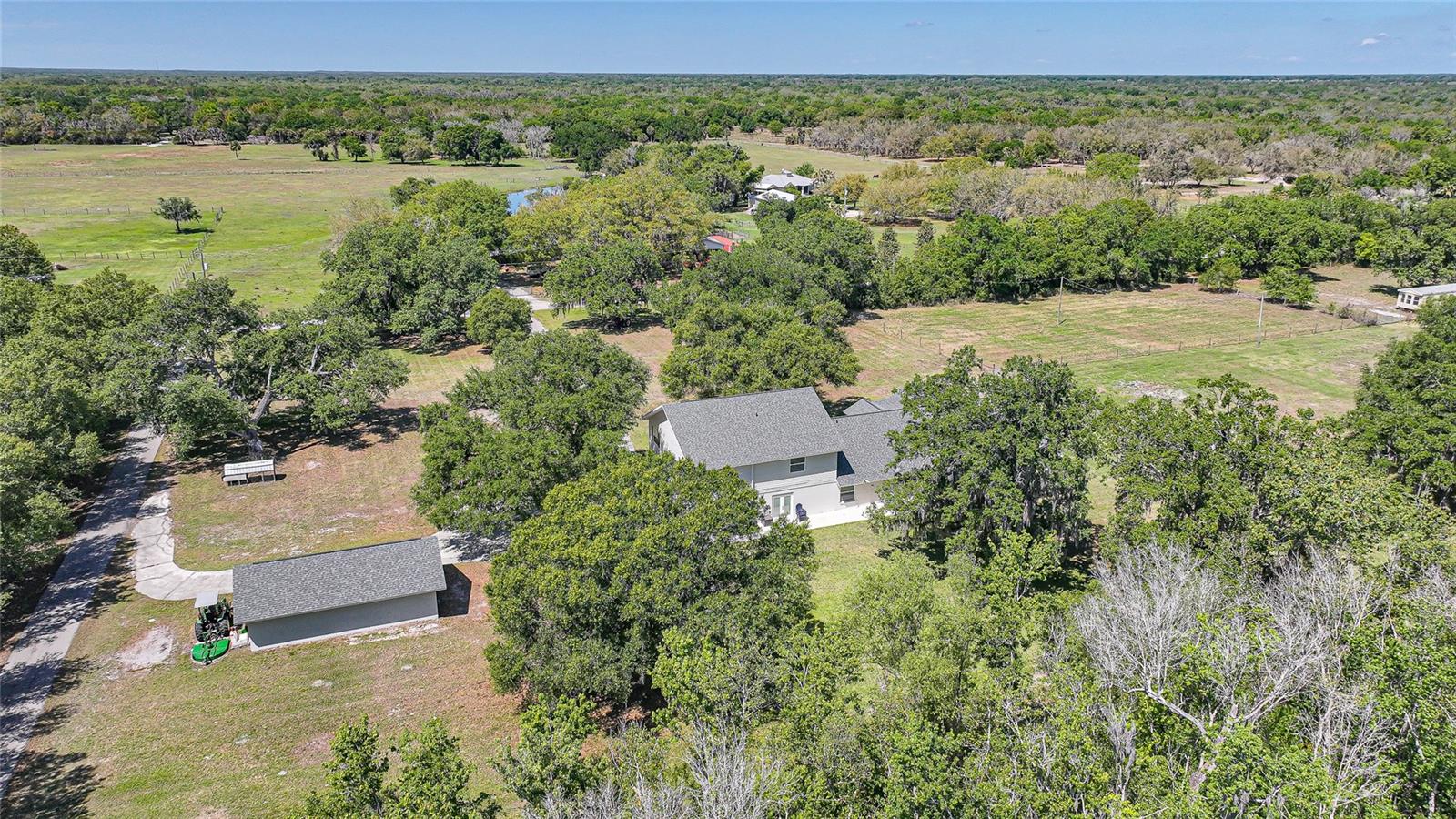 Welcome to your private country estate, perfectly situated on 12.57 acres of picturesque land designed for both luxury living and functionality. As you arrive, a long driveway leads you to this impressive two-story home offering 4,730 square feet under air and over 6,400 total square feet. A screened and covered front entry welcomes you in through grand double doors, setting the tone for the elegance found throughout. Inside, youll find a spacious open floor plan featuring luxury plank tile flooring, soaring ceilings with beautiful wood accents, and an abundance of natural light pouring in through French doors that showcase peaceful views of the backyard. The living area is centered around a striking wood-burning fireplace with custom accent shelving, creating a warm and inviting focal point for gathering and entertaining. The bakers kitchen is truly the heart of the home, designed with both style and function in mind. A massive 16-foot island provides seating for eight, complemented by extensive cabinetry with all lower cabinets featuring convenient pull-outs or drawers. Enjoy ample counter space for cooking and baking, black stainless steel appliances, and an oversized pantry complete with pull-out drawers for maximum organization. The primary suite offers a luxurious retreat with tall ceilings, French doors, and a thoughtfully designed en suite bathroom featuring dual sinks and a walk-in shower. The impressive 26-foot-long walk-in closet with built-ins provides exceptional storage. A guest bedroom offers the flexibility of a second primary suite with its own private bathroom and walk-in closet, while all additional bedrooms are generously sized with walk-in or built-in closets. A dedicated office space includes dual built-in desks, storage, and filing cabinetsperfect for working from home. The well-appointed laundry room offers extensive cabinetry, counter space, a double bowl mop sink, and the convenience of an additional full bathroom. Upstairs, youll find additional bedrooms sharing a bathroom along with a large living or theater area ideal for entertaining or relaxing. The exterior of the property is just as impressive, featuring a four-car attached garage along with a detached two-car garage and workshop. The land is thoughtfully laid out with cross fenced pastures surrounding a large pond, making it ideal for animals or agricultural use. Additional features include an artisan well, an 1,850 square foot concrete pad for storage, and a second power pole with separate service and RV hookup with additional septic tank. This home is loaded with upgrades, including two recently replaced HVAC units, a whole-home reverse osmosis system for exceptional water quality, and beautifully updated bathrooms throughout. Whether youre looking for space to spread out, bring animals, or simply enjoy peaceful country living, this extraordinary property offers it all. Schedule your private showing today!