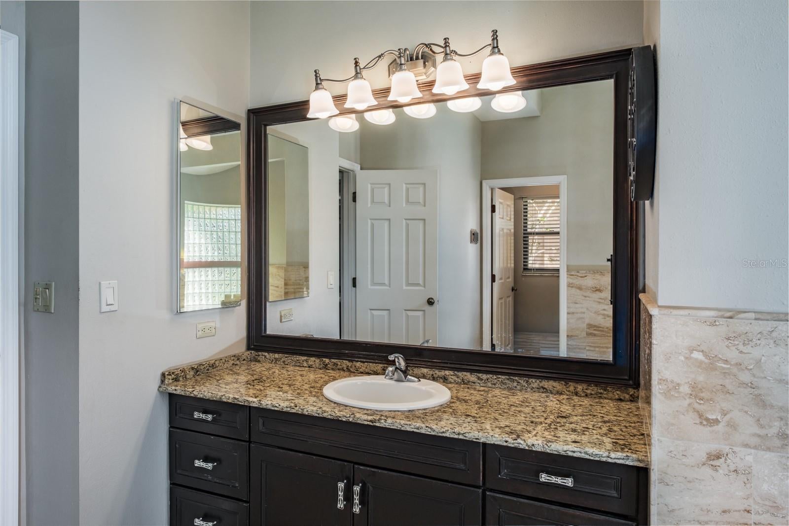 Simply sensational in prestigious Deerpath of East Lake Woodlands!! Enter through double leaded glass entry doors to this spectacular, sprawling executive residence! 4,246 sq. ft. of exceptionally well-planned design and custom built to precise detail. Soaring ceilings with four bedrooms, plus a study that could be a 5th bedroom and 3.5 baths elegantly designed! Privacy prevails on this gorgeous, wooded home site surrounded by lush landscaping. Enter the grand foyer and take in the refined view of three sets of French doors with lovely transom windows looking out on the lanai and pool area. The formal living and dining areas highlight the gorgeous architecture of the home and the sunken living room is beautifully designed with plant shelves and lighted niches! The 5th bedroom is currently used as an office. It has its own set of French doors and boasts custom built-in desk and shelving with granite counters and desktop. A convenient half bath completes the entry area and leads to the magnificent kitchen! Wow! An entertainers dream! Ingenious design with prep space and cabinetry galore! Designer quartz counters are stunning! Large center island as well as a breakfast bar and butlers pantry with beverage fridge in addition to a generous sized eat-in breakfast room. Stainless appliances include a 4-door refrigerator. Huge walk-in pantry! Lovely bead board accents with chair railing, gorgeous pendant lightingdesigner lighting throughout the home! The kitchen overlooks the large family room centered by a travertine faced wood burning fireplace and walk-in bar with sink. The primary retreat is nothing short of fabulous! Large sitting area, romantic 2-way wood burning fireplace and totally updated spa-like ensuite bath with massive counter space, separate sink areas, whirlpool tub, walk in shower with designer tile work, water closet, Venetian finish on walls and a massive walk-in closet. Secondary bedrooms are vast and have large wall closets or walk-in closet space! The shared bath space is creatively redesigned with fashionable updates and substantial counter space accented by double sinks with splendid oiled bronze hardware. And the additional full bath/pool bath boasts the most recent upgrades with the same designer granite counters and a beautifully tiled, glass enclosed walk-in shower. All bathrooms are stylishly upgraded. Entertaining and family space is extended outdoors to the grand lanai and pool area! Gorgeous pool with spillover spa and vaulted screen enclosure looks out on a lushly landscaped and private wooded paradise! The convenient pool bath has been recently, renovated with designer touches. And a poolside kitchen area with sink completes the setting and allows for ultimate entertaining! Truly a must see. Endless upgrades and details! All found within the gates of the fabulous East Lake Woodlands Country Club community A rated schools, close to everything, medical, shopping, parks, restaurants, TIA and gorgeous Gulf beaches! An extraordinary find!