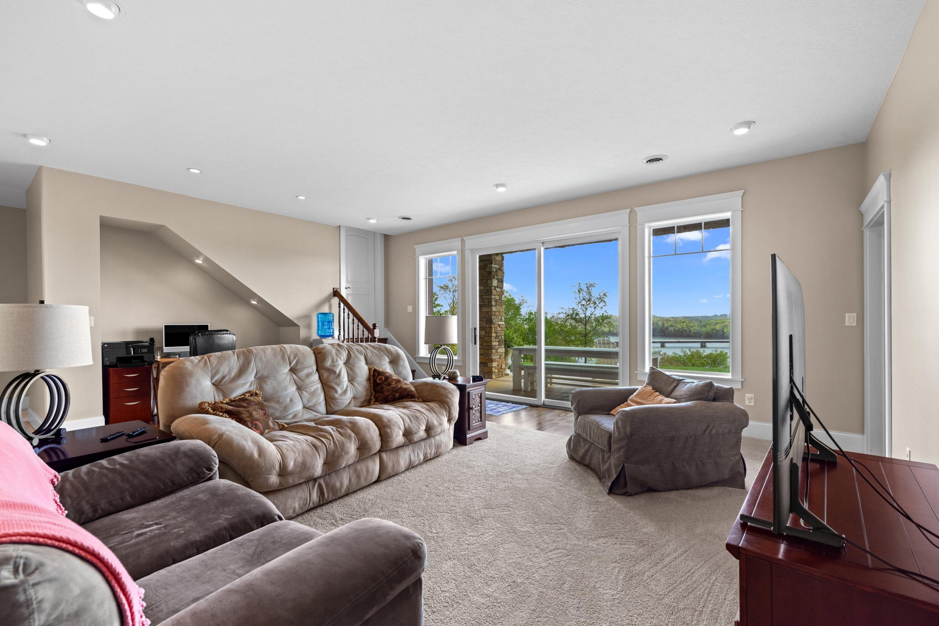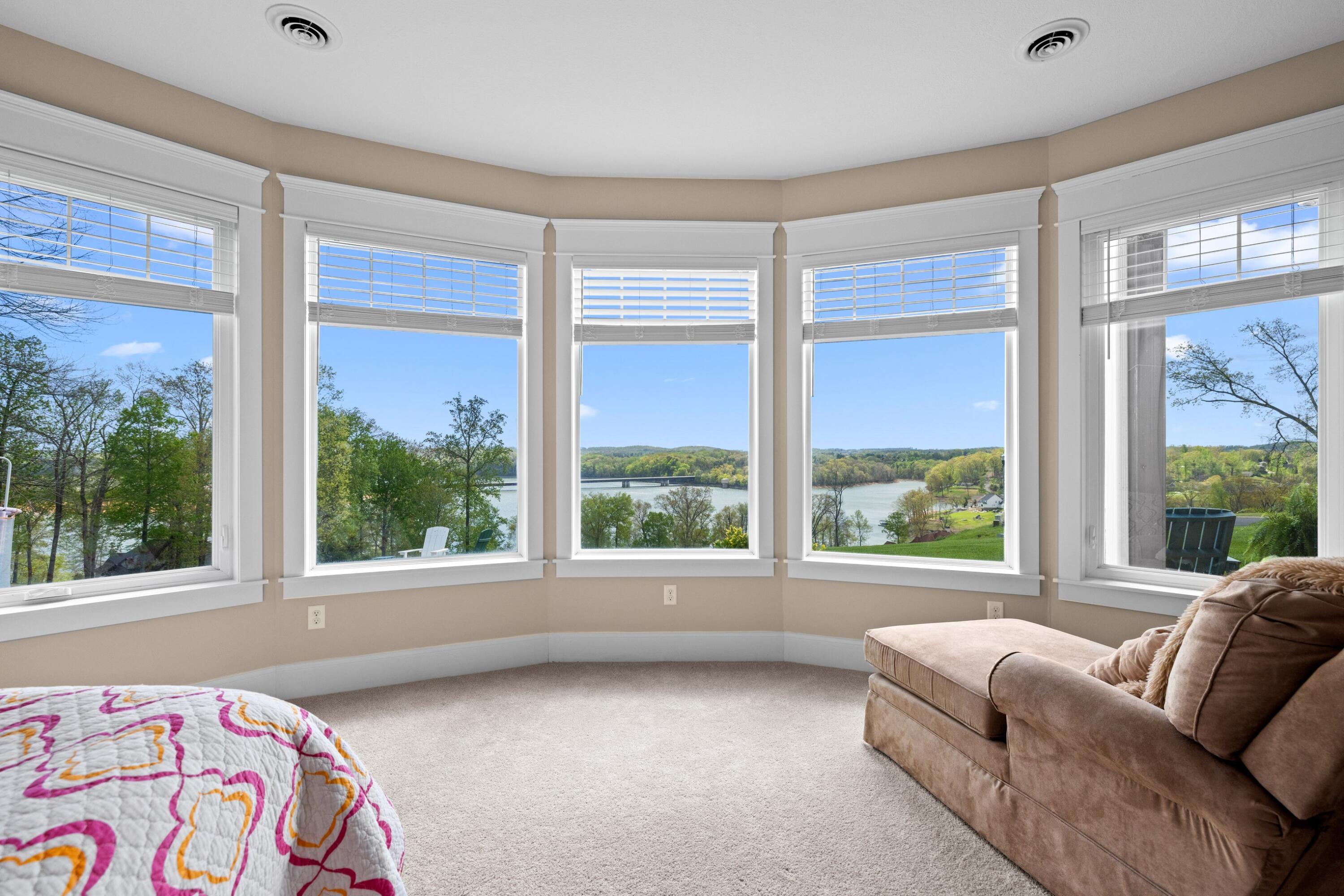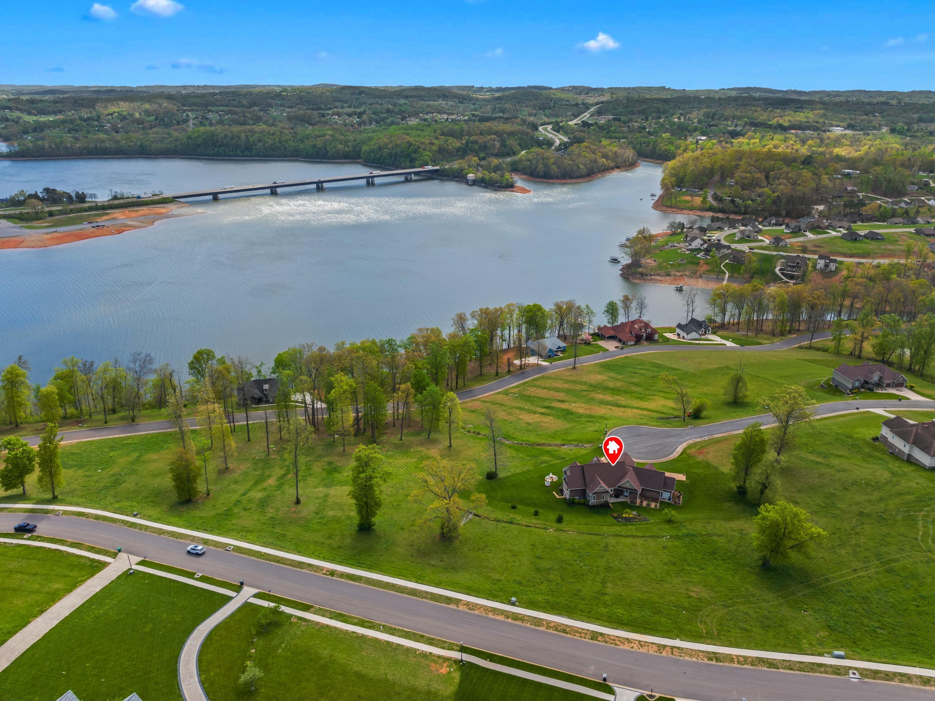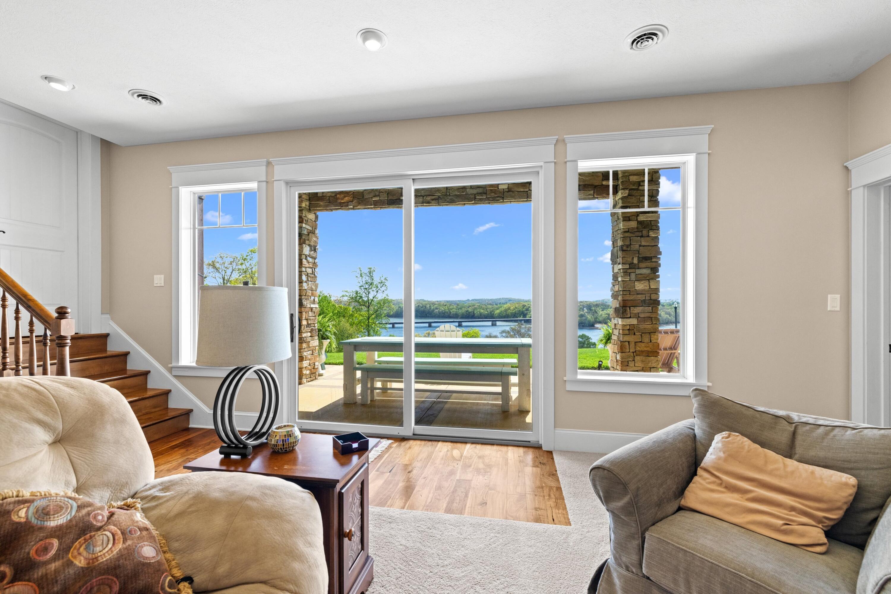 Excellent custom built home with year round lakefront water. 4 bedrooms and 4.5 baths with primary en-suite on main level along with an office, vaulted ceilings in living room with beautiful stack stone gas fireplace and built in bookshelves on each side. The gourmet kitchen offers a generous amount of cabinets with granite countertops, cook top and built in oven and microwave, pot filler and stainless appliances. The island offers additional cabinets/drawers and counter space. Enjoy meals in the breakfast nook or a family meal/guests in the formal dining room. The primary en-suite boasts tray ceilings, double vanities, soaker tub and step in tile shower. Large walk in closet. Enjoy access onto the covered back deck overlooking the pool and lake. Parking available on main level. Continue upstairs to view 3 additional bedrooms, 2 full baths and a bonus room with endless possibilities. During lake season, you will enjoy the additional kitchen and living space downstairs and especially the outdoor grilling area. A full bath and additional storage space complete the basement. A brand new HVAC system has been installed downstairs. Whether you are out on the lake or enjoying the private swimming pool with its new liner, this home offers all you need for a fun filled summer. Located on one of the biggest lots in the subdivision, the mountain and lake views are breathtaking. You also have access to the the subdivision amenities which are included in your annual HOA fees of 275. Conveniently located to schools, medical and shopping and less than an hour to the Tri Cities, Pigeon Forge/Gatlinburg and Knoxville. The private boat dock is negotiable. Playset and trampoline do not convey.