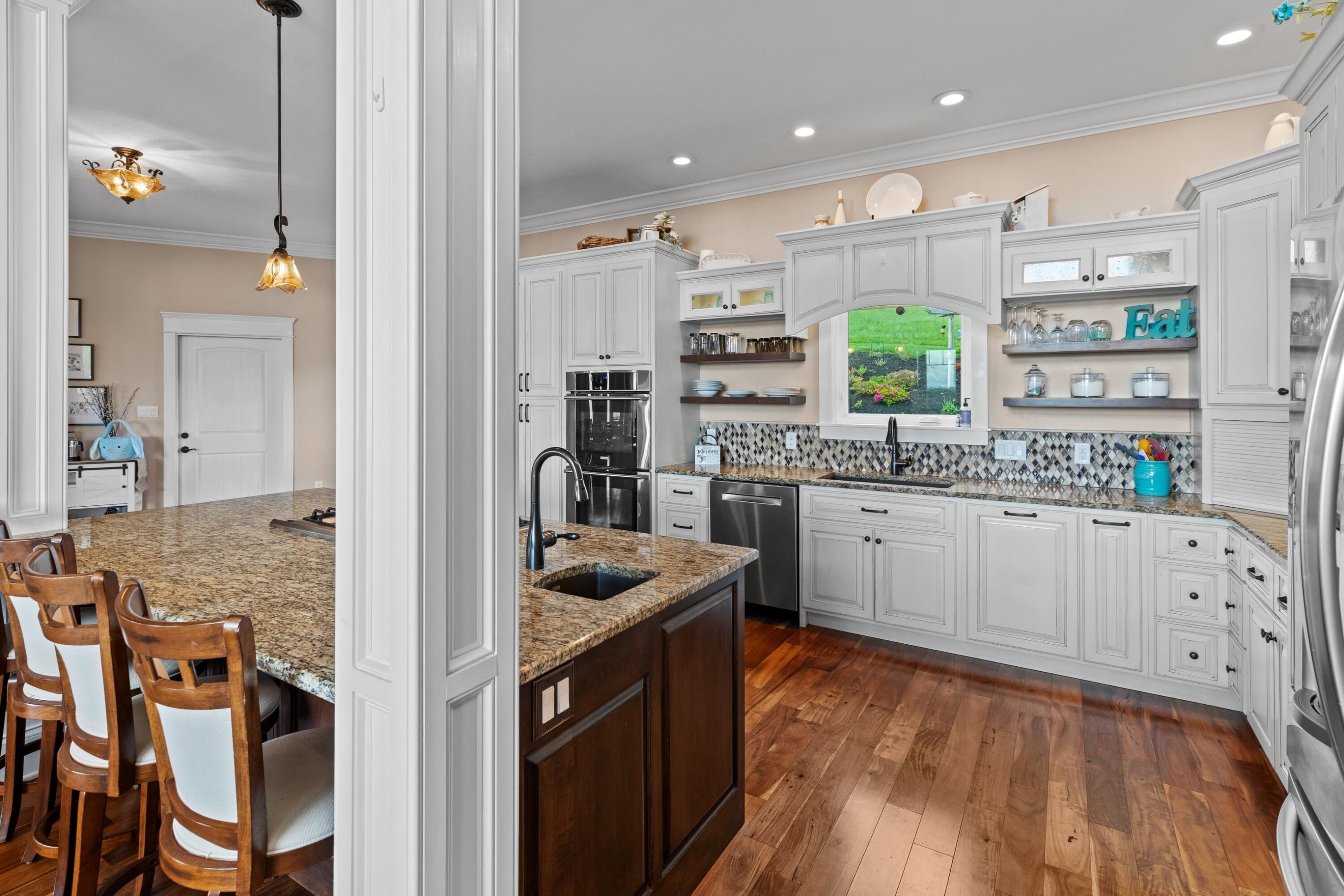 Beautifully maintained home on over a quarter of an acre in Bridgewater Pointe. Brick, stone, shake siding exterior with metal roof. Covered front porch for rocking and covered back patio for relaxing and entertaining. Primary en-suite on main with spacious living room, kitchen and dining area. Granite countertops in kitchen and baths. Island in kitchen and stainless appliances. A half bath and laundry with main level garage complete the main level. Continue upstairs to 2 additional generous bedrooms with another bedroom or bonus room. Double sink vanity in bath. Plenty of storage. Access to all amenities of subdivision in the low annual HOA fee of 275.00. Conveniently located to medical, schools and shopping and less than an hour from the Tri Cities, Pigeon Forge/Gatlinburg and Knoxville. All information deemed reliable but not guaranteed. Buyer to verify all information to their satisfaction.