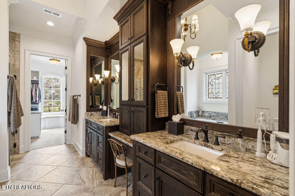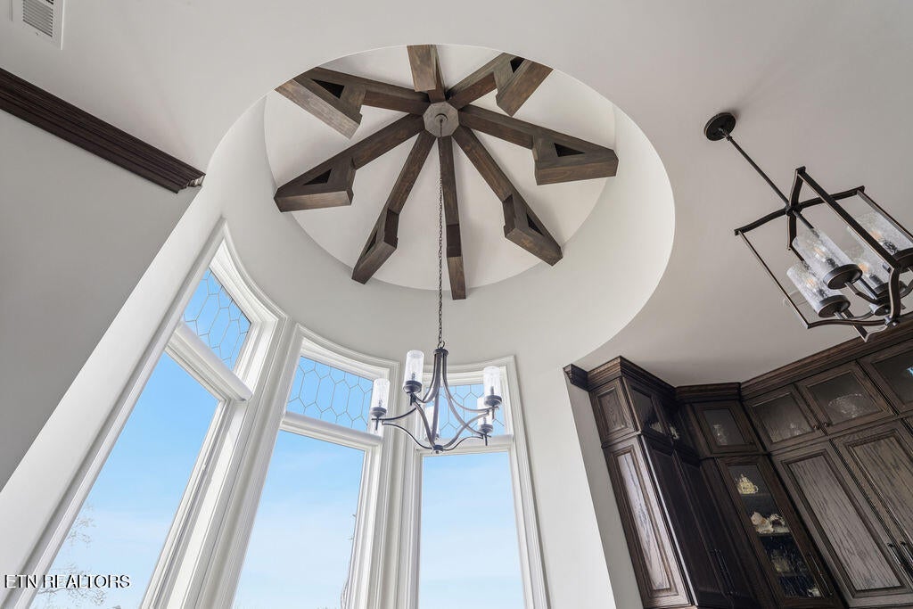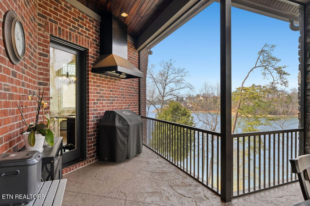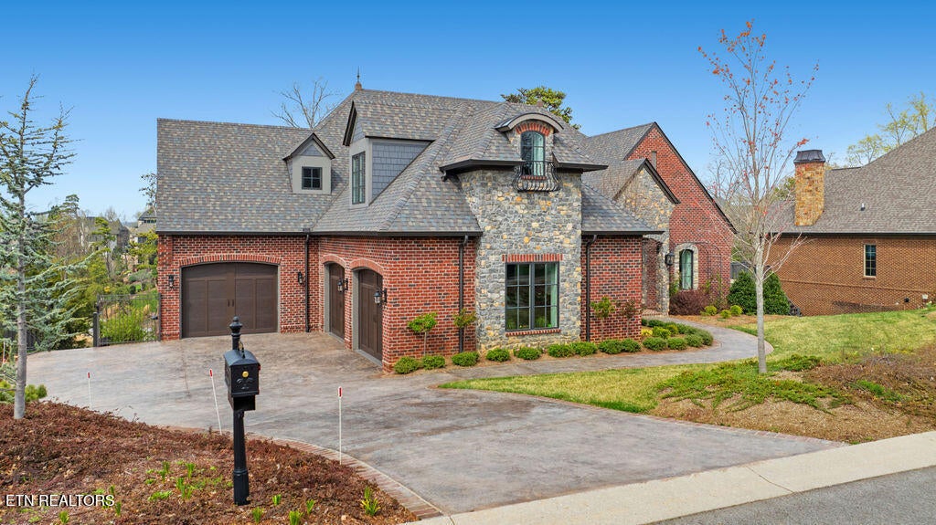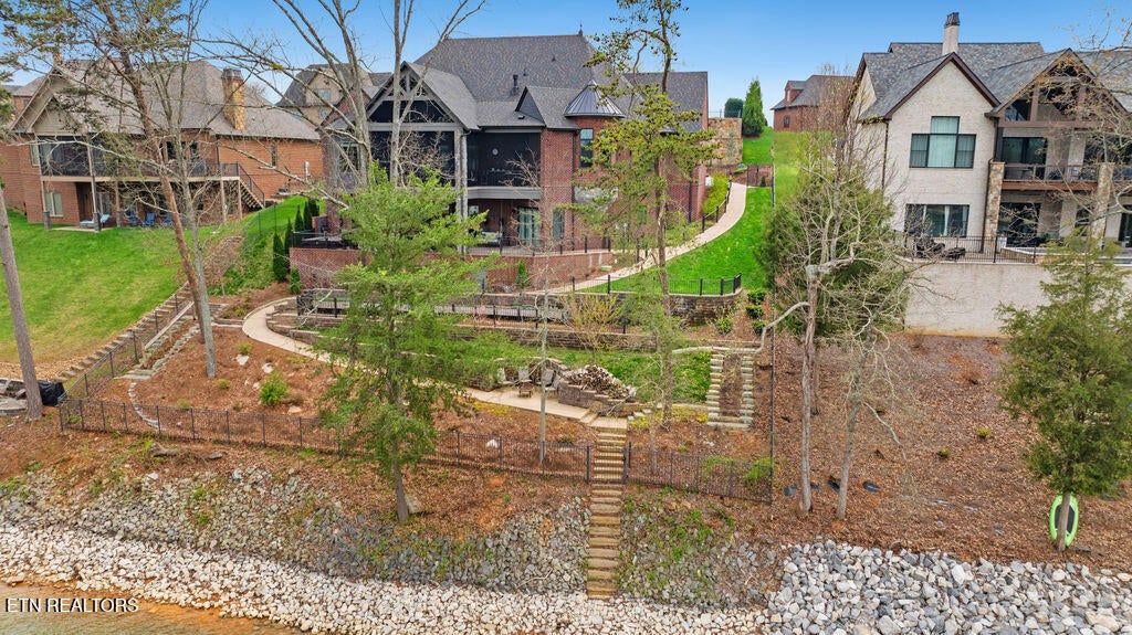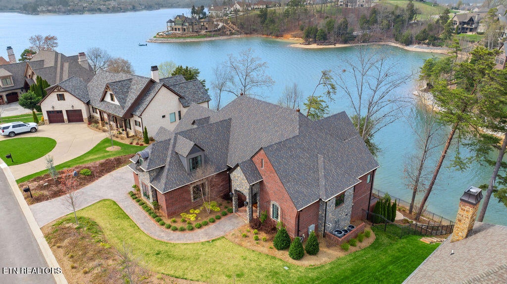 Perfect for the Discerning Buyer. This Exquisite Custom-Built Home located in a beautiful Private Cove has Exceptional Water Views and Lake Access. (LAKE BOUY). Curb Appeal is perfect featuring Stained and Stamped Concrete Driveway and Sidewalk. The contrast between Brick Walls and Franklin Limestone is incredible. The Arched Entryway Welcomes every Guest thru the Beautiful Composite Almaria Style Double Doors with Glacier Glass. Dinning Rm to the left has Leaded Glass Transoms and Recessed Ceiling with Mood Lighting. Wine Bar Drink Center has Wine Fridge, Bar Sink and Custom Lighted Cabinetry. Great Rm has Soaring Vaulted Ceiling with Decorative Beams, Recessed TV Nook and Floating Media Console, Reading Corner with Built-in Bookshelves and Stone Double Sided Fireplace. Then 8 French Doors and Floor to Ceiling Windows lead to the Large Screened Porch with Stamped Concrete Floor. We invented RELAXATION! Grille area has Built-in Exhaust Hood. The Master Chefs Kitchen has Stunning Custom Cabinetry in Walnut-Stained Red Oak. SS Appliances include Double Ovens, Signature 48 Gas Cooktop with Sous Vide, and Induction, Dishwasher and Drawer Microwave, Side by Side Sub Zero Freezer /Fridge. Pot Filler over Range, Large Center Island is Opal with Chocolate Glaze, Anthracite Sink, Double Jaguar Granite with Ogee Edge. Cabinetry Features an Appliance Garage, Glass and Lighted Top Row, Integrated Fridge, Freezer, and Dishwasher. Backsplash is Tumbled Ivory Limestone. Fireplace and TV nook adds warmth. Circular Breakfast Nook has great Lake Views, Built in Bench Seating, Domed and Beamed Ceiling. Large Walk-in Pantry and Spacious Laundry Rm. The Elevator takes you Up to a Studio complete with a Living Rm, Bed Rm, and Full Ba. There you have a Wrapping / Craft Rm and Attic Storage Galore. Take the Elevator to the Lower level where you have 2 Gorgeous Ensuite Bedrooms, an Amazing Tavern with Gold Tin-type Coffered Ceiling a Fireplace, a Full Bar, Fridge, Dishwasher, Disposal and Prep Sink. A Fabulous Theater Rm and London Subway Tiled Half Bath make it complete. Lower Covered Patio has Stamped Concrete Floor and lots of Outdoor Space, Hot Tub and exits to the Tiered Garden. A Tool Storage Rm for Lawn & Garden Tools keeps Garage clean. 3 Car Garage with Epoxy Floors will accommodate an XL Truck. Wi-Fi Repeaters throughout the house. Stereo Speakers inside and outside. Too many Extras to mention. Come see this amazing home today.