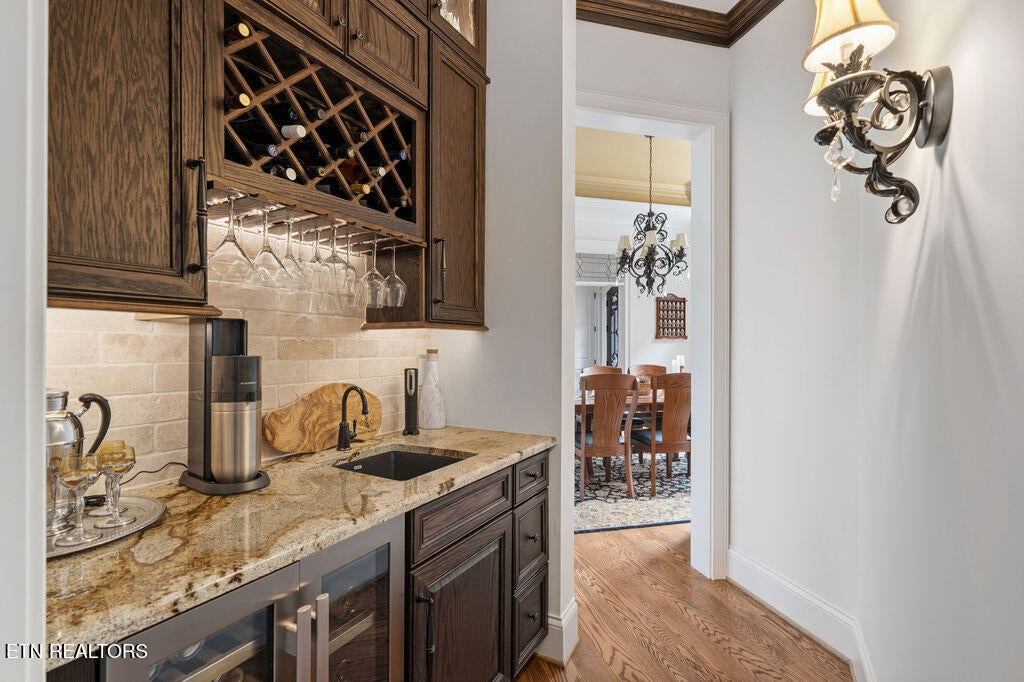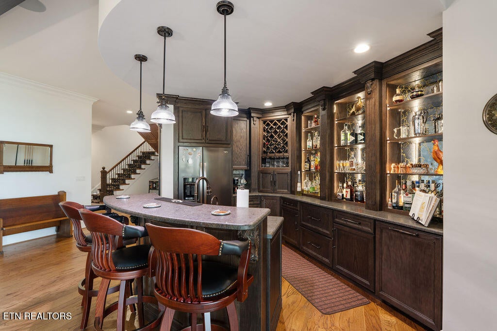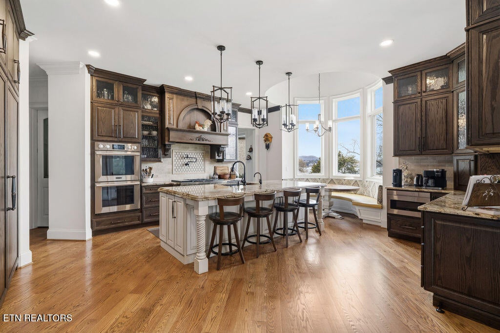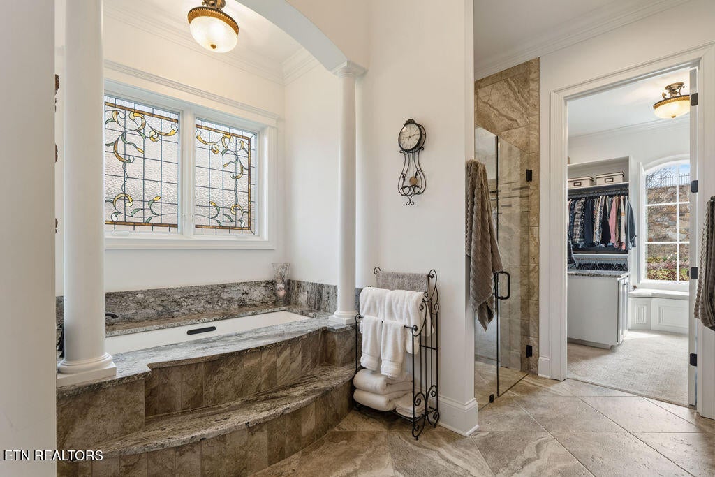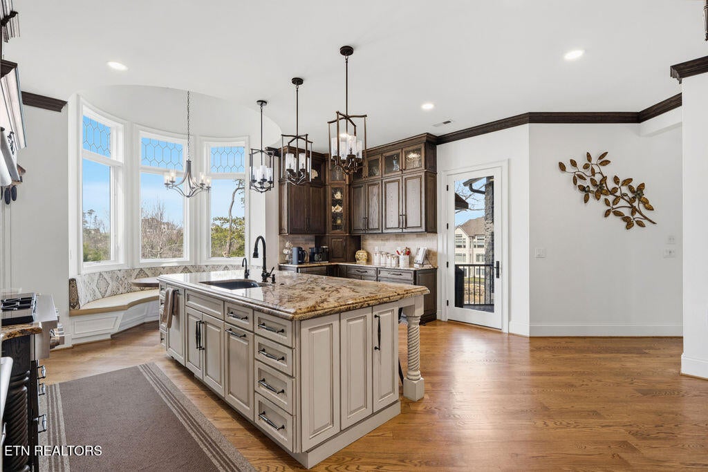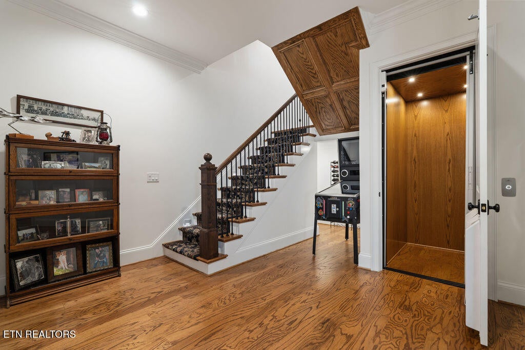 Perfect for the Discerning Buyer. This Exquisite Custom-Built Home located in a beautiful Private Cove has Exceptional Water Views and Lake Access. (LAKE BOUY). Curb Appeal is perfect featuring Stained and Stamped Concrete Driveway and Sidewalk. The contrast between Brick Walls and Franklin Limestone is incredible. The Arched Entryway Welcomes every Guest thru the Beautiful Composite Almaria Style Double Doors with Glacier Glass. Dinning Rm to the left has Leaded Glass Transoms and Recessed Ceiling with Mood Lighting. Wine Bar Drink Center has Wine Fridge, Bar Sink and Custom Lighted Cabinetry. Great Rm has Soaring Vaulted Ceiling with Decorative Beams, Recessed TV Nook and Floating Media Console, Reading Corner with Built-in Bookshelves and Stone Double Sided Fireplace. Then 8 French Doors and Floor to Ceiling Windows lead to the Large Screened Porch with Stamped Concrete Floor. We invented RELAXATION! Grille area has Built-in Exhaust Hood. The Master Chefs Kitchen has Stunning Custom Cabinetry in Walnut-Stained Red Oak. SS Appliances include Double Ovens, Signature 48 Gas Cooktop with Sous Vide, and Induction, Dishwasher and Drawer Microwave, Side by Side Sub Zero Freezer /Fridge. Pot Filler over Range, Large Center Island is Opal with Chocolate Glaze, Anthracite Sink, Double Jaguar Granite with Ogee Edge. Cabinetry Features an Appliance Garage, Glass and Lighted Top Row, Integrated Fridge, Freezer, and Dishwasher. Backsplash is Tumbled Ivory Limestone. Fireplace and TV nook adds warmth. Circular Breakfast Nook has great Lake Views, Built in Bench Seating, Domed and Beamed Ceiling. Large Walk-in Pantry and Spacious Laundry Rm. The Elevator takes you Up to a Studio complete with a Living Rm, Bed Rm, and Full Ba. There you have a Wrapping / Craft Rm and Attic Storage Galore. Take the Elevator to the Lower level where you have 2 Gorgeous Ensuite Bedrooms, an Amazing Tavern with Gold Tin-type Coffered Ceiling a Fireplace, a Full Bar, Fridge, Dishwasher, Disposal and Prep Sink. A Fabulous Theater Rm and London Subway Tiled Half Bath make it complete. Lower Covered Patio has Stamped Concrete Floor and lots of Outdoor Space, Hot Tub and exits to the Tiered Garden. A Tool Storage Rm for Lawn & Garden Tools keeps Garage clean. 3 Car Garage with Epoxy Floors will accommodate an XL Truck. Wi-Fi Repeaters throughout the house. Stereo Speakers inside and outside. Too many Extras to mention. Come see this amazing home today.