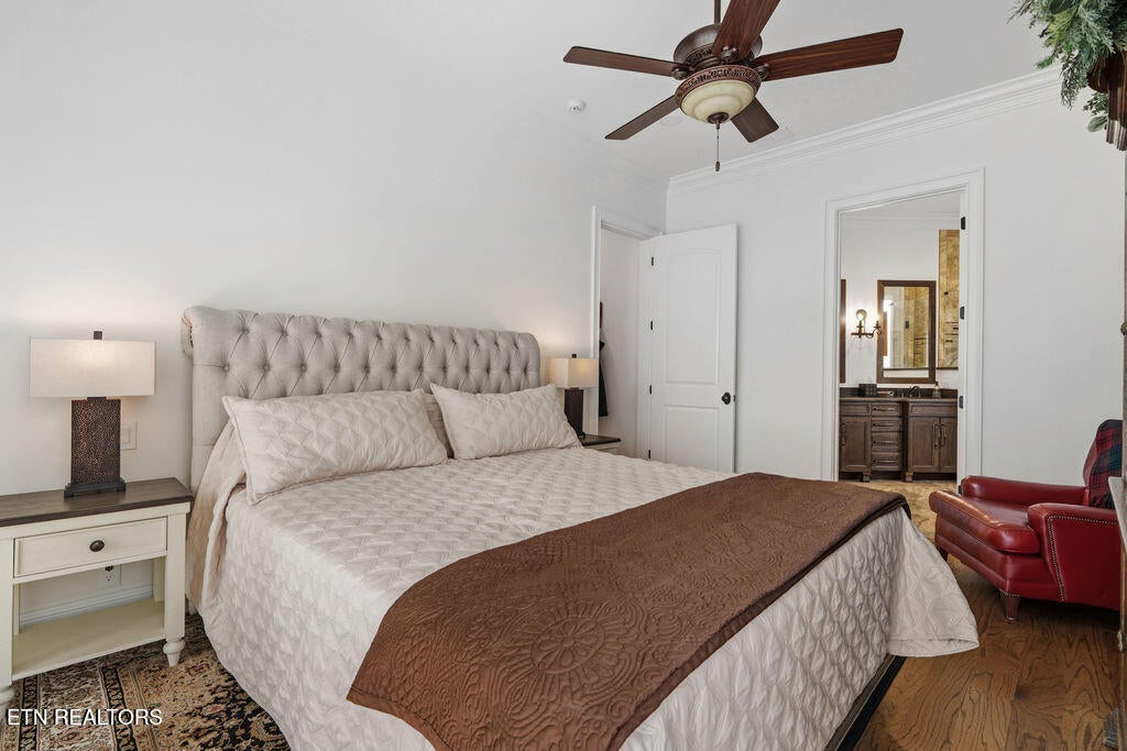 Beautiful Golf Front home, one of a kind has a Grand entry, Park like setting of hardwood trees & winter lake views. Updated home w/ bath for every bedroom, huge, screened porch. LR has 2 stories of windows, hardwood floor and gas log fireplace. Formal dining, hardwood floor, eat-in kitchen has new quartzite counters, plenty of cabinets, new range, tile backsplash. Screened porch is large w/two story of screen, skylights & two fans. Main floor Master has walk-in closet, jetted tub, walk in shower & 2 sink vanity. Up are 2 bedrooms w/ensuite baths. New HVAC, New Water Heater, new gutter guards. Garage is heated w/epoxy floor.