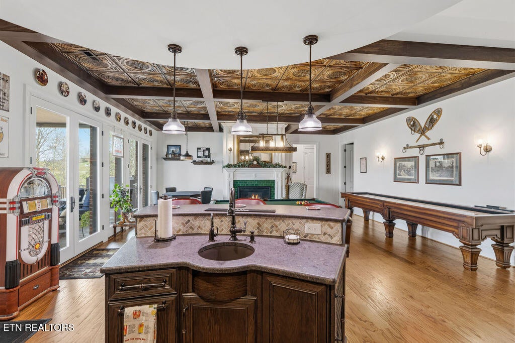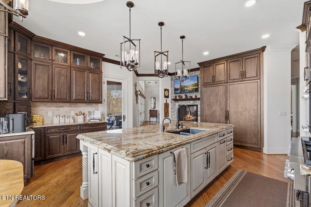 CAPTIVATING VIEWS of Tellico Lake from the Foyer draw you into the spacious Living Room with cathedral ceiling, cozy see-thru fireplace, and wall of windows. This home is located on a quiet cove with deep water. The Kitchen is a chefs dream with plenty of space to cook and entertain guests at the large island. Custom cabinets are Hickory and countertops are granite.