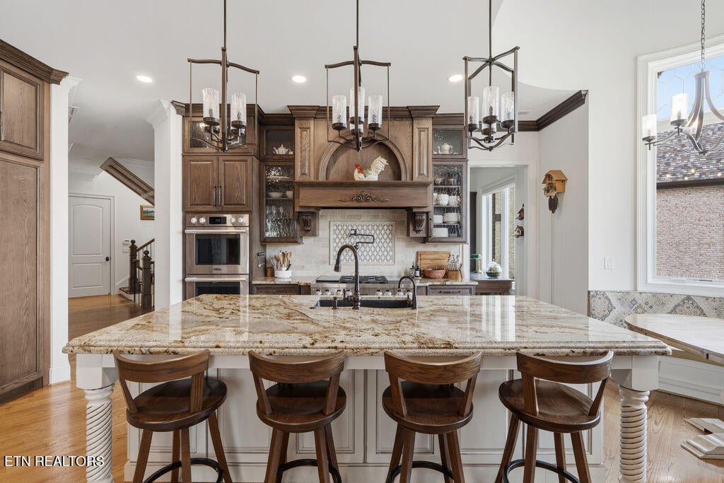 Perfect for the Discerning Buyer. This Exquisite Custom-Built Home located in a beautiful Private Cove has Exceptional Water Views and Lake Access. (LAKE BOUY). Curb Appeal is perfect featuring Stained and Stamped Concrete Driveway and Sidewalk. The contrast between Brick Walls and Franklin Limestone is incredible.