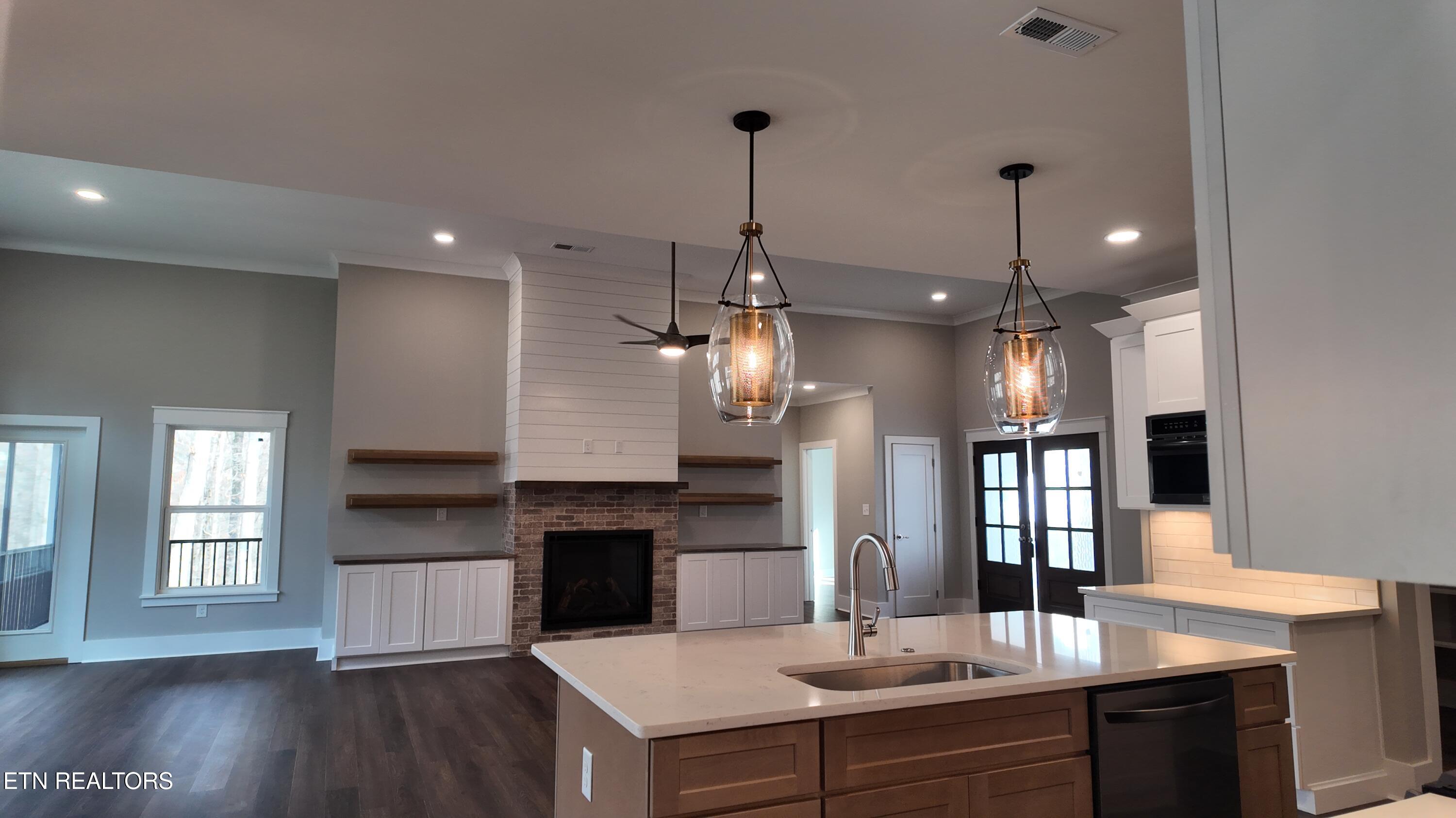Move In Ready-New Construction !!! This stunning all brick 2 story home offers 3900 square feet of thoughtfully designed living space in one of the most desirable locations. The open concept living area features a stunning coffered ceiling with brick fireplace that flows right into a large open island kitchen with tons of cabinets and countertop space.