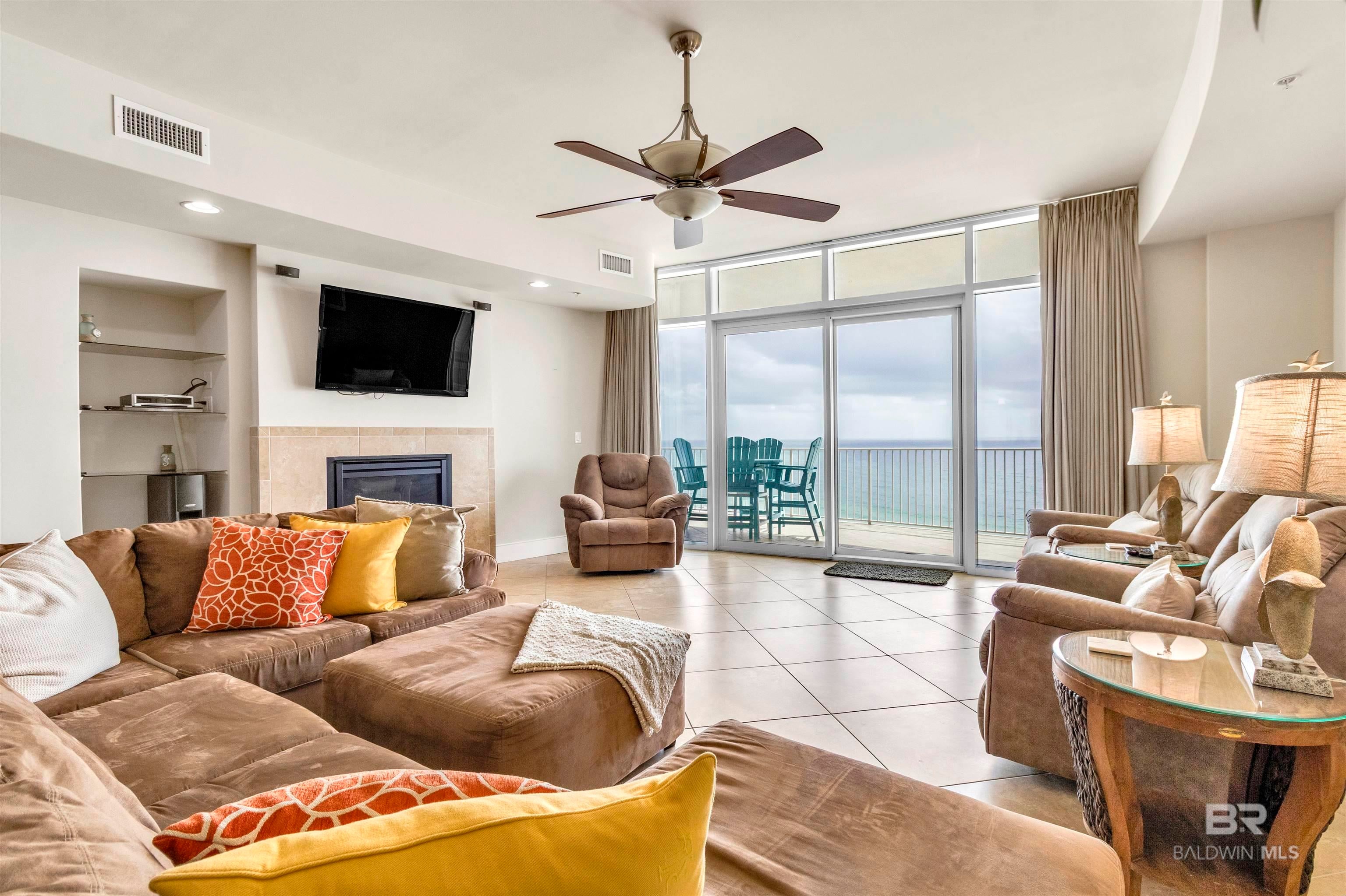 Stunning 26th-floor Gulf-front luxury residence offering 3,504 square feet of beautifully furnished living space and breathtaking panoramic views of the emerald waters and sugar-white sand beaches. This exceptional 4-bedroom, 4.5-bath condo features an expansive private balcony complete with a natural gas grill and private jacuzzi for enjoying unforgettable sunsets and coastal breezes. Inside, elegance and comfort blend seamlessly with 10 ceilings, spacious living areas, tile flooring, and a beautiful living room with gas fireplace and flat-screen TV, all positioned to capture the spectacular Gulf views. The gourmet kitchen is appointed with premium Sub-Zero and Wolf appliances, granite countertops, wine cooler, and ice makergreat for entertaining family and guests. Situated on an impressive 500 feet of pristine Gulf frontage, the resort-style amenities include indoor and outdoor saltwater pools, lazy river, hot tubs, fitness center, sauna and steam rooms, playground, air-conditioned hallways, and four levels of covered parking. A rare opportunity to own a spacious, luxury Gulf-front retreat with world-class amenities and unforgettable views. Buyer to verify all information during due diligence.