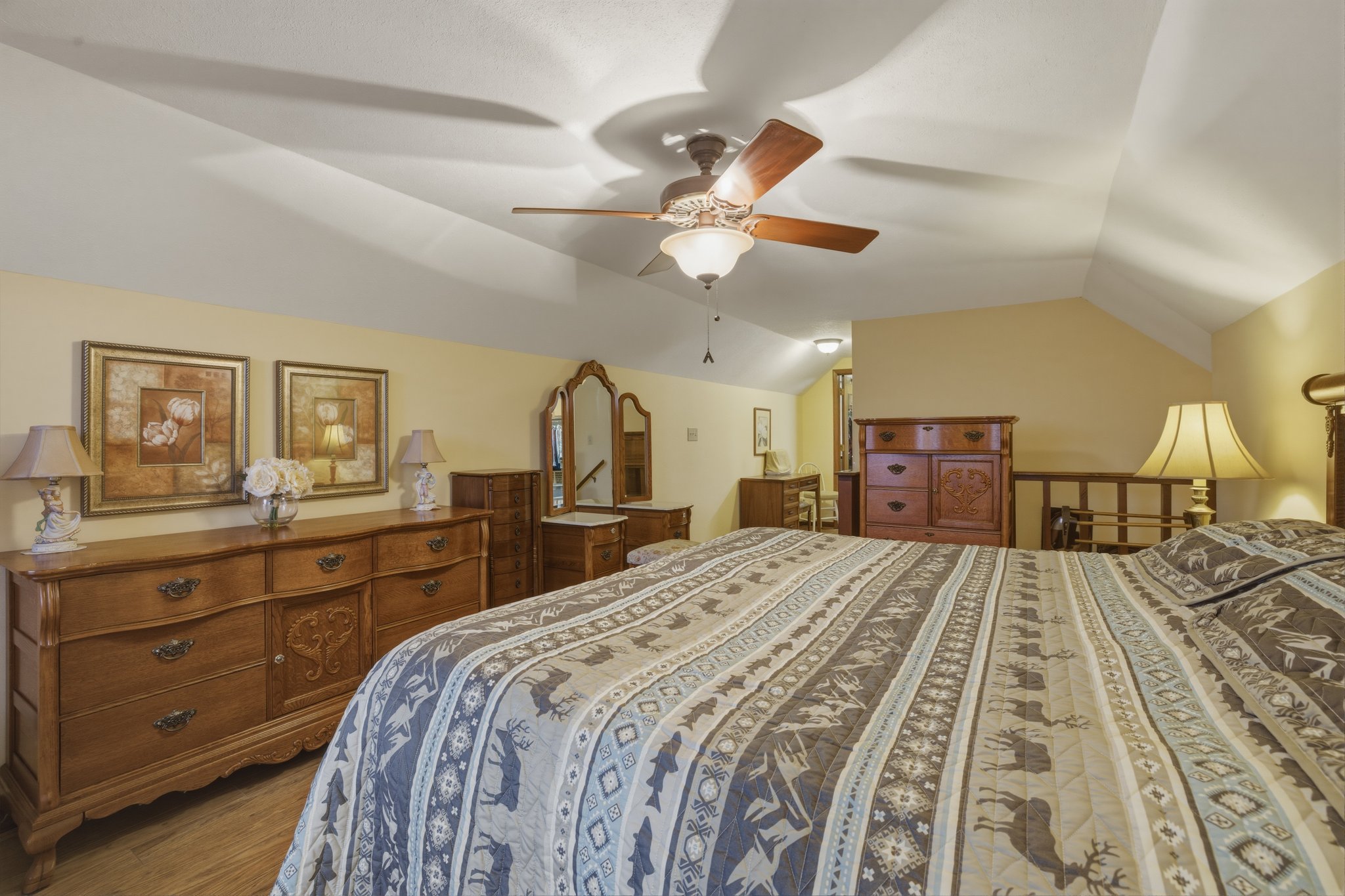 5 Bedrooms, 4 Bathrooms, Sleeps 17, 2964 SF. Enjoy your own private pool at Bear Heaven, 4087! With all new flooring throughout, Bear Heaven is sure to wow you and delight all the cubs in your crew! The MAIN LEVEL provides plenty of gathering space for friends and family with the open living, dining, and spacious kitchen areas. The main level screened porches include a ping pong table and hot tub. This level also includes a master suite. The UPPER LEVEL includes 3 Guest Rooms plus a loft reading area with a sofa that will sleep up to 2 guests. The LOWER LEVEL offers an additional family room with pool table, kitchenette, and sleeper sofa, plus an additional master suite. The private seasonal pool is accessed from stairs on the main or lower level sides of the cabin.