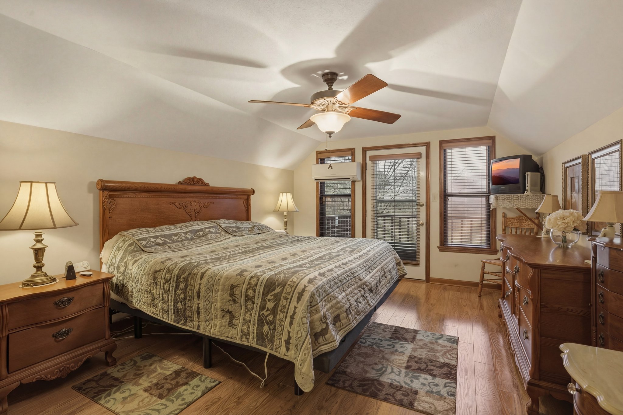Nestled at the foot of Cove Mountain in the heart of Wears Valley ,this spacious home offers 3 bedrooms and 3 bathrooms, including two primary suites-one on the main level and one upstairs. The main-level suite provides direct access to a covered porch, perfect for enjoying the peaceful setting. Inside, youll also find a large sunroom offering additional living space and abundant natural light.