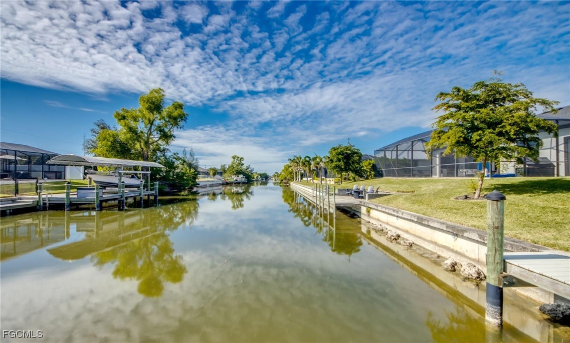 City Water & Sewer in and paid in Full, not in a flood zone, no flood insurance required.Welcome to this stunning new-construction waterfront retreat in beautiful of SW Cape Coral, set along a peaceful freshwater canal with no flood insurance required, this custom 4-bedroom, 3-bath, 2-car garage pool home offers 2,009 sq ft of beautifully designed living space with serene water views and exceptional craftsmanship throughout.Step inside to a bright, open great-room layout highlighted by soaring 12' tray ceilings, 8-foot doors, and a triple-slider that fills the home with natural light and creates seamless indoor-outdoor living. The gourmet island kitchen is a chef's dream, featuring white Shaker all-wood soft-close cabinetry, white quartz countertops, glass tile backsplash and island accent, upgraded stainless-steel appliances, pendant lighting, and a large walk-in pantry—perfect for entertaining and everyday convenience.This thoughtfully designed home main suite is a private sanctuary with space for a king-size bed and seating area, direct lanai and pool access, and a spa-inspired ensuite showcasing a walk-in shower, frameless glass enclosure, and custom closet cabinetry.Large-format tile flooring flows throughout the home, complemented by 5¼ baseboards, custom bath selections, and a complete light and ceiling-fan package. Impact-rated windows, doors, and sliders provide storm protection, energy efficiency, and lower insurance costs while allowing abundant natural light.Step outside to enjoy true Florida living with a pool, paver driveway and pool deck, outdoor kitchen, and a fully landscaped yard with sprinkler system and Floratam sod, all overlooking tranquil canal views—perfect for kayaking, fishing, or relaxing by the water.Additional highlights include city water and sewer installed and paid in full, soffit lighting, and construction by a trusted local builder offering exceptional quality and value.This is a rare opportunity to own a luxury canal-front new-construction home in SW Cape Coral that delivers on design, lifestyle, and long-term investment appeal.