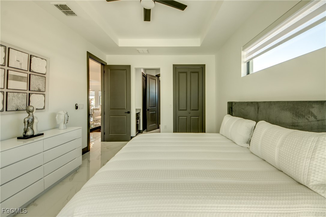 Sleek Contemporary Elegance on a Freshwater Canal! Experience modern Cape Coral living at its finest in this impeccably designed 3-bedroom plus den, 3-bath home. Situated on a peaceful freshwater canal, this residence blends contemporary style with thoughtful upgrades and an open-concept layout that’s both functional and striking. Cape Coral—commonly referred to as “Little Venice”—boasts hundreds of miles of navigable canals, making it a boater’s paradise and a truly unique waterfront community. Step inside to find soaring volume ceilings and a luminous interior flooded with natural light, highlighting the home’s luxurious finishes throughout. The gourmet kitchen is a true showstopper, featuring quartz countertops, a designer industrial backsplash, custom cabinetry, and stainless steel appliances—perfect for both casual dining and entertaining. The spacious owner’s suite is tucked away for privacy and features a spa-like bathroom with a stunning multi-head walk-in shower with bench. Additional design touches include solar-tinted windows and doors, a cozy electric fireplace, modern lighting, and Tempsense color-changing faucets that bring both function and flair. Step outside to your private pavered lanai and enjoy the heated pool with sundeck and fountains, all enclosed by a very expensive privacy fence—creating a tranquil, secluded oasis ideal for relaxing or entertaining year-round. This home is truly upgraded beyond compare, offering exceptional attention to detail that rivals new construction. Don’t miss your chance to own one of the most stylish and well-appointed homes on the market. Schedule your private showing today—this one will wow you!