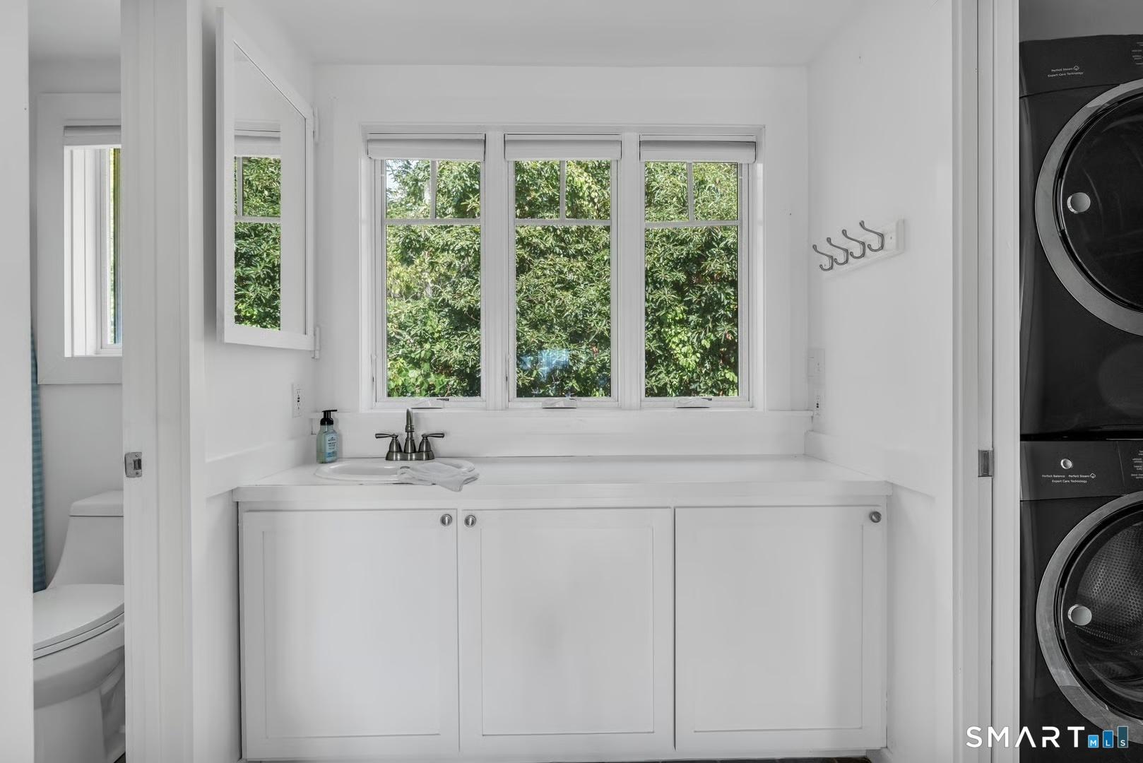COME SEE THIS ONE OF KIND FULLY RENOVATED MADISON HOME WITH PRIVATE BEACH RIGHTS!!! Just 300 feet from the sand, this home was once a traditional raised ranch and now has been brilliantly redesigned into a spacious elevated ranch with an open-concept floor plan that feels airy, bright, and made for entertaining! Step into coastal luxury with this fully reimagined Madison home, where every detail has been carefully curated to blend modern elegance with seaside charm. Some of the primary level highlights include a stunning kitchen anchored by a nearly 10-foot white quartz island, upscale appliances, and an abundance of artificial and natural light from every angle. Flowing seamlessly into the living room and a breathtaking sunroom framed by brand-new oversized Marvin picture windows offering tranquil views reaching toward Long Island Sound. A spacious hallway passing by a renovated guest full bath, a conveniently placed laundry area, and the show-stopping primary suite. Once two large bedrooms, now transformed into a luxurious master oasis. A 9 x 12 walk-in closet designed for true wardrobe enthusiasts and a spa-inspired bathroom with a double vanity, dual rain showers, and two built-in shower benches for the ultimate relaxation. The lower level highlights include an additional three generous bedrooms with ample light and storage, a third meticulously renovated full bathroom with a double vanity, a 2nd brand new washer and dryer set, a voluminous additional living area