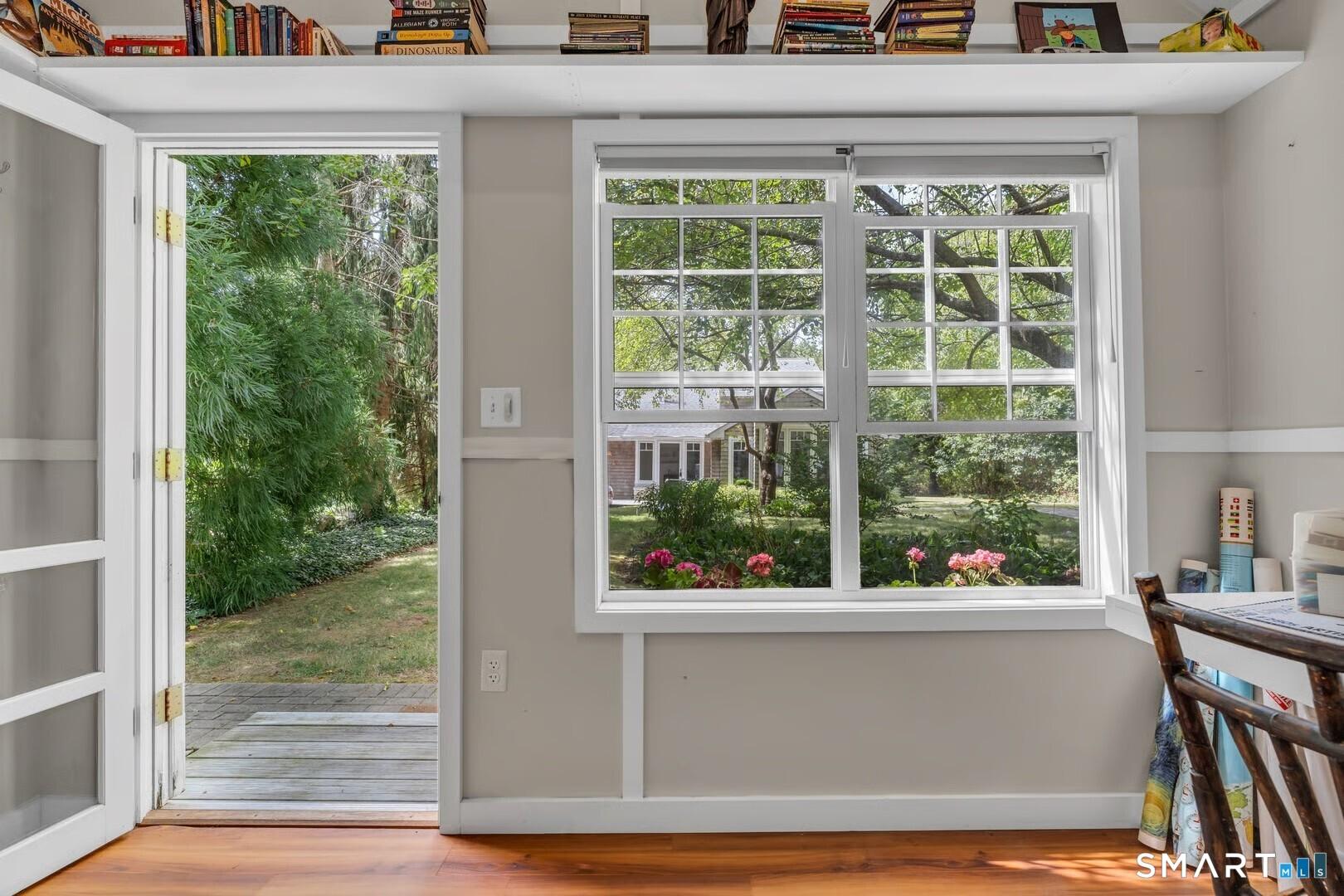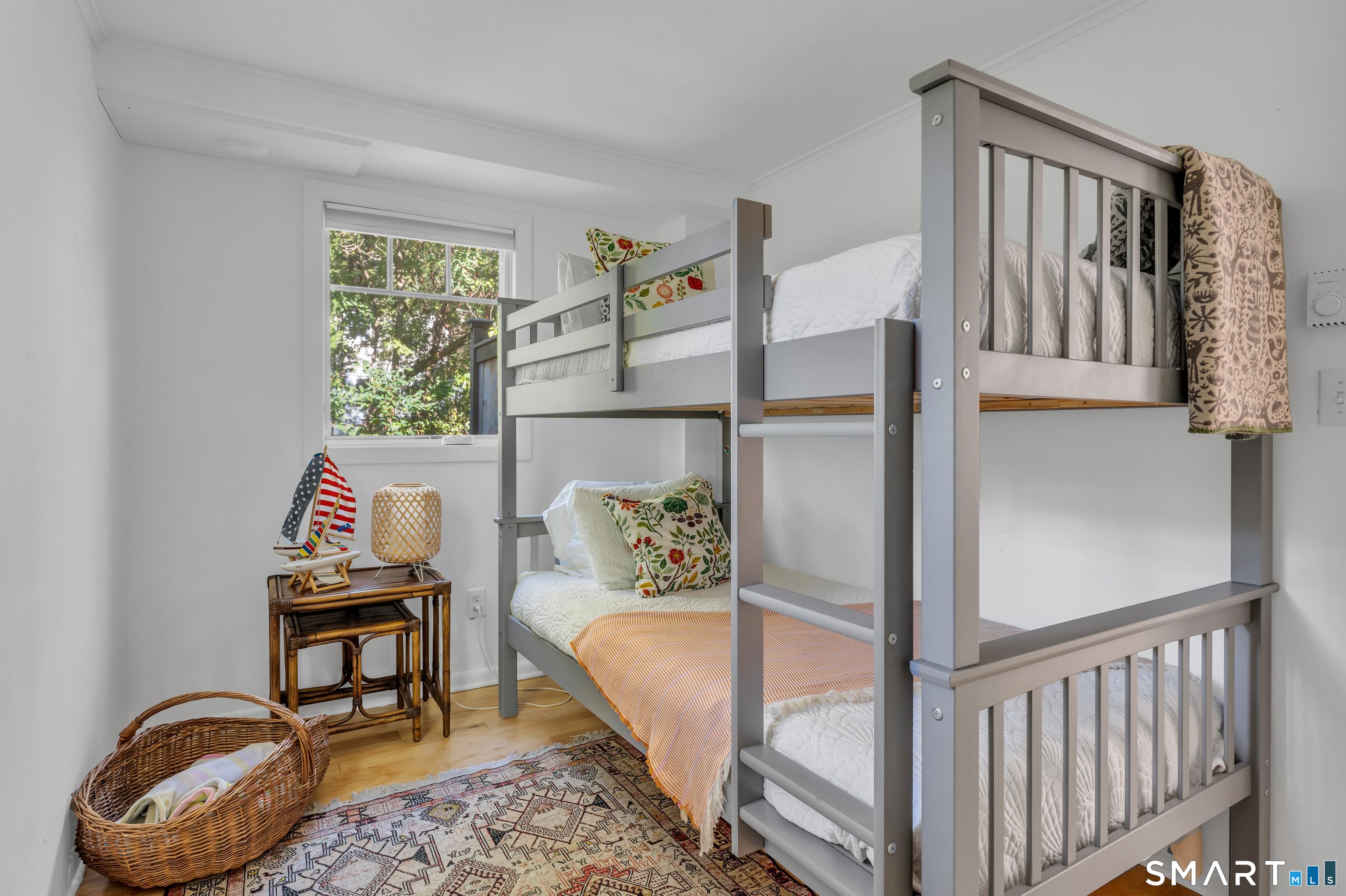 Tucked away at the end of private Cedar Grove Road in the serene enclave of Tuttles Point, this charming cedar shake classic cottage offers the kind of lifestyle most people only dream about. Perched high above the floodplain on a lush 1/3-acre lot, 59 Cedar Grove Road enjoys spectacular, million-dollar views of Long Island Sound, surrounded by mature perennial plantings in a secret garden setting. The homes three bedrooms and two full baths are thoughtfully arranged across approximately 1,500 square feet of warm, welcoming living space - plenty of room to relax, entertain, and truly settle in. Two bedrooms are located on the first floor, as well as a primary bath with a walk-in shower. The loft-like second floor suite, with sweeping views of the Sound, includes a large sitting area, full bath with tub and laundry room. The kitchen and baths were fully renovated in 2023, and new hardwood maple floors were installed throughout. An outdoor shower with cedar enclosure was added in 2024. In addition to all this, a detached garage and heated, renovated studio round out the property - perfect for a writers study, playroom, or home office. Every major mechanical system has been updated, including ductless AC, a tankless water heater, gas fireplace-ready, Generac generator, casement windows, and a newer roof - move right in with complete peace of mind. This turn key house checks all the boxes: private beach rights, low taxes, stunning views all waiting for you!