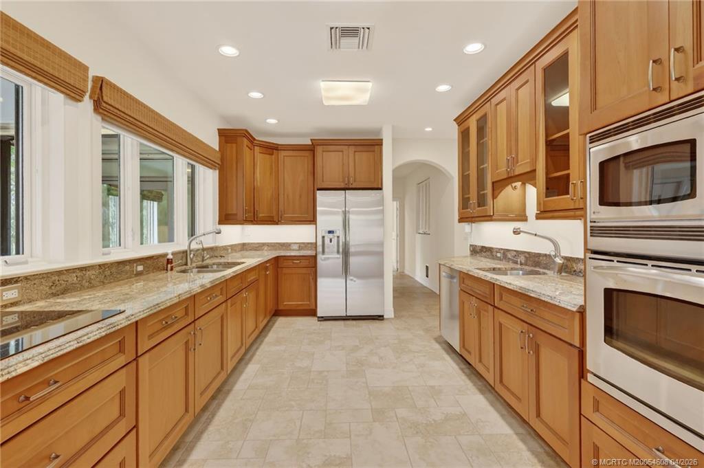 Welcome to a boaters paradise offering effortless coastal luxury just minutes from the inlet & waterfront dining. Tucked away on a private waterfront setting, this secluded residence features 3 bedrooms, 2 bathrooms & a 3-car garage designed for relaxed indoor-outdoor living. The main home offers two bedrooms, one bath, stainless appliances, a wood-burning fireplace and a sunlit Florida room with tranquil water views. A connected guest retreat includes one bedroom, one bath, and a kitchenetteideal for hosting family or guests in comfort and privacy. Outdoor living shines with a newer deck, oversized 8-ft-deep saltwater pool, and 74 feet of private dockage with power, water, and seven pilingsperfect for serious boaters and sunset cruises. Notable upgrades include a 2022 metal roof, whole-house generator with 500-gallon gas tank, and accordion hurricane shutters. A very rare waterfront retreat blending privacy, functionality & elevated coastal living just moments from open water.