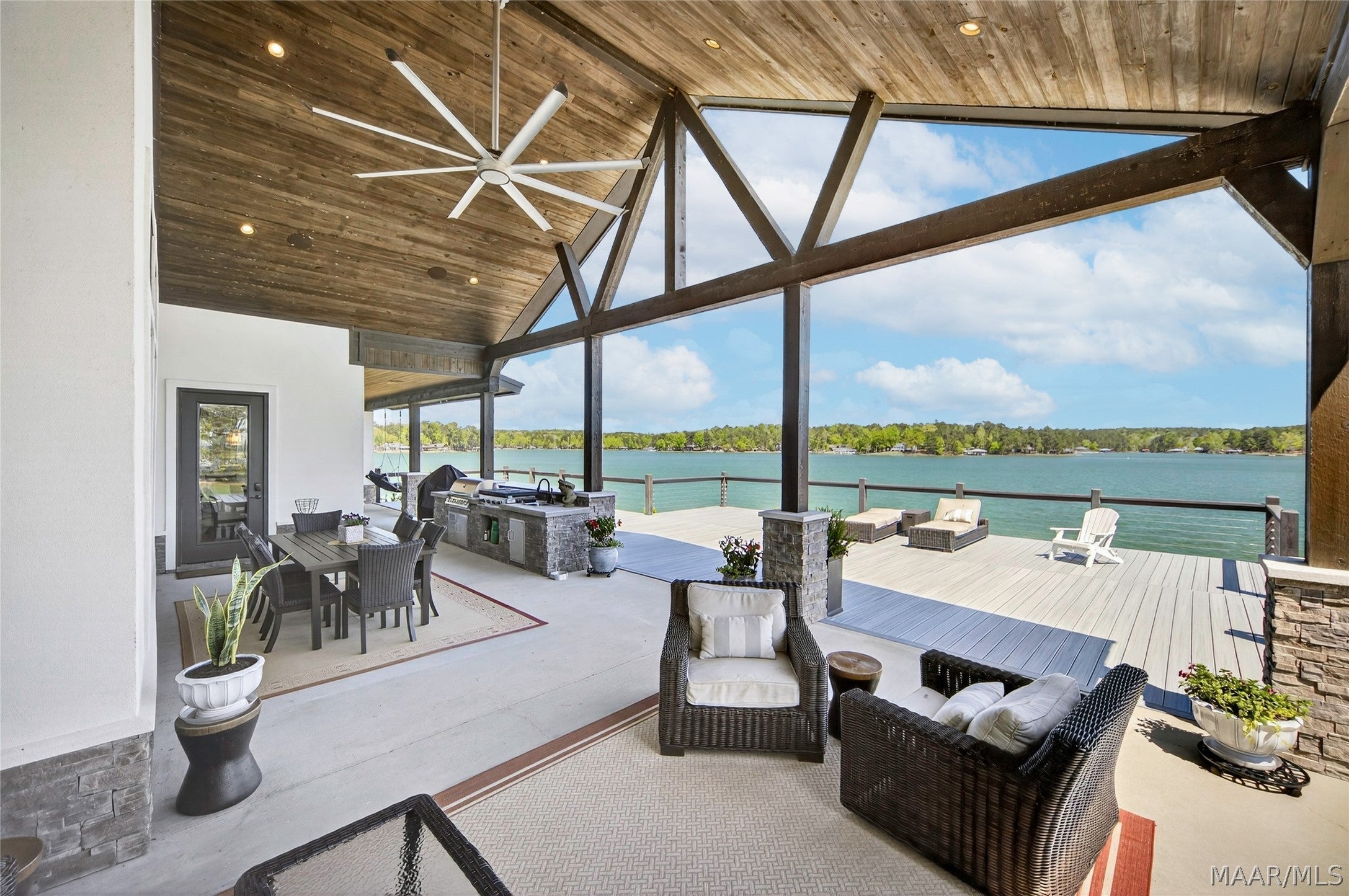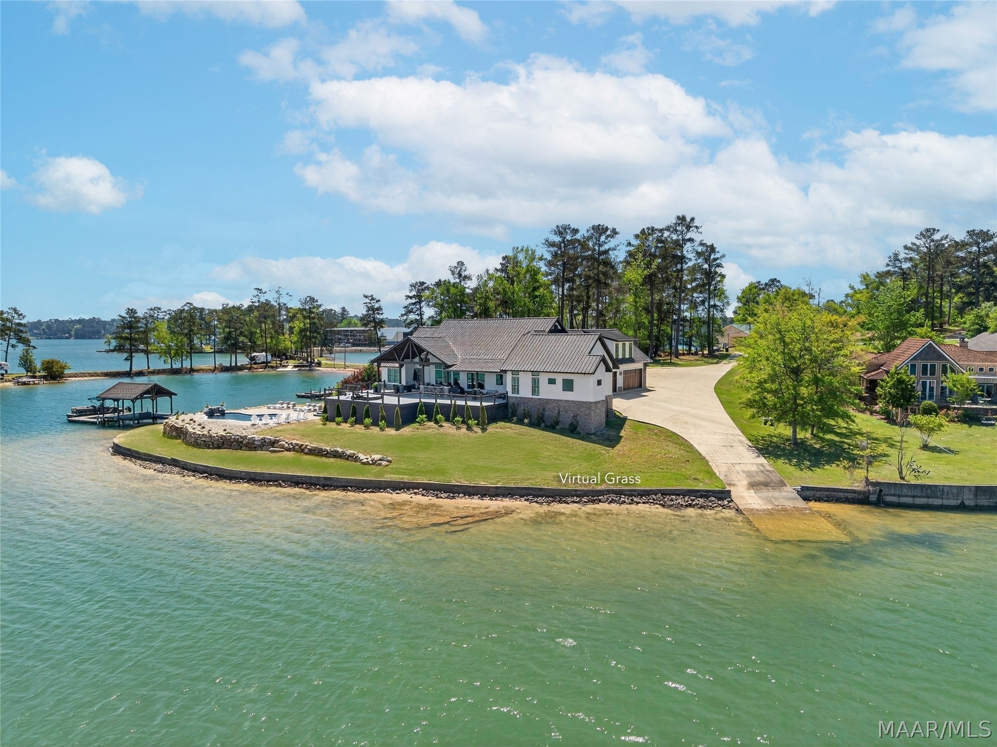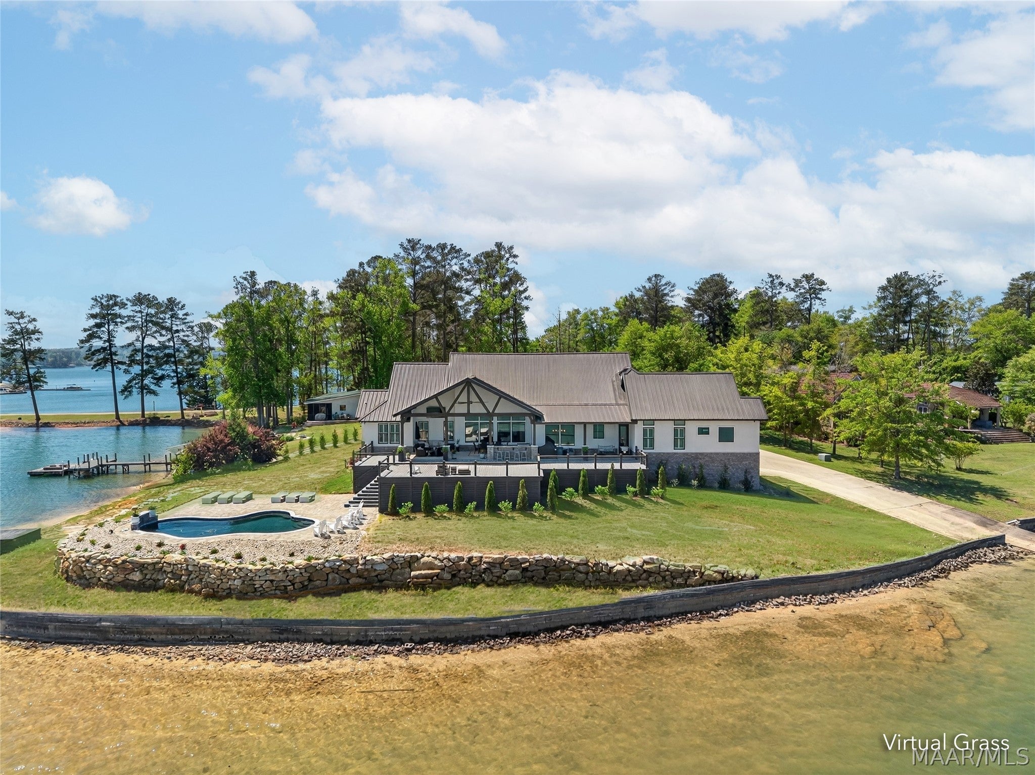 Welcome to luxury lake living at its finest! This exquisite 6 bedroom, 4.5 bathroom waterfront estate on beautiful Lake Martin offers approximately 4,800 square feet of thoughtfully designed living space, perfectly positioned on 1.34 acres with an impressive 357 feet of pristine shoreline and breathtaking, panoramic views. Designed for both comfort and entertaining, the open-concept floor plan features a chefs dream kitchen complete with premium appliances, custom cabinetry, expansive counter space, and a butlers pantry. The main level showcases a luxurious primary suite with spa-like bath and heated floors, along with three additional guest bedrooms, 2.5 bathsincluding a convenient deck-access half batha private office, storm room, and recreation space. Upstairs, youll find two more bedrooms, a spacious living area, full bath, and laundry, making it ideal for guests or multi-generational living. Step outside to experience true resort-style living with an expansive TREX deck, surround sound extending to both the deck and private boat dock, your own boat ramp, and a stunning saltwater pool surrounded by professionally designed landscaping. Additional features include a 4-car garage, spray foam insulation, and low-maintenance construction, creating the perfect blend of elegance, functionality, and effortless waterfront living on Lake Martin.