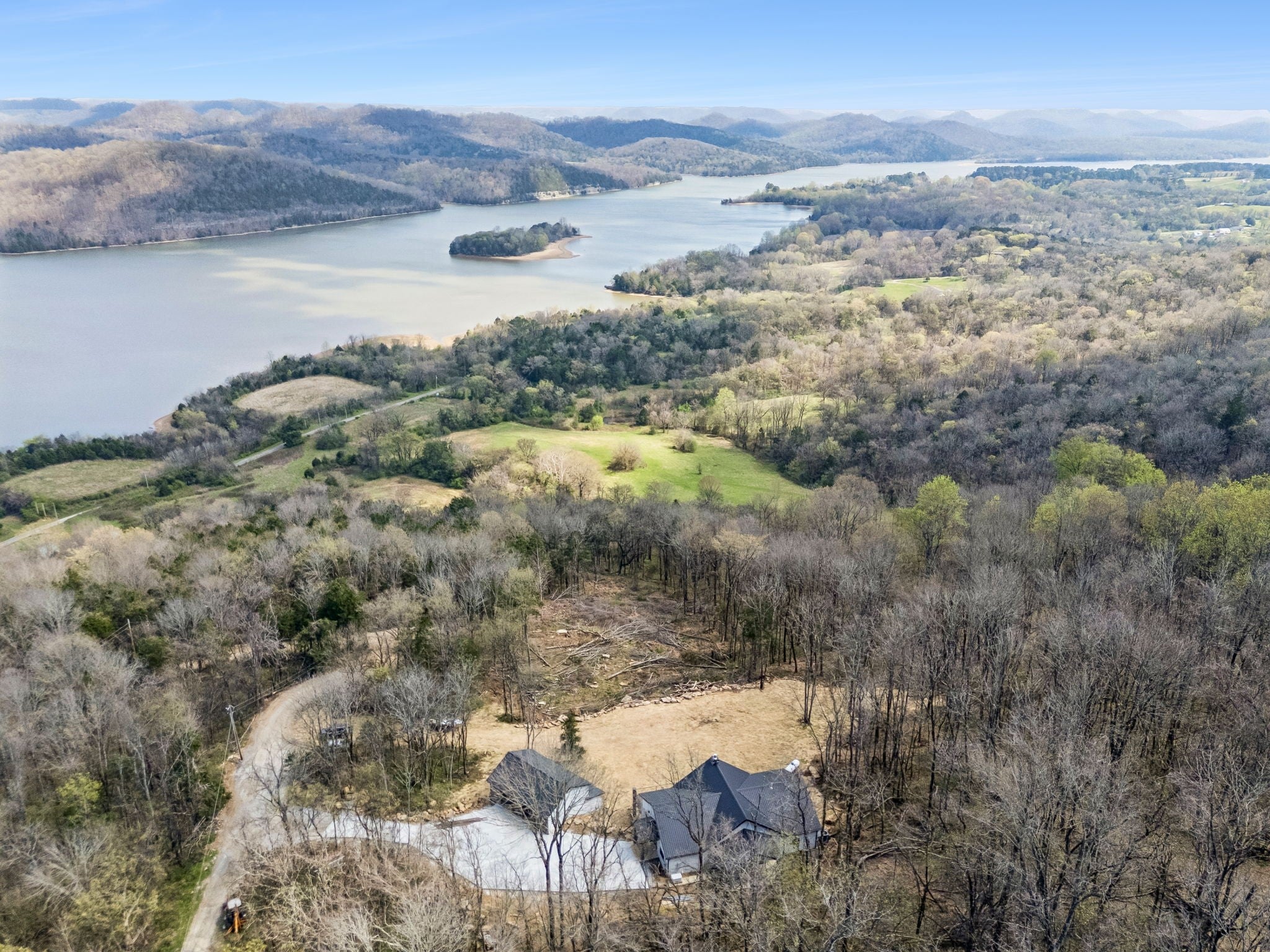 PINNACLE POINT AT SULLIVANS ISLAND ( Back Up Offers Welcomed ) is a rare Tennessee riverfront retreat where craftsmanship, privacy, and panoramic scenery converge. Set high above the Cumberland River on 10 /- private acres, this custom estate captures unobstructed, year-round views of Sullivans Island while delivering a level of construction typically reserved for luxury coastal properties.