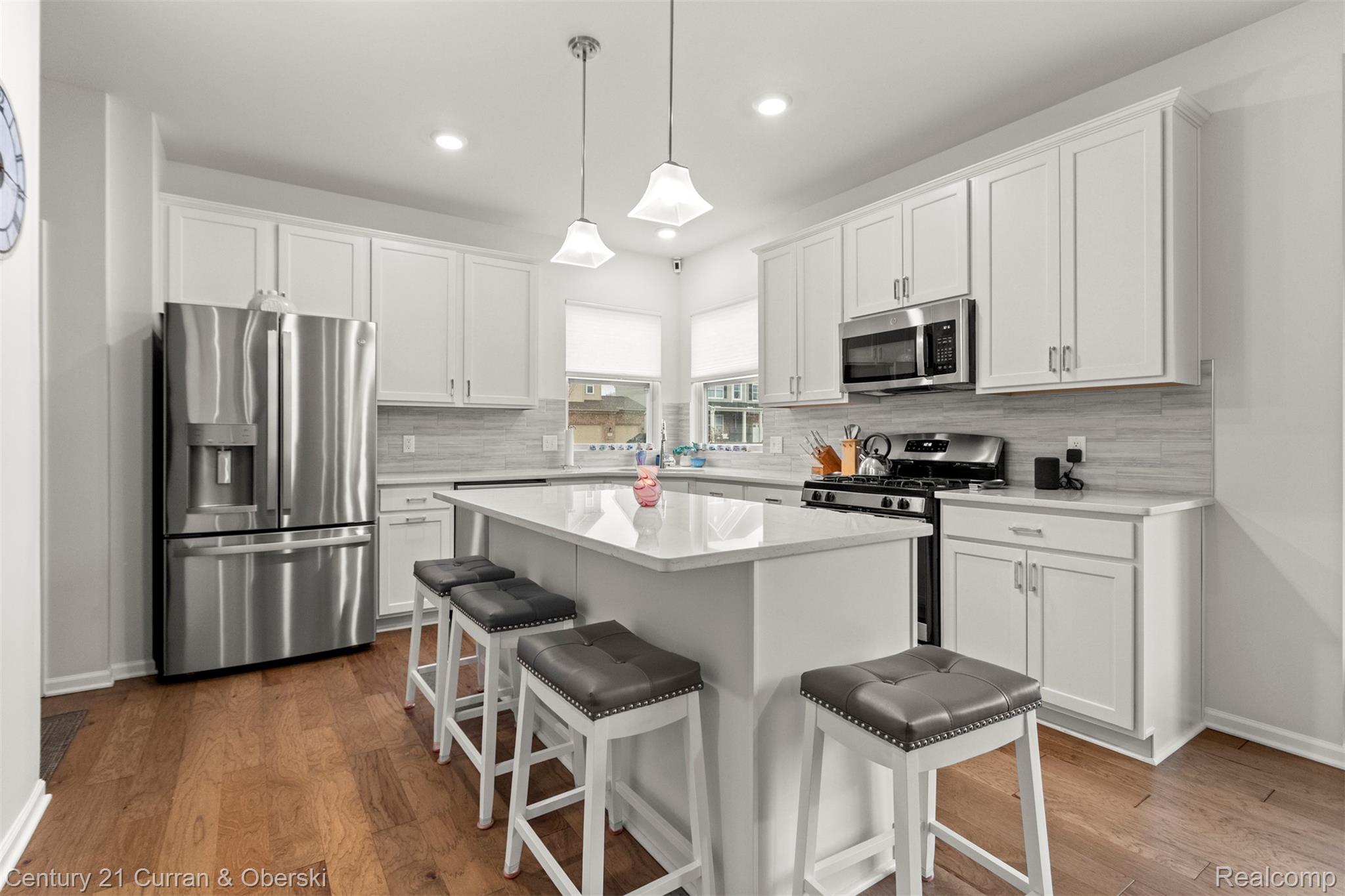 7602 Sheldon Hamburg Twp, 48189 650,000 Elegant Split Floorplan Ranch tucked back on over 2 acres overlooking serene nature preserves. Minutes to Ann Arbor and Brighton. Cathedral ceilings in the Great Room with a wall of windows overlooking the backyard are accompanied with a gas fireplace.